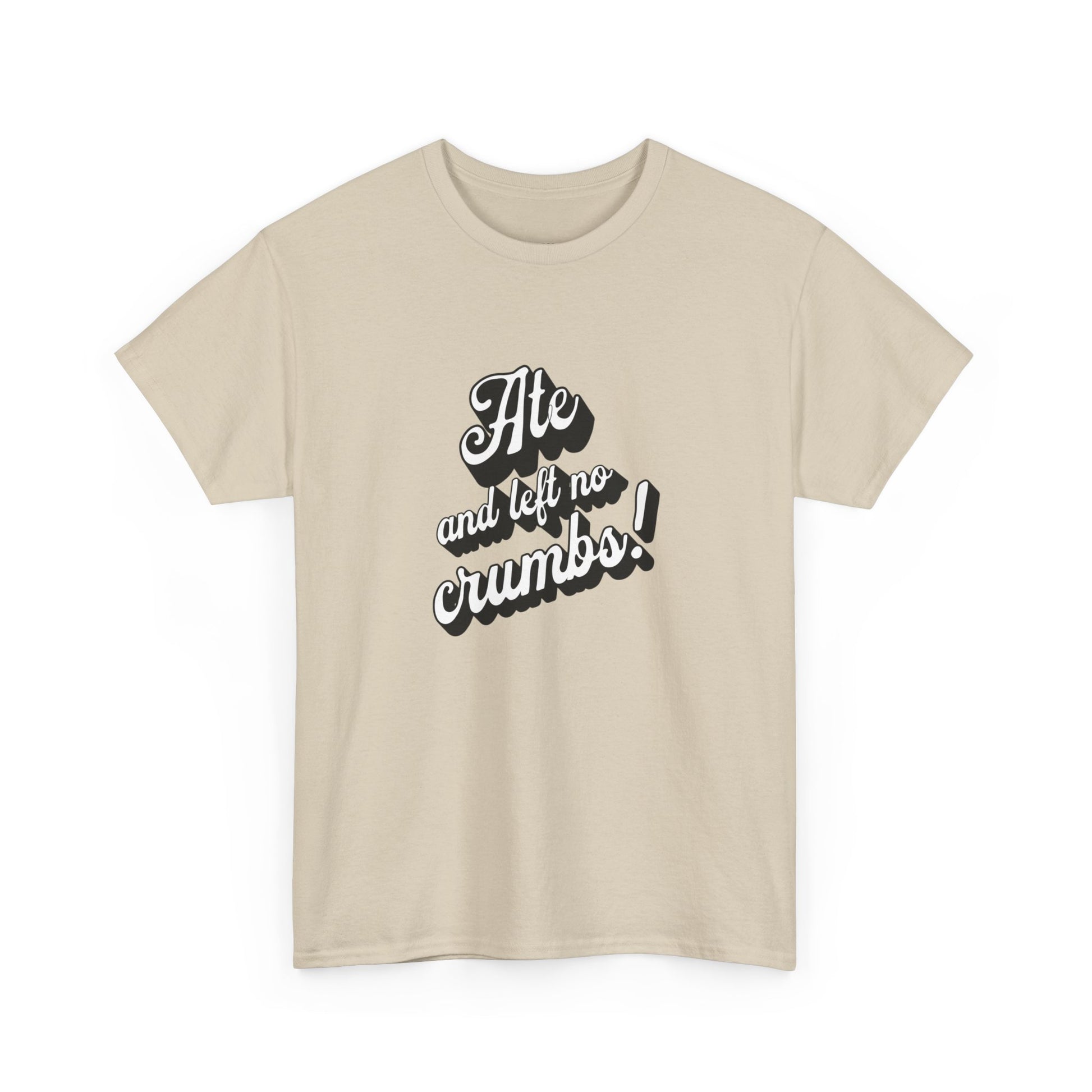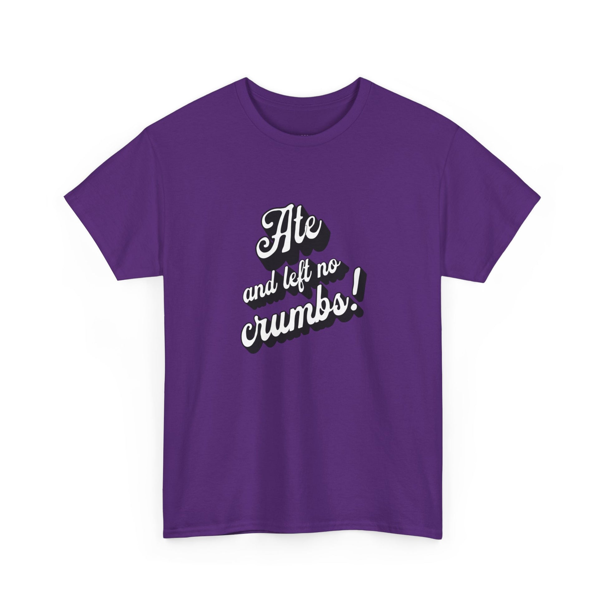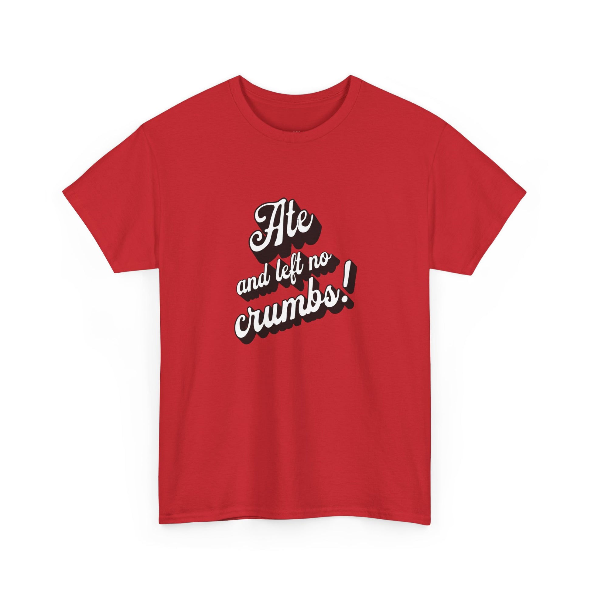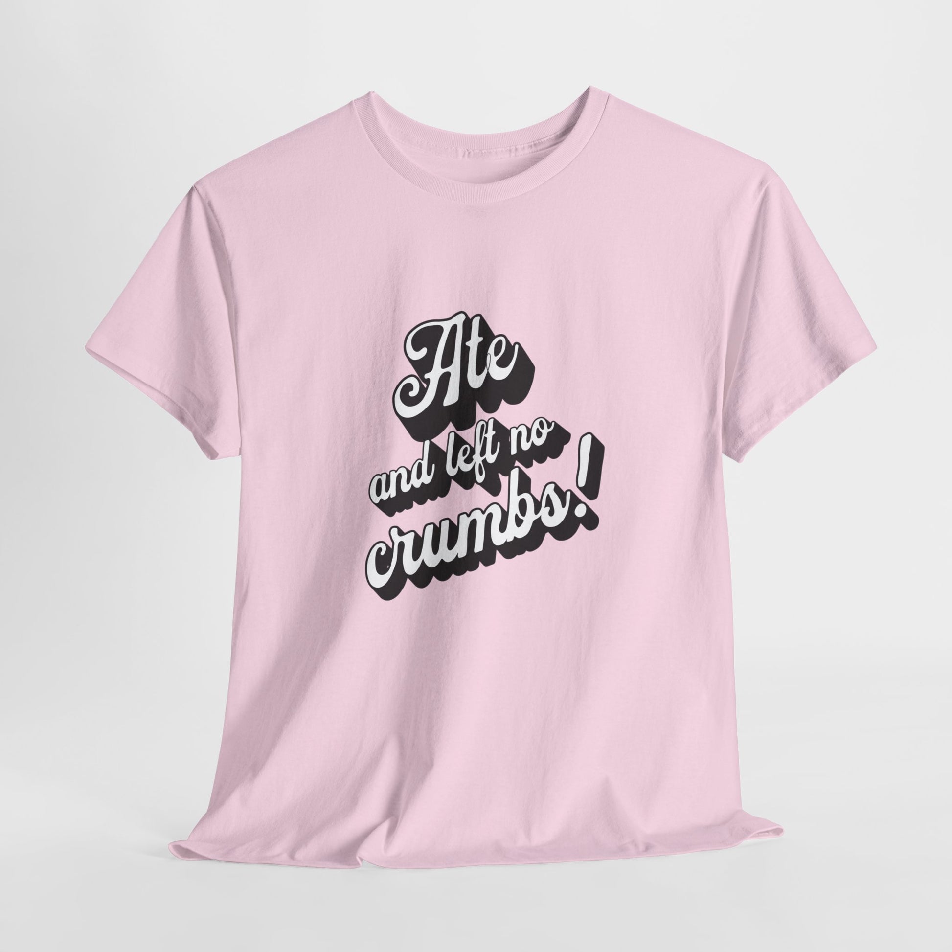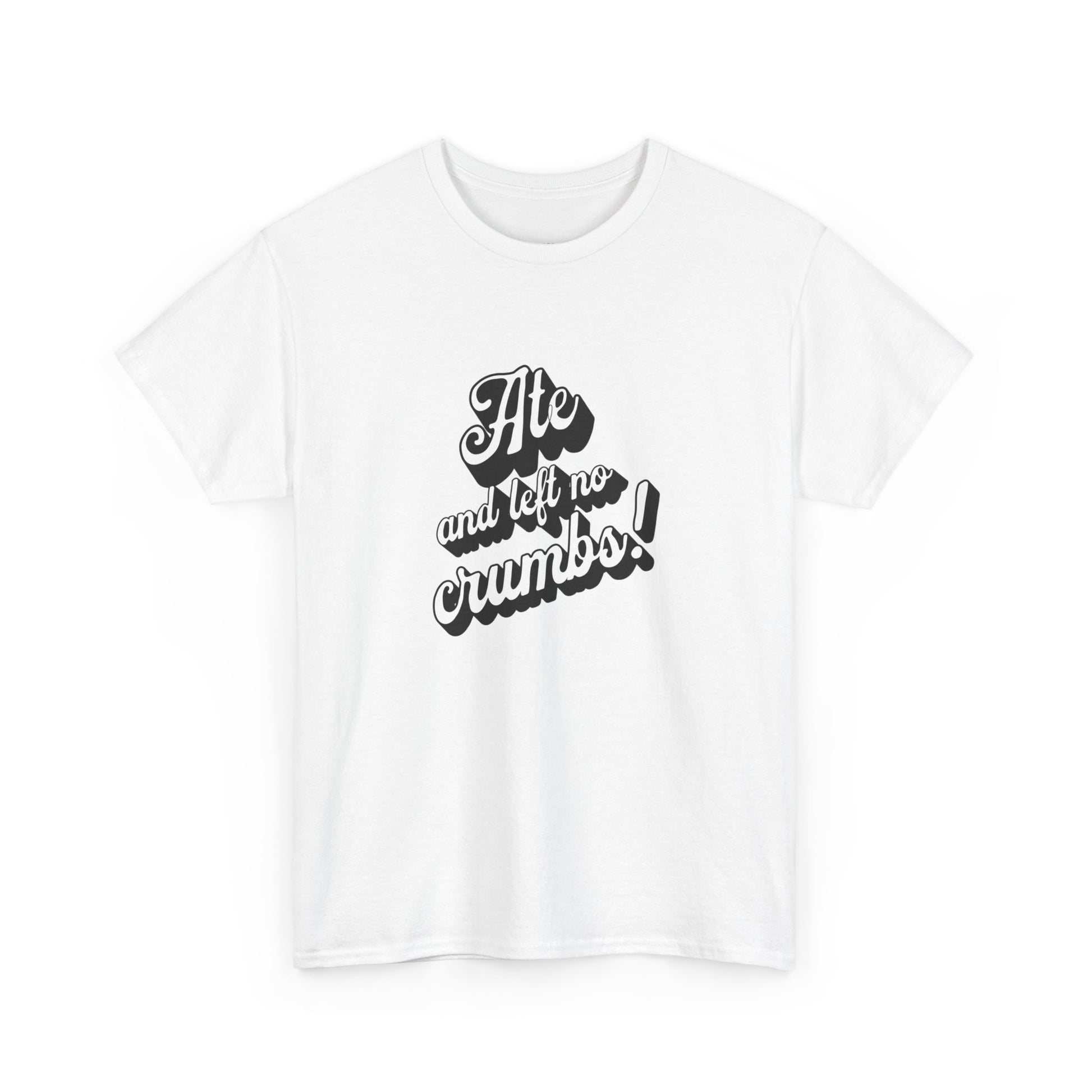 This 'Ate And Left No Crumbs' tee exudes a playful and carefree vibe, perfect for those who love quirky humor. It's ideal for casual wear and can be styled for everyday occasions. This tee is relevant for food lovers, humor enthusiasts, and those looking for a fun conversation starter. Perfect for gifts during birthdays, holidays, or just to add a touch of humor to someone's wardrobe.