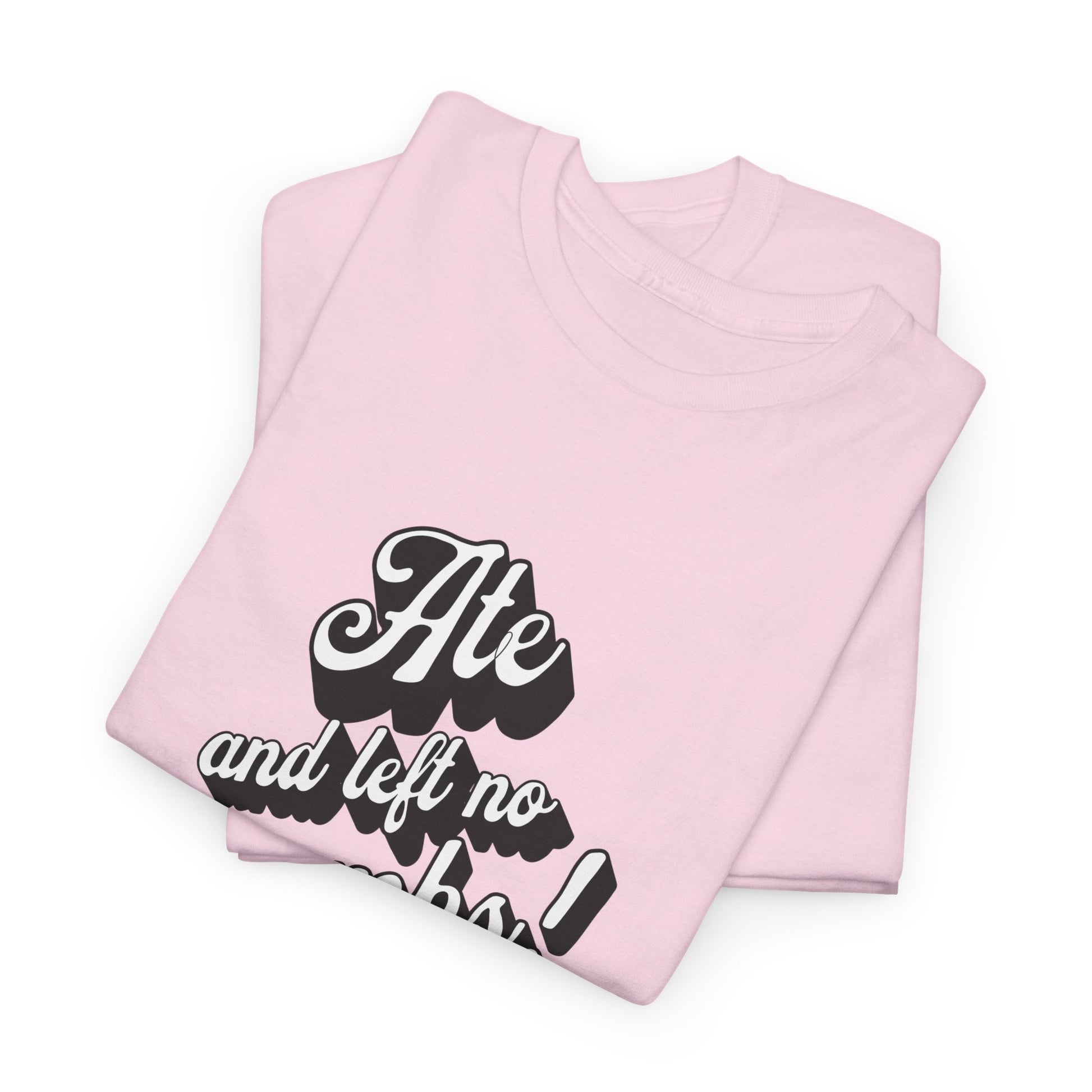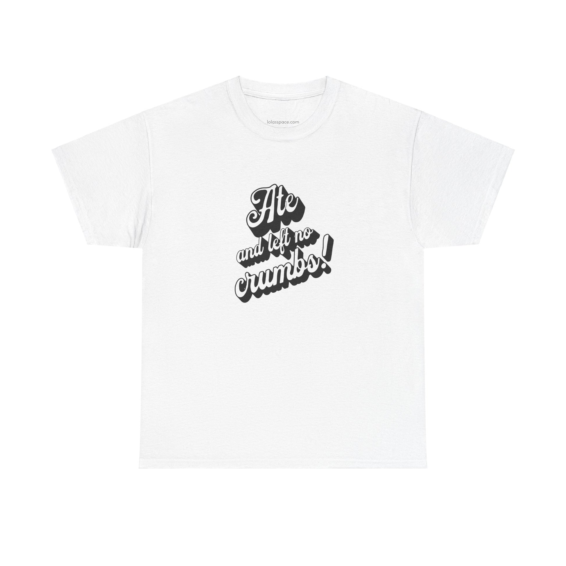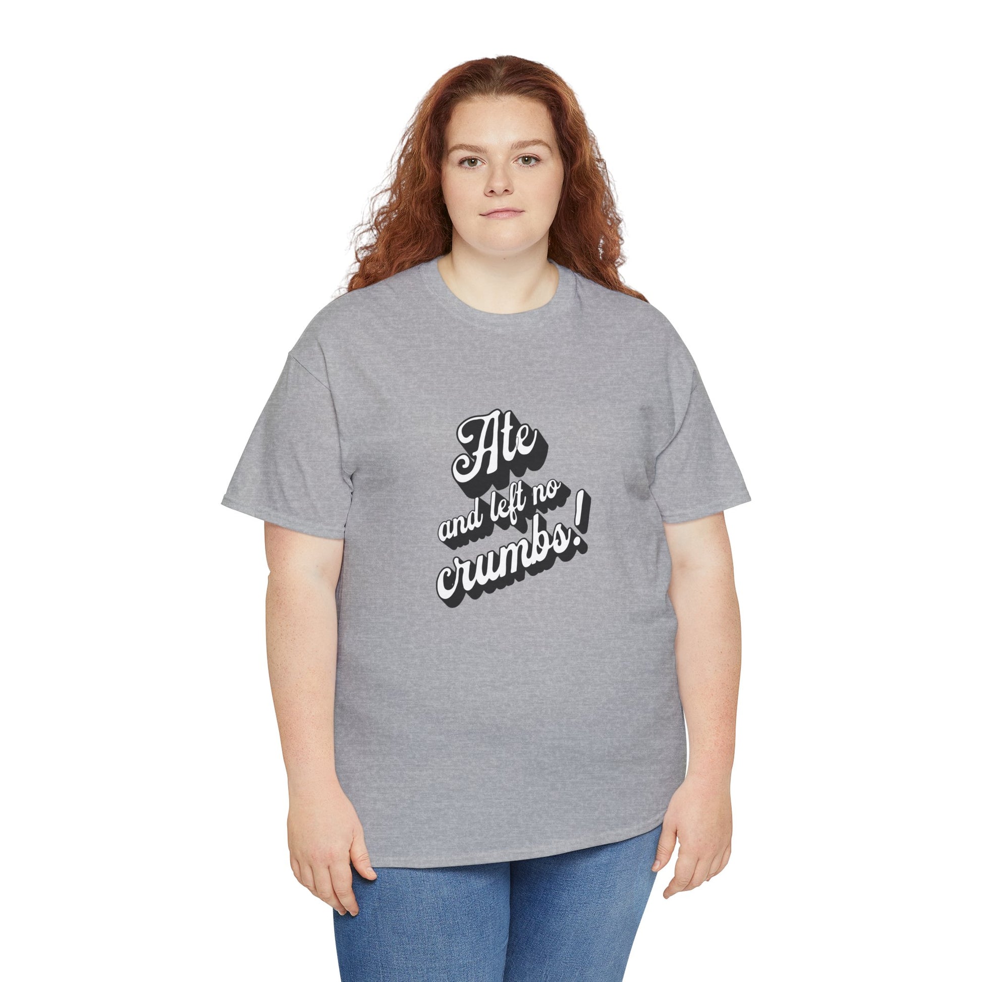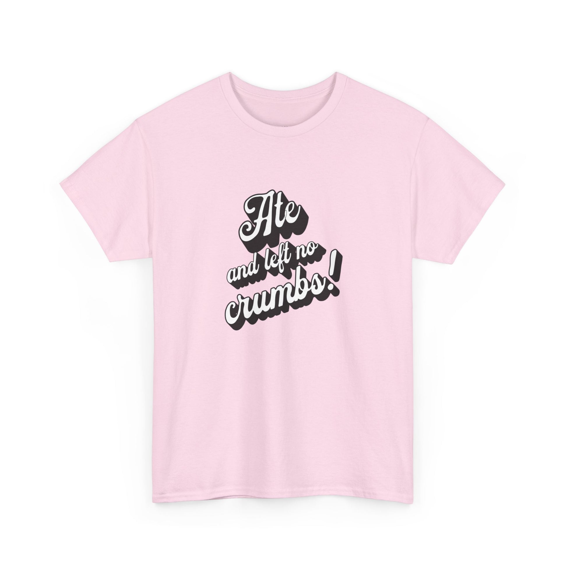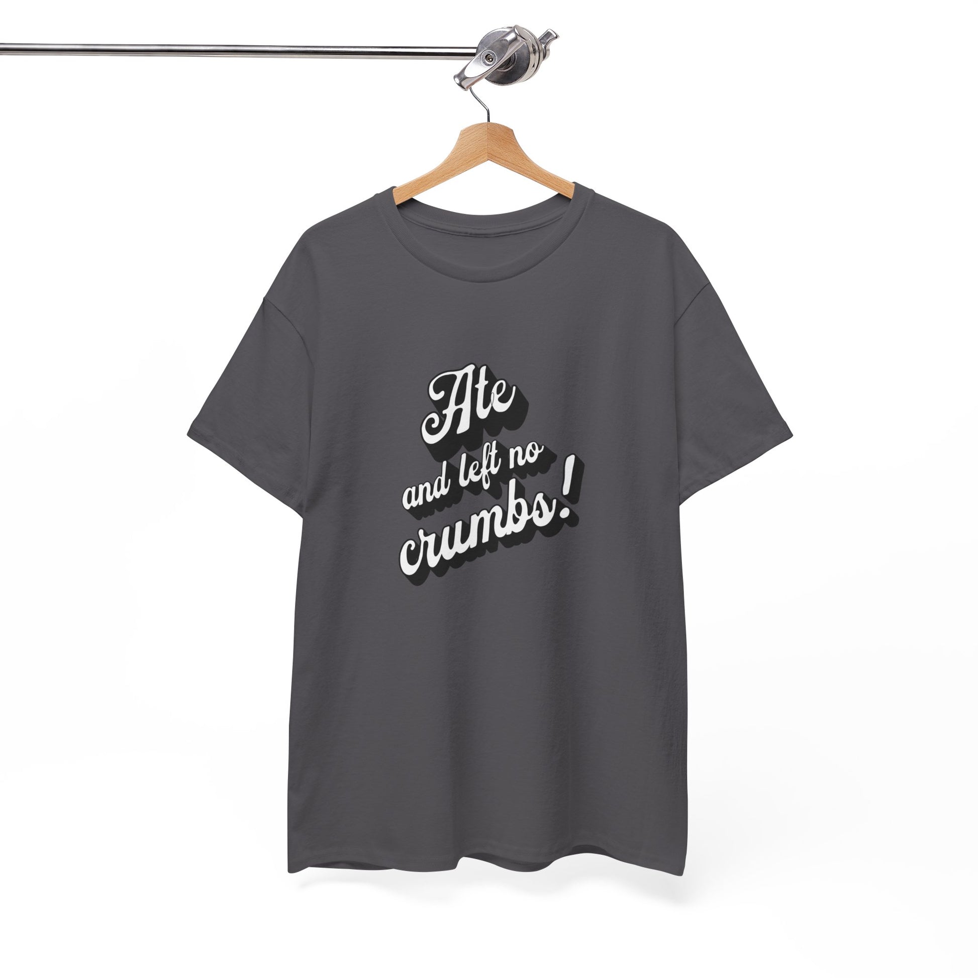 This 'Ate And Left No Crumbs' tee exudes a playful and carefree vibe, perfect for those who love quirky humor. It's ideal for casual wear and can be styled for everyday occasions. This tee is relevant for food lovers, humor enthusiasts, and those looking for a fun conversation starter. Perfect for gifts during birthdays, holidays, or just to add a touch of humor to someone's wardrobe.