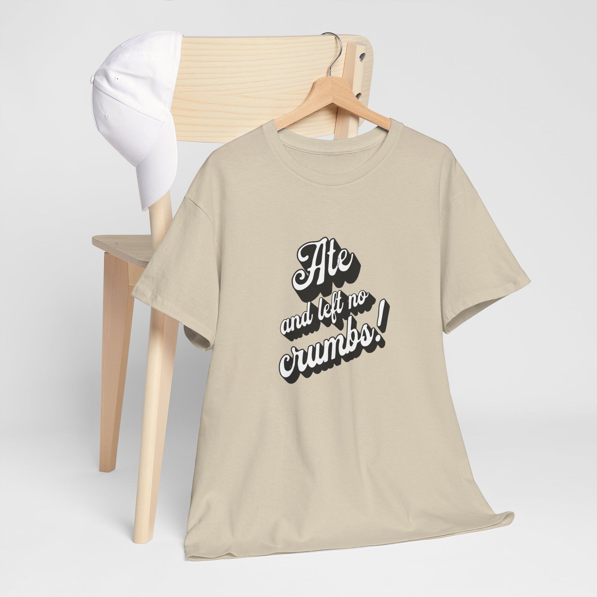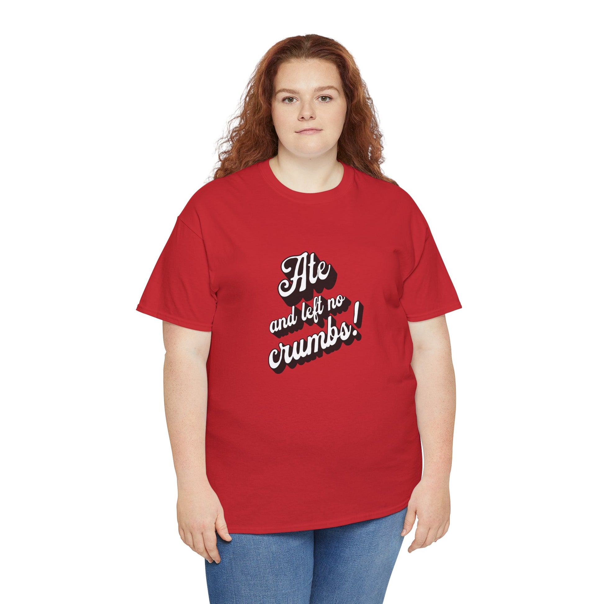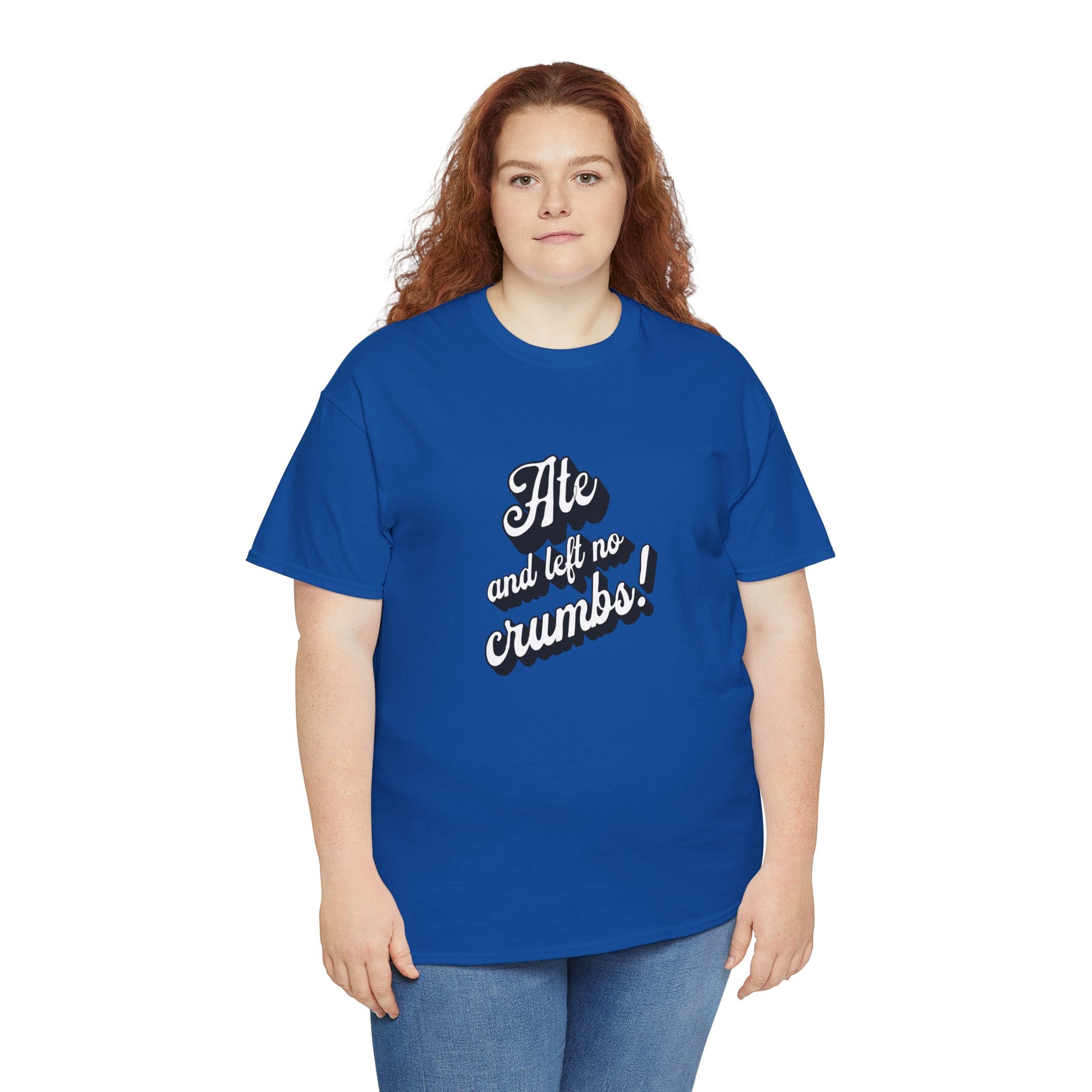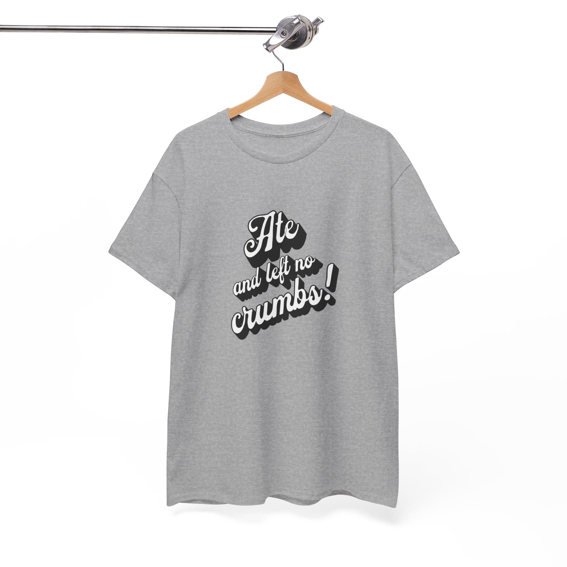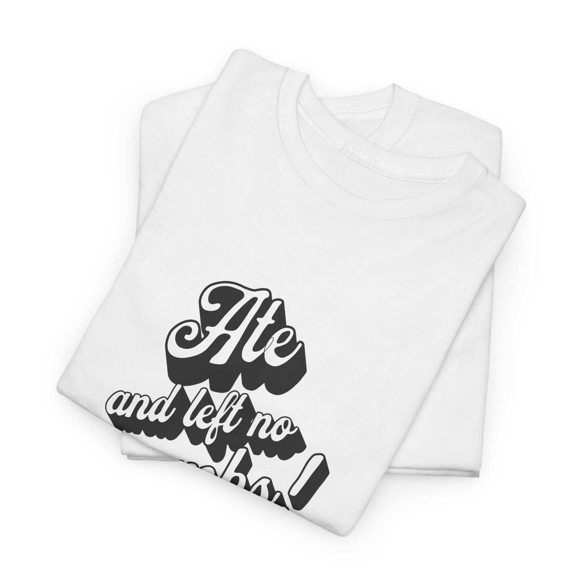This 'Ate And Left No Crumbs' tee exudes a playful and carefree vibe, perfect for those who love quirky humor. It's ideal for casual wear and can be styled for everyday occasions. This tee is relevant for food lovers, humor enthusiasts, and those looking for a fun conversation starter. Perfect for gifts during birthdays, holidays, or just to add a touch of humor to someone's wardrobe.