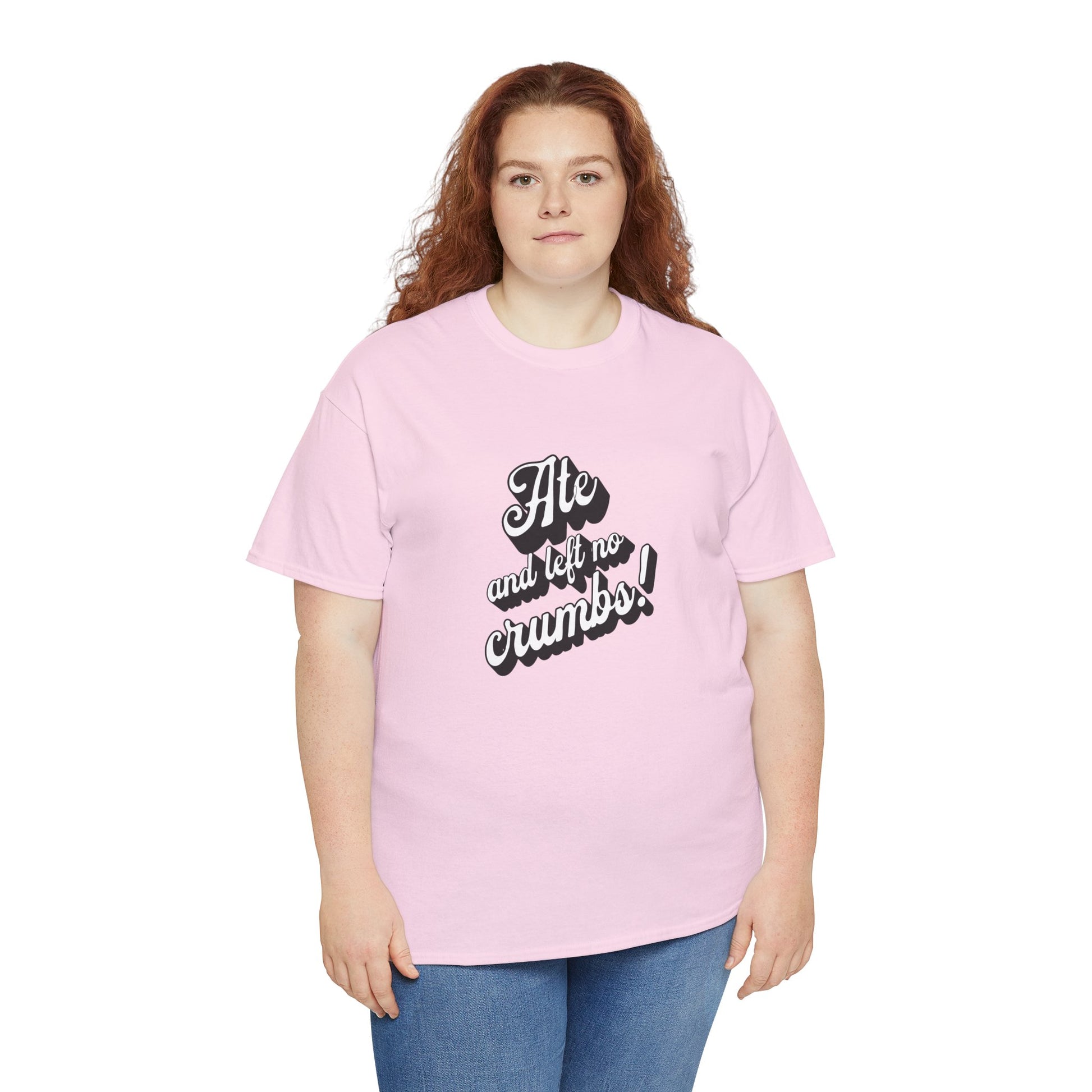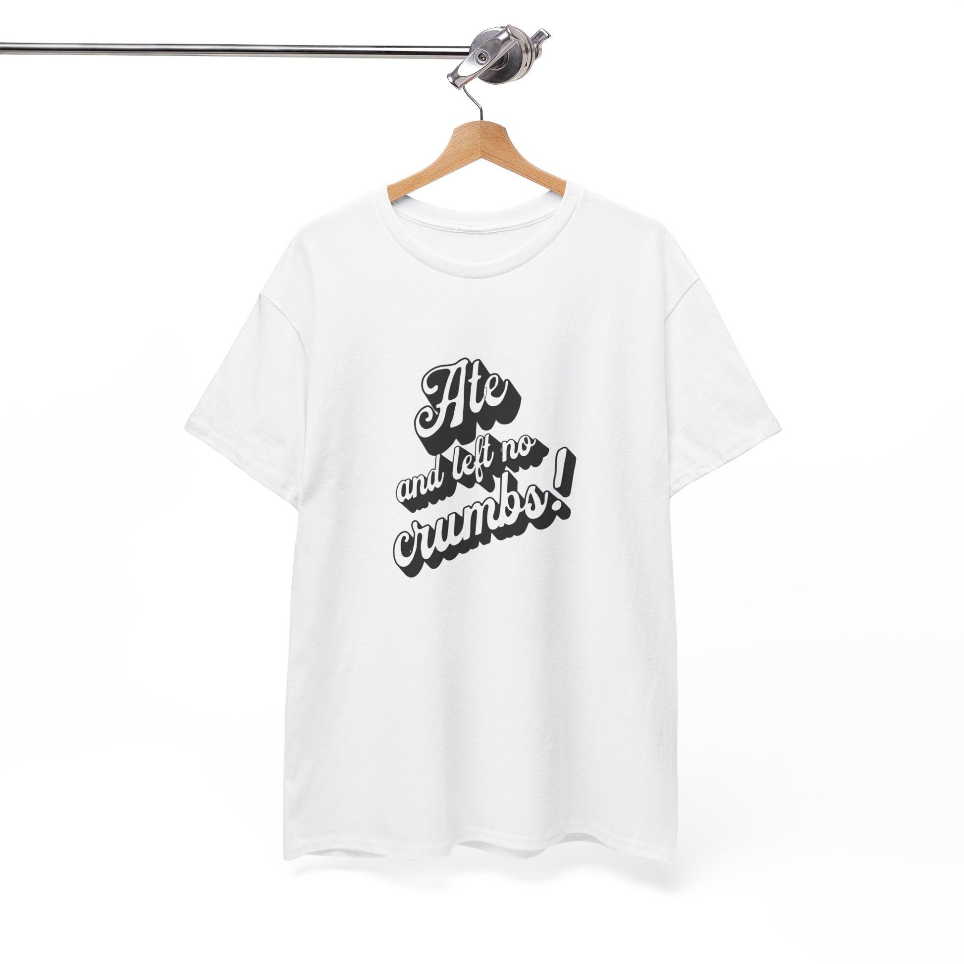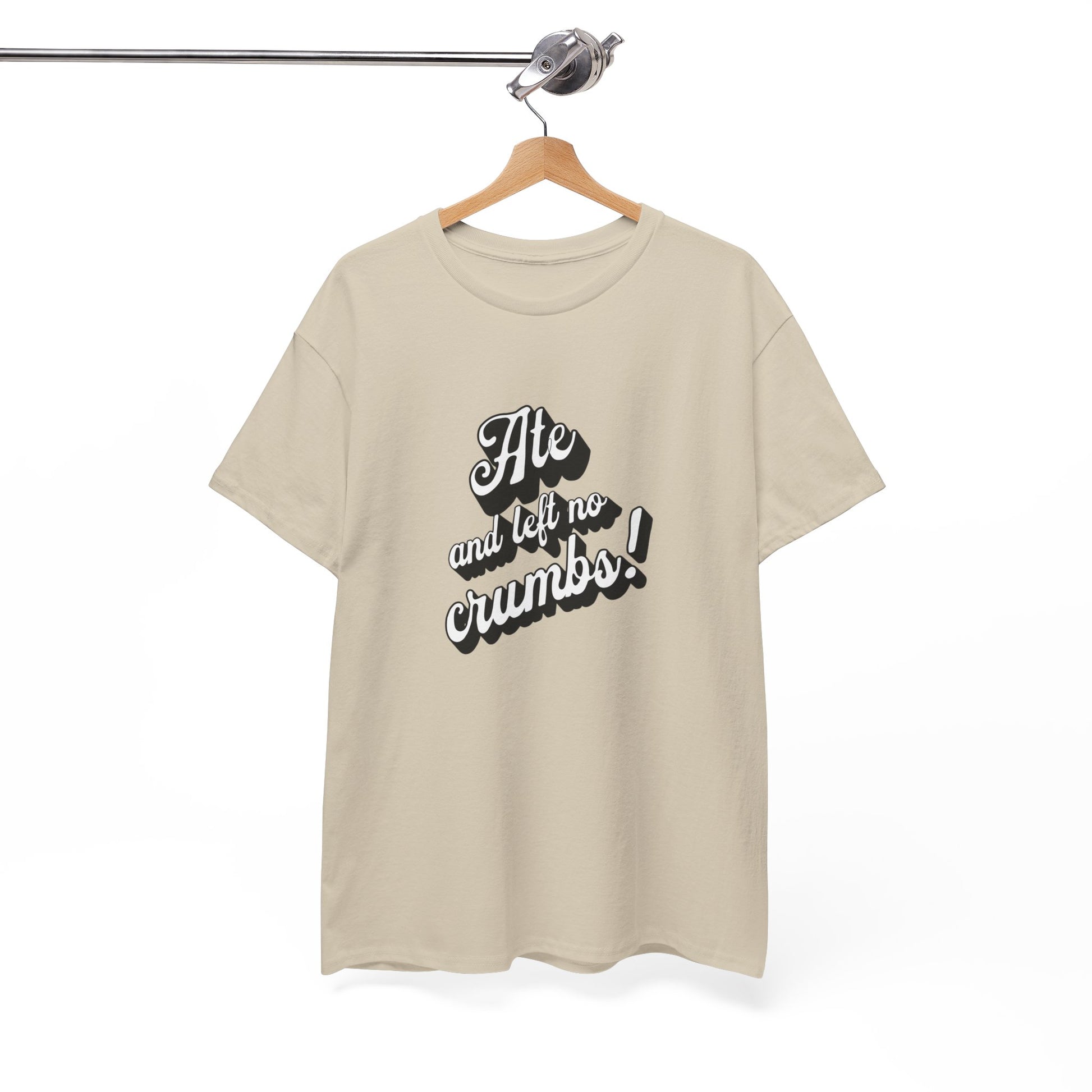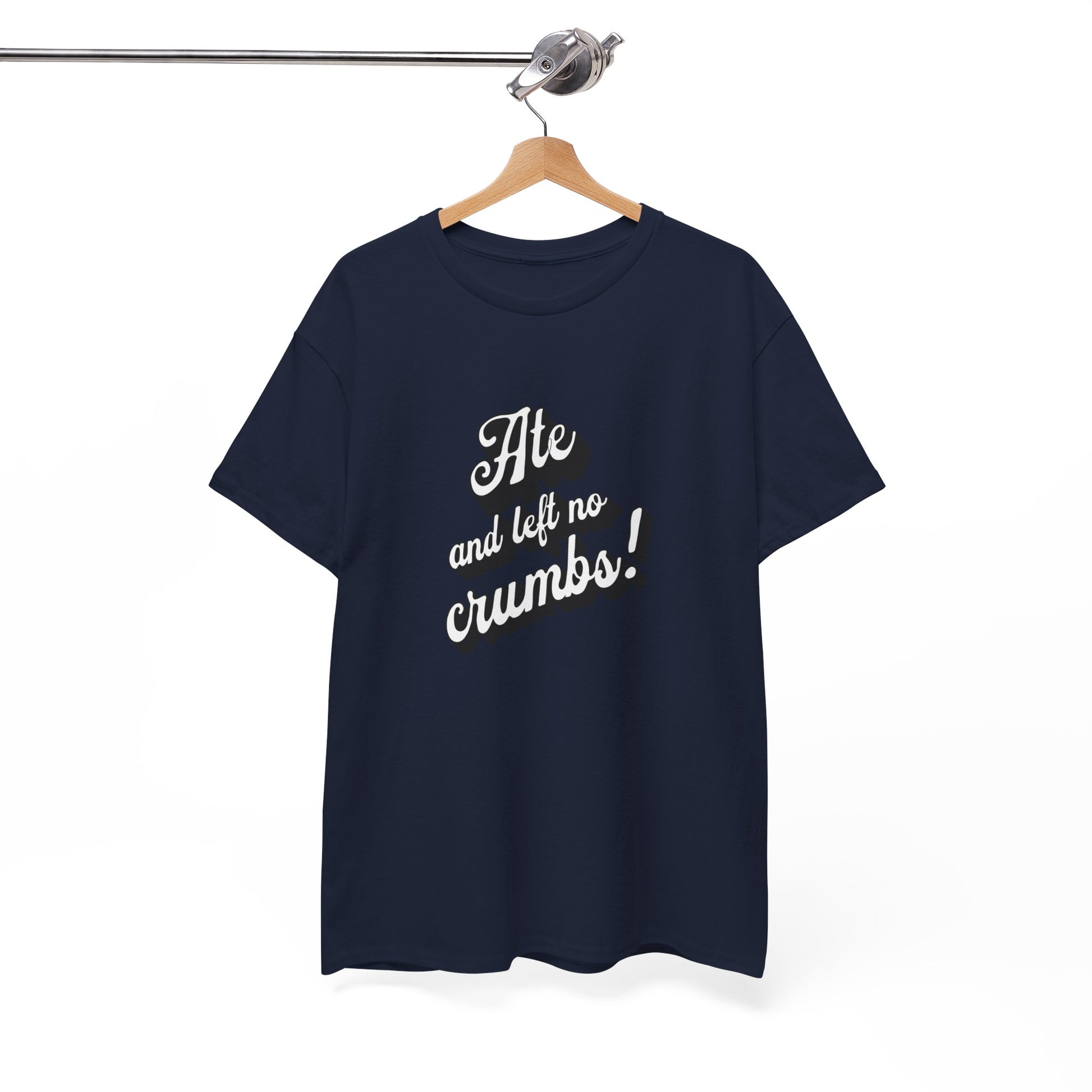 This 'Ate And Left No Crumbs' tee exudes a playful and carefree vibe, perfect for those who love quirky humor. It's ideal for casual wear and can be styled for everyday occasions. This tee is relevant for food lovers, humor enthusiasts, and those looking for a fun conversation starter. Perfect for gifts during birthdays, holidays, or just to add a touch of humor to someone's wardrobe.