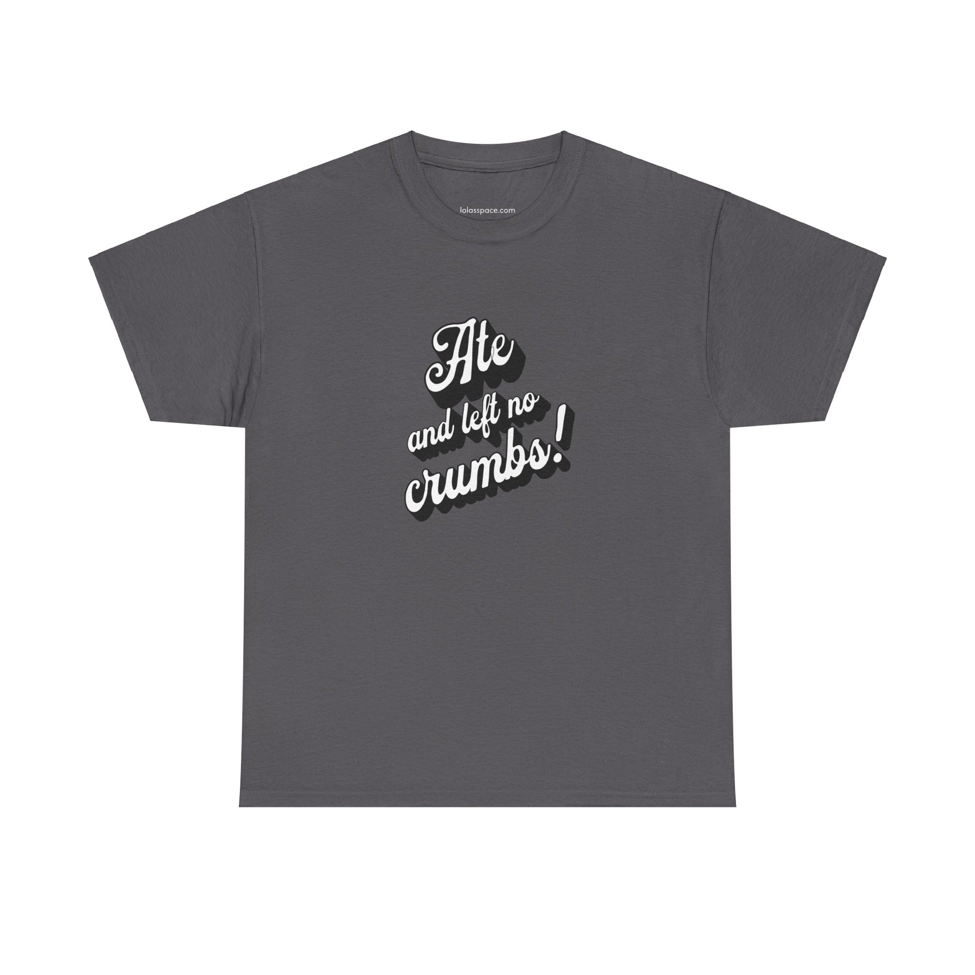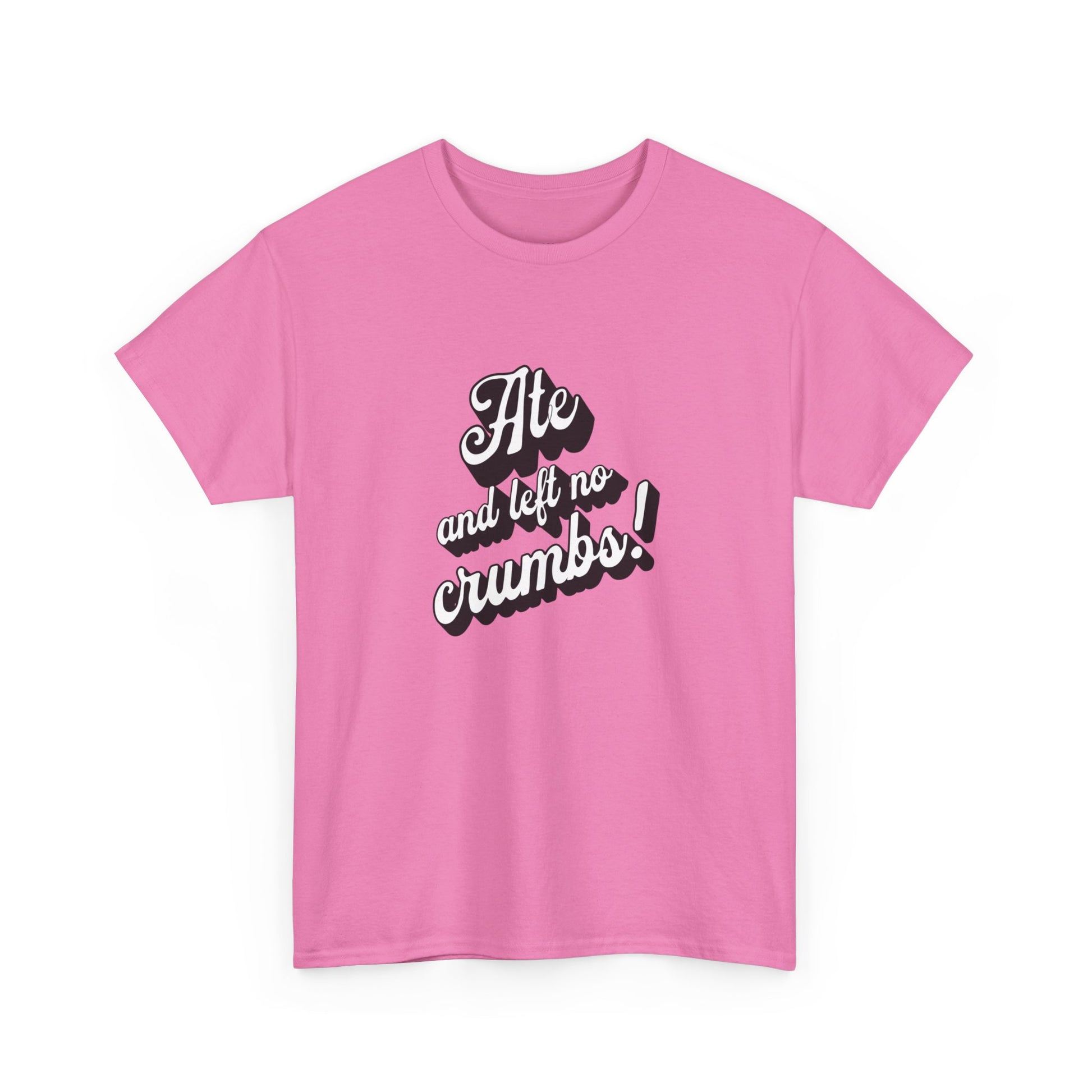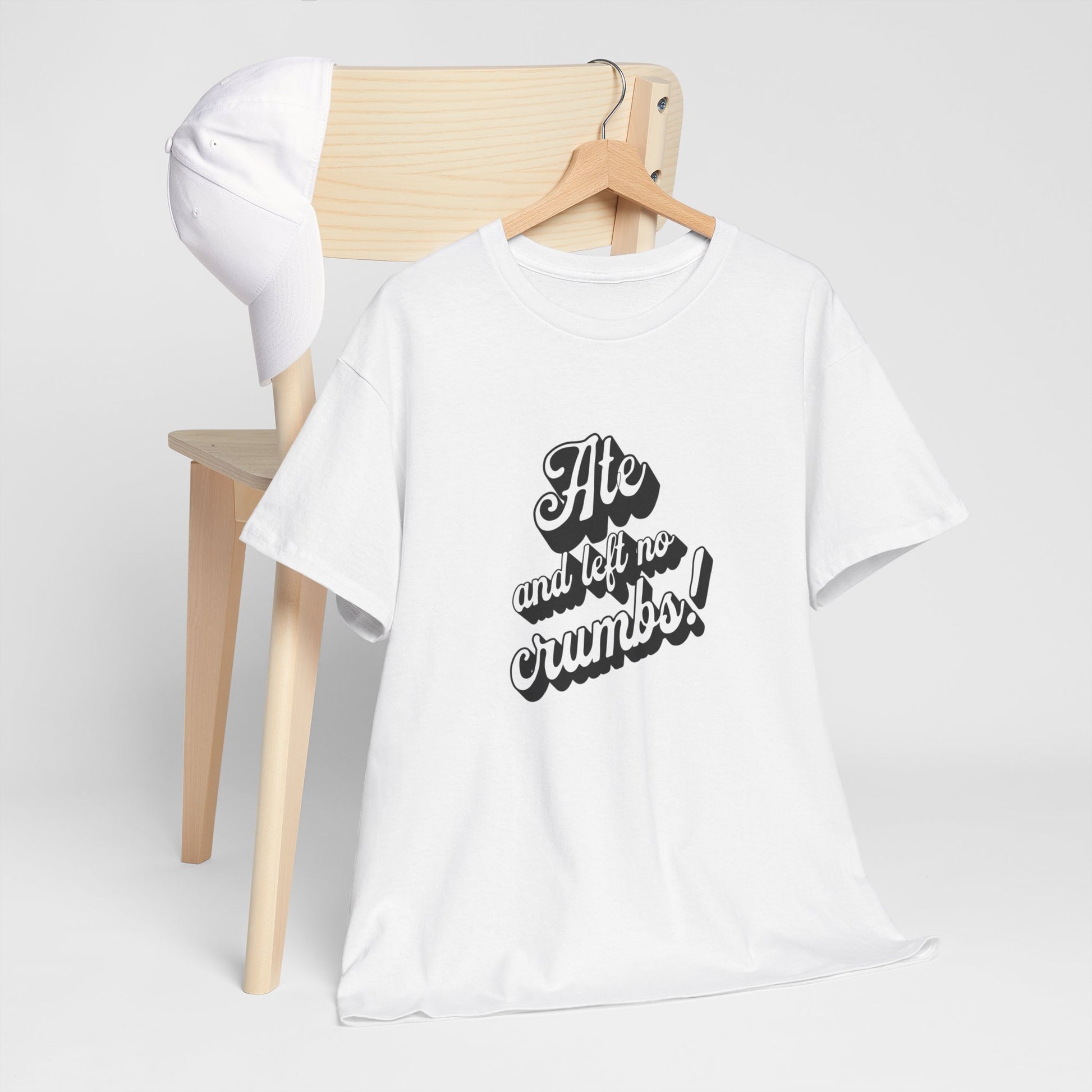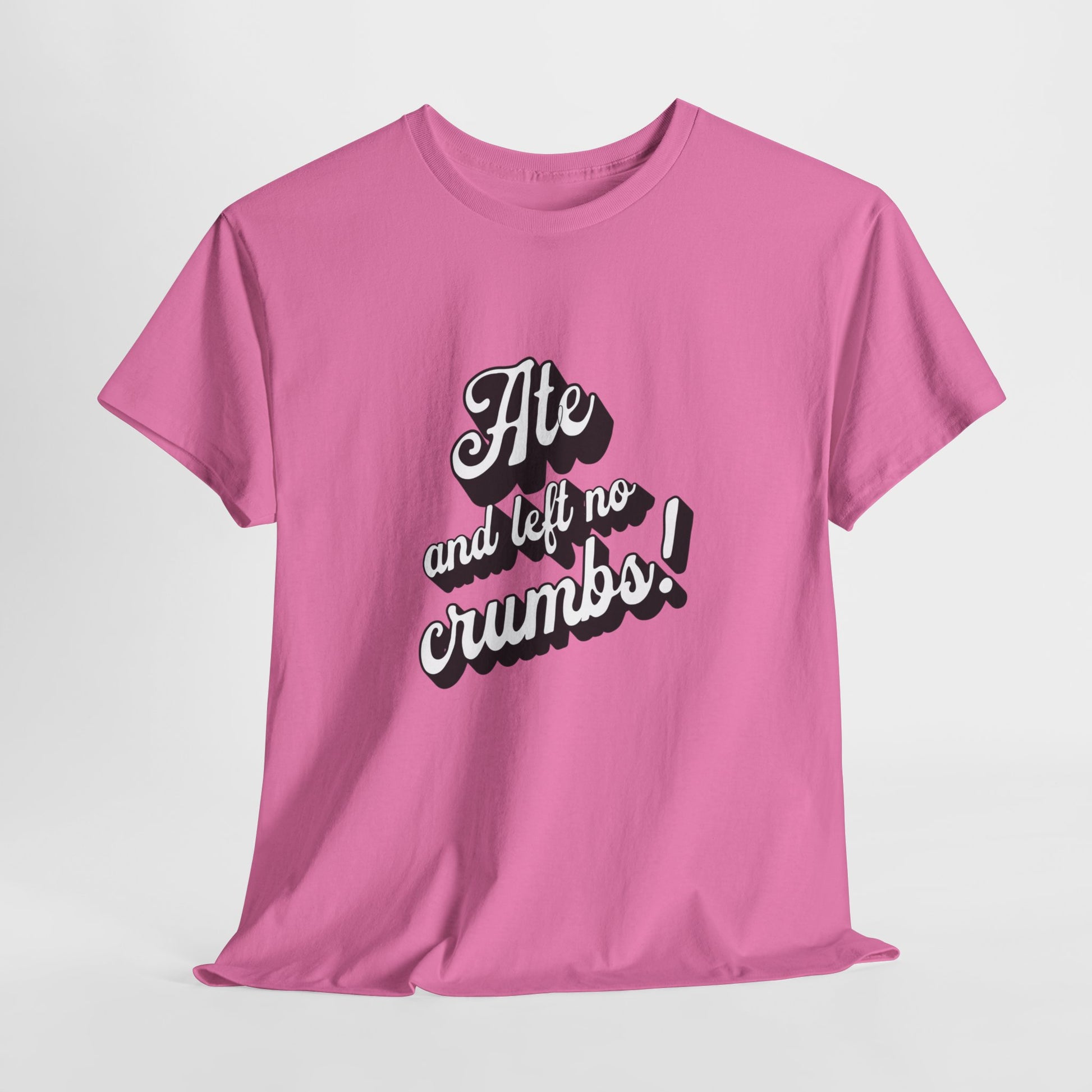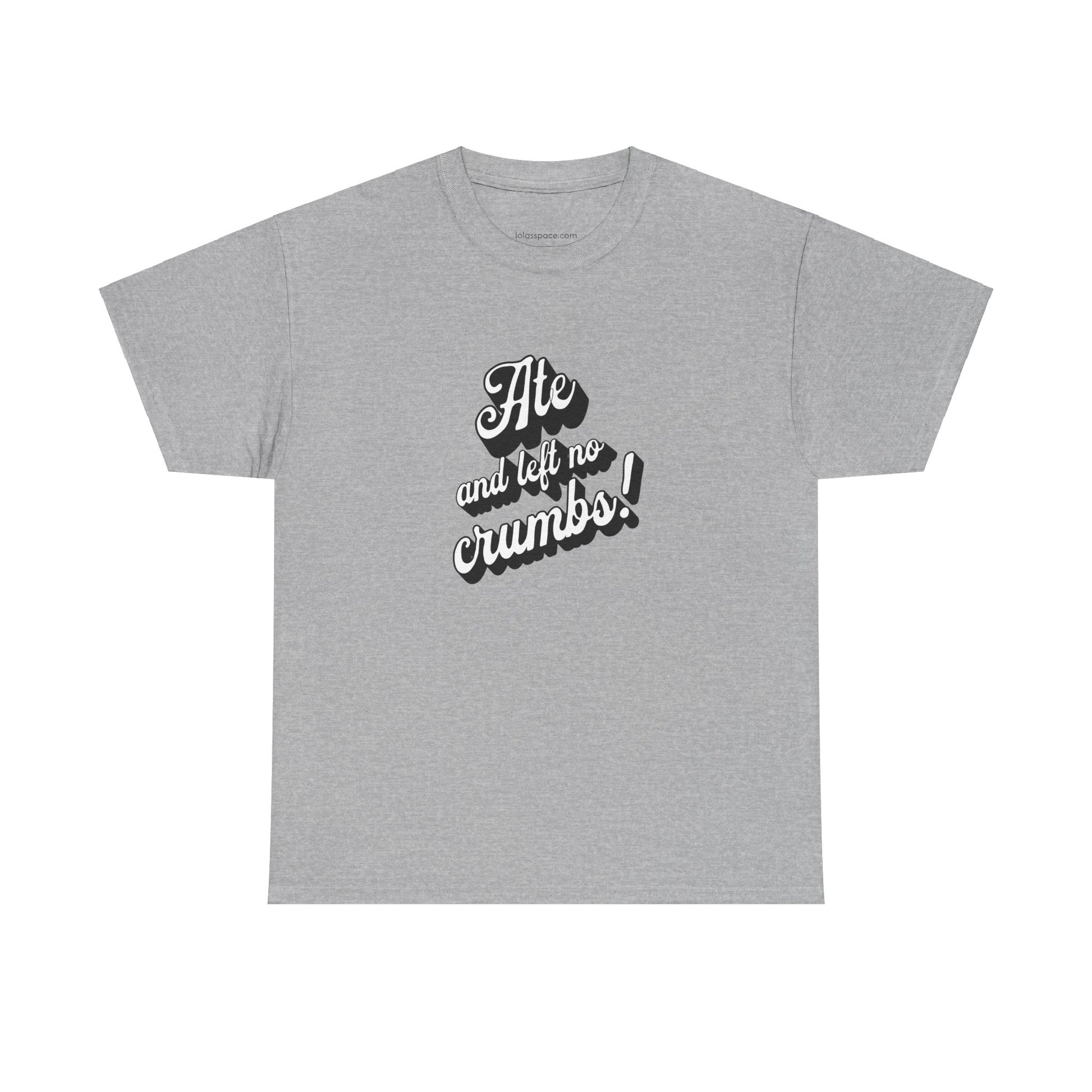 This 'Ate And Left No Crumbs' tee exudes a playful and carefree vibe, perfect for those who love quirky humor. It's ideal for casual wear and can be styled for everyday occasions. This tee is relevant for food lovers, humor enthusiasts, and those looking for a fun conversation starter. Perfect for gifts during birthdays, holidays, or just to add a touch of humor to someone's wardrobe.