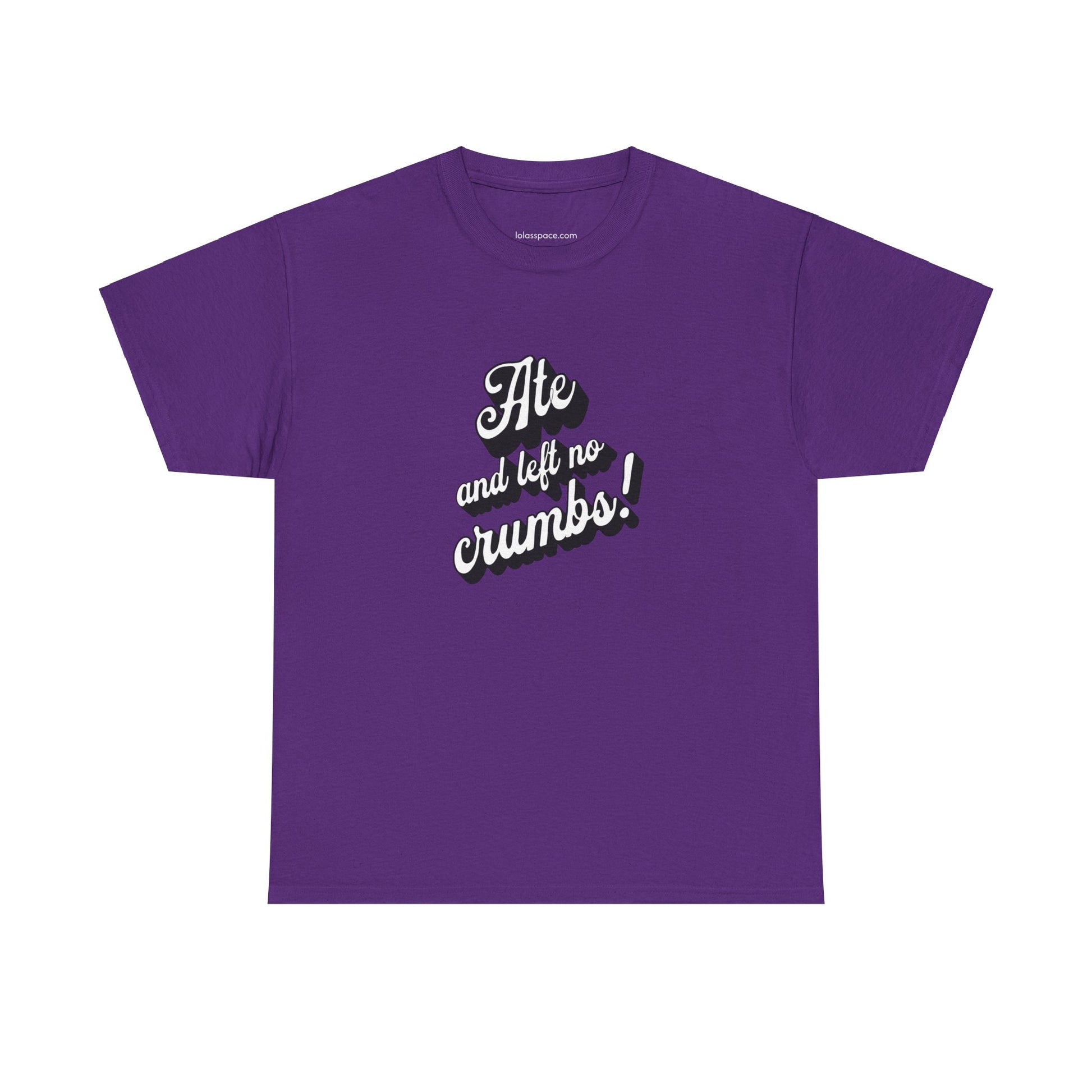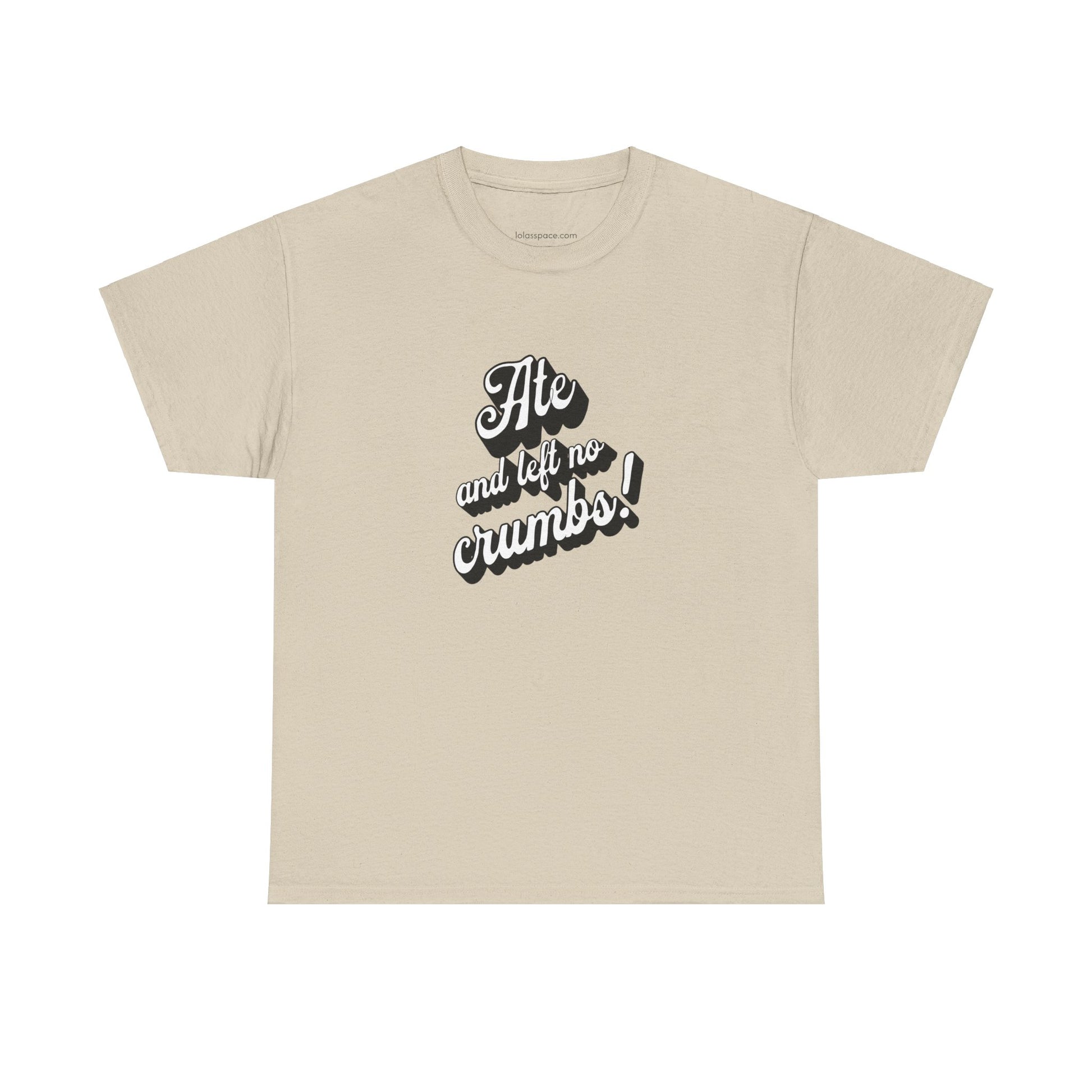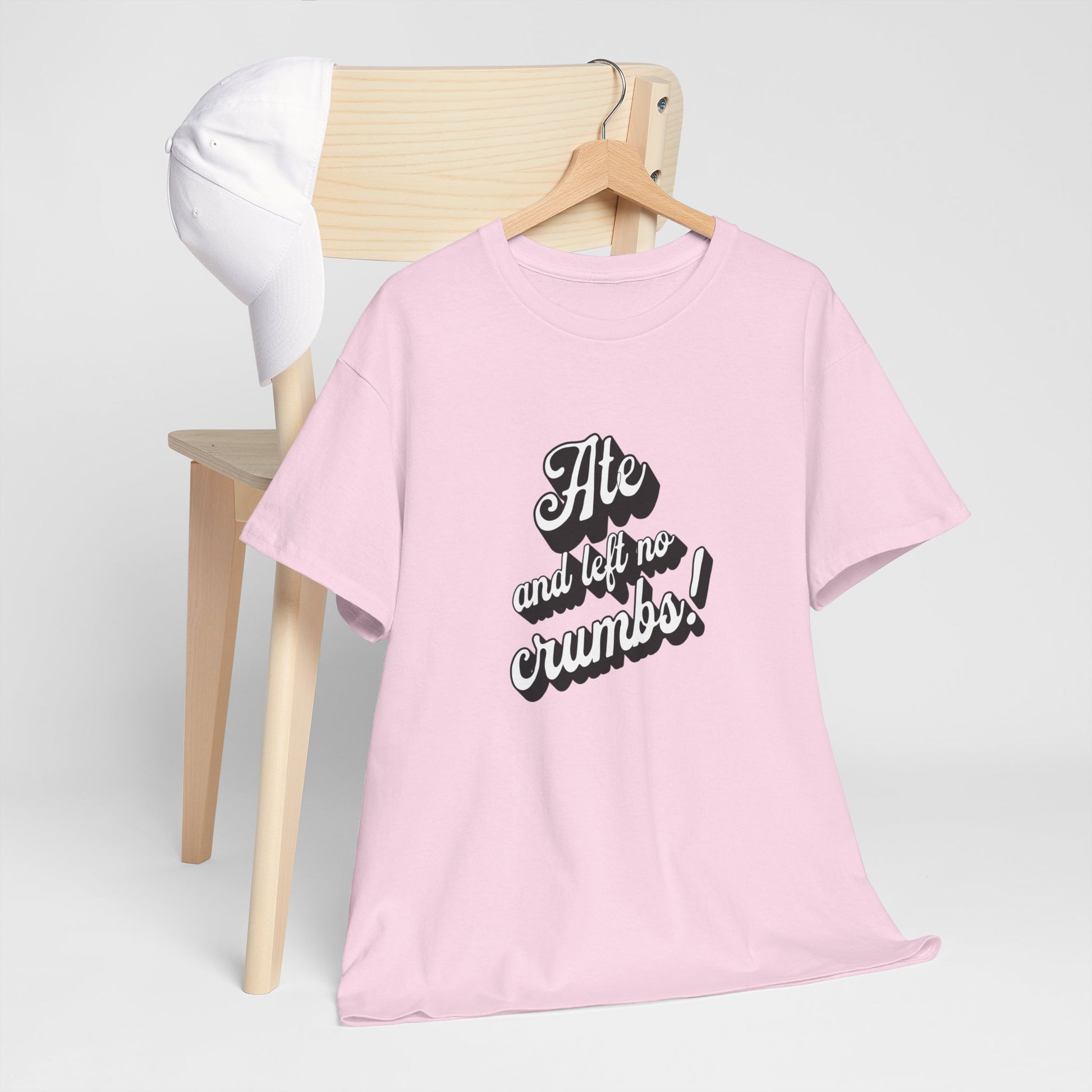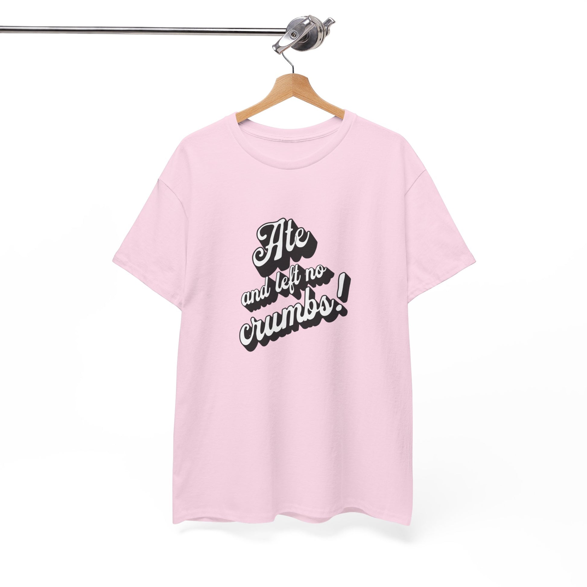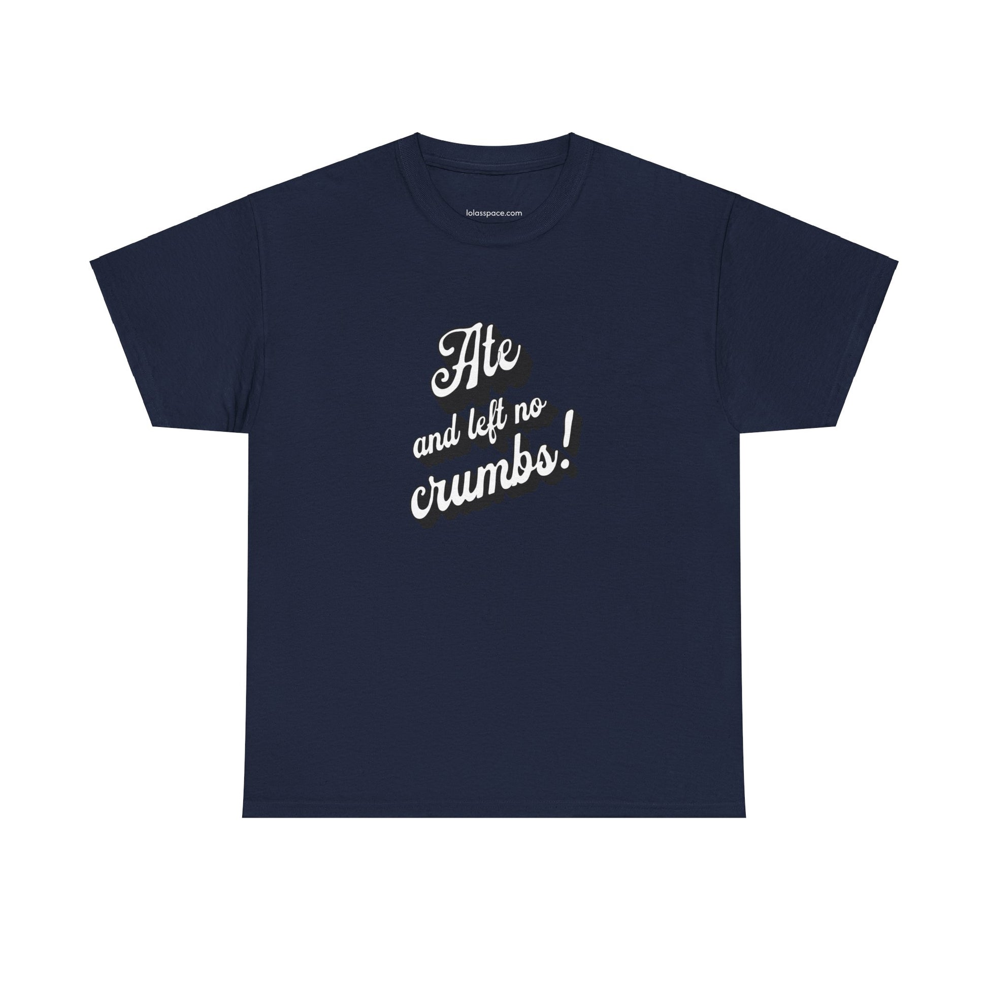 This 'Ate And Left No Crumbs' tee exudes a playful and carefree vibe, perfect for those who love quirky humor. It's ideal for casual wear and can be styled for everyday occasions. This tee is relevant for food lovers, humor enthusiasts, and those looking for a fun conversation starter. Perfect for gifts during birthdays, holidays, or just to add a touch of humor to someone's wardrobe.