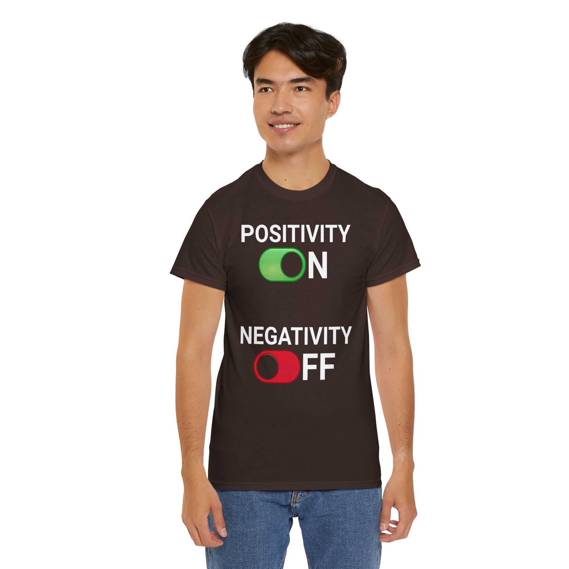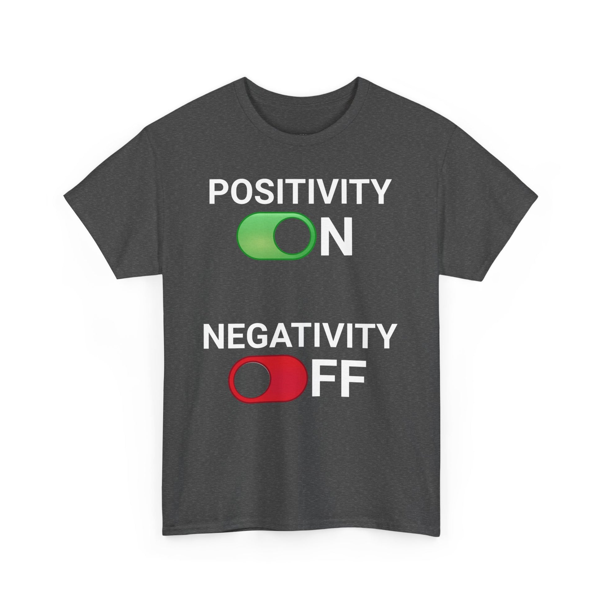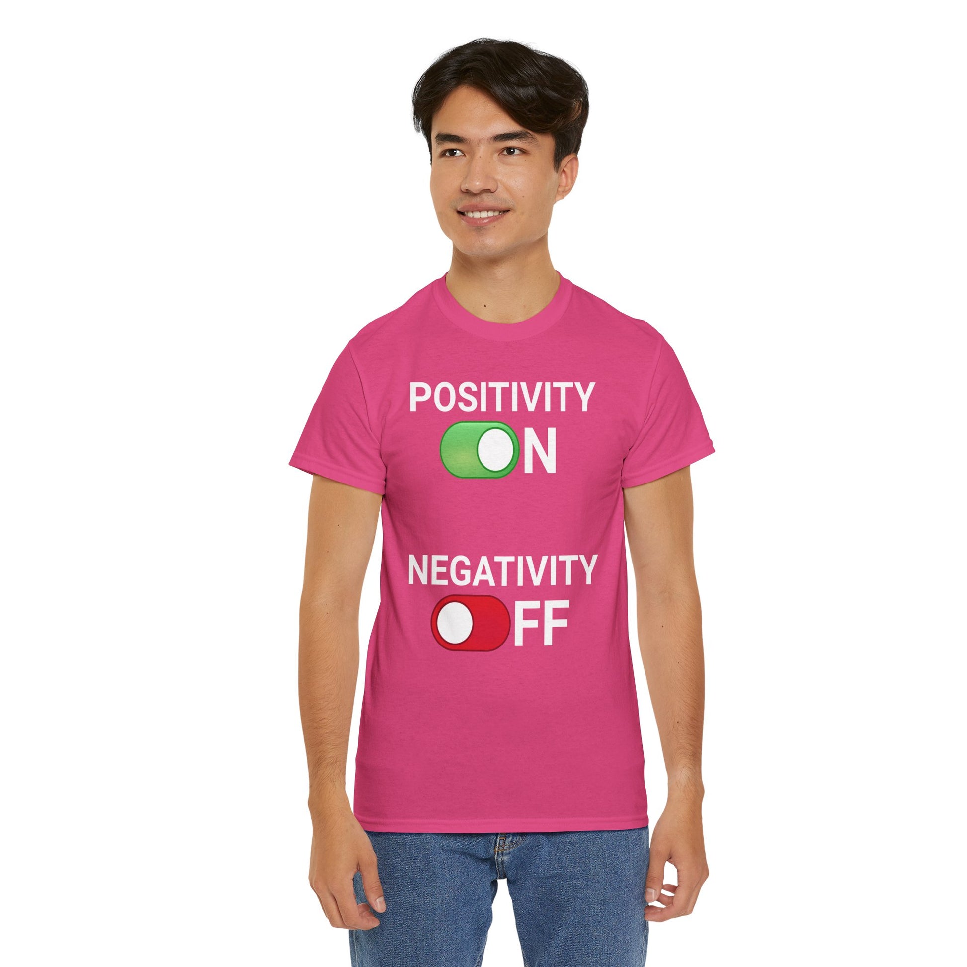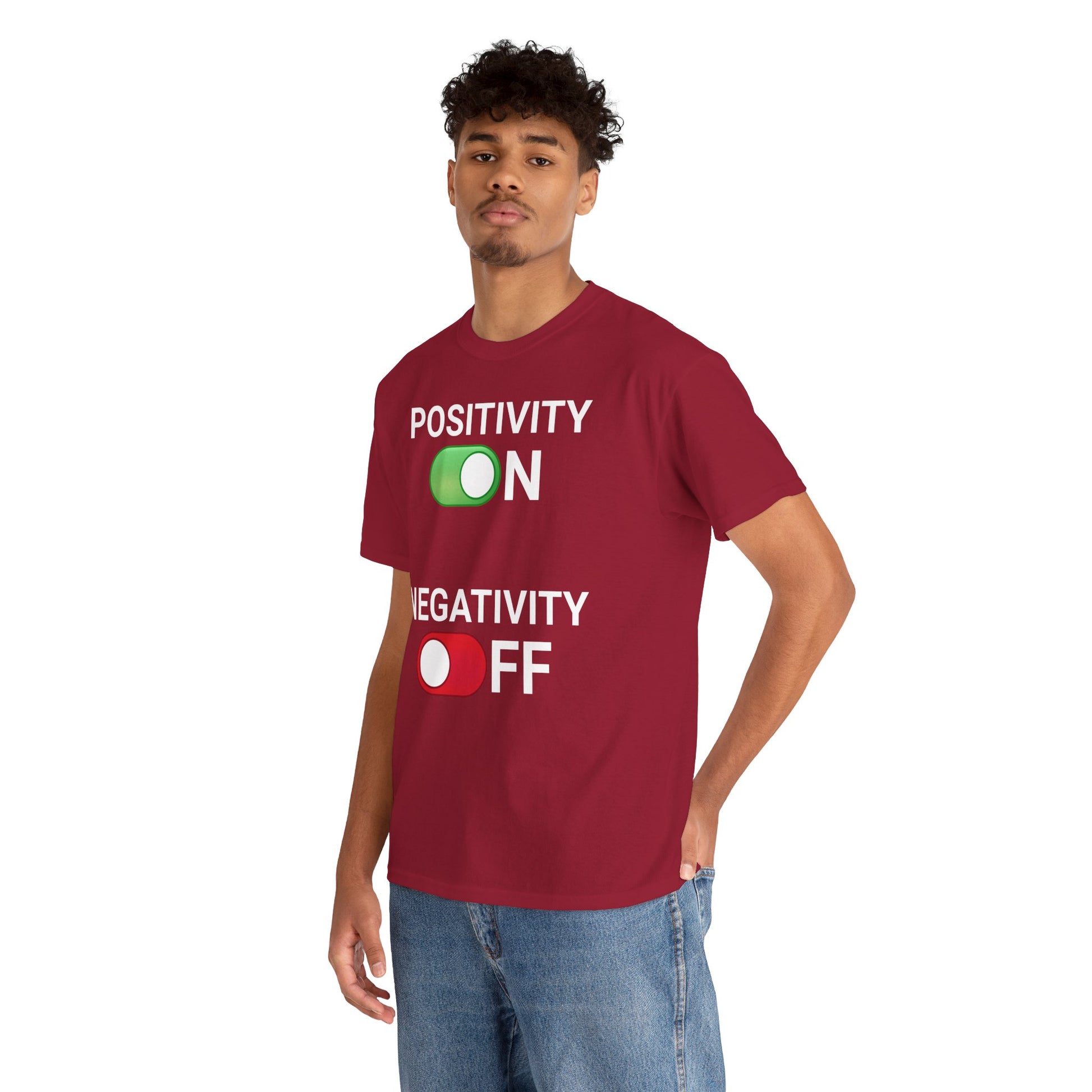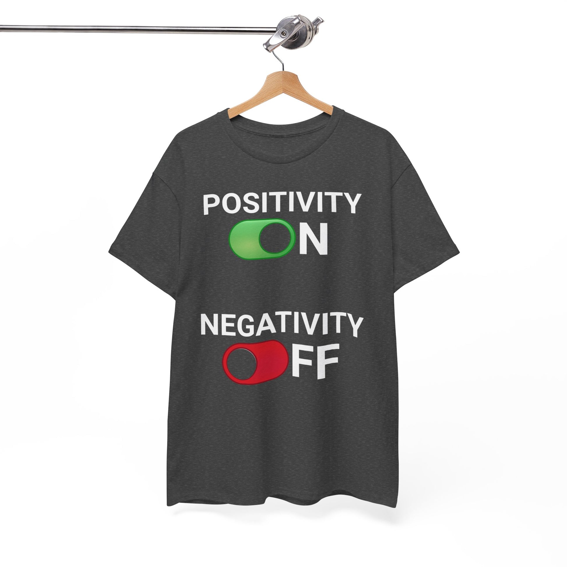 Stay positive and spread good vibes with this Unisex Heavy Cotton Tee. The design promotes positivity and turning off negativity, making it a perfect addition to anyone's wardrobe. Ideal for those who value positive energy and mindfulness, this tee is great for everyday wear, casual outings, or as a thoughtful gift for loved ones. Perfect for occasions like birthdays, holidays, or just when you need a boost of positivity.