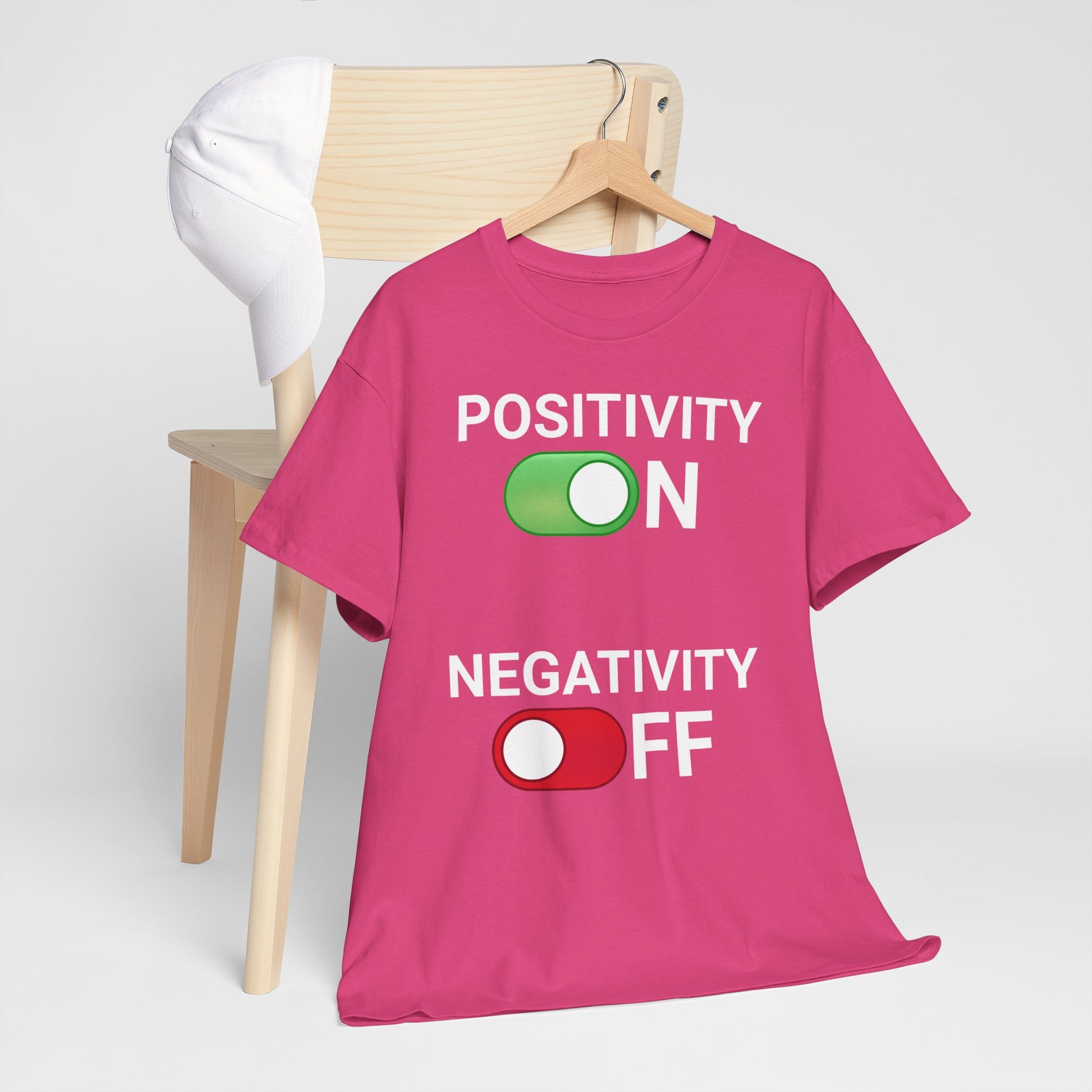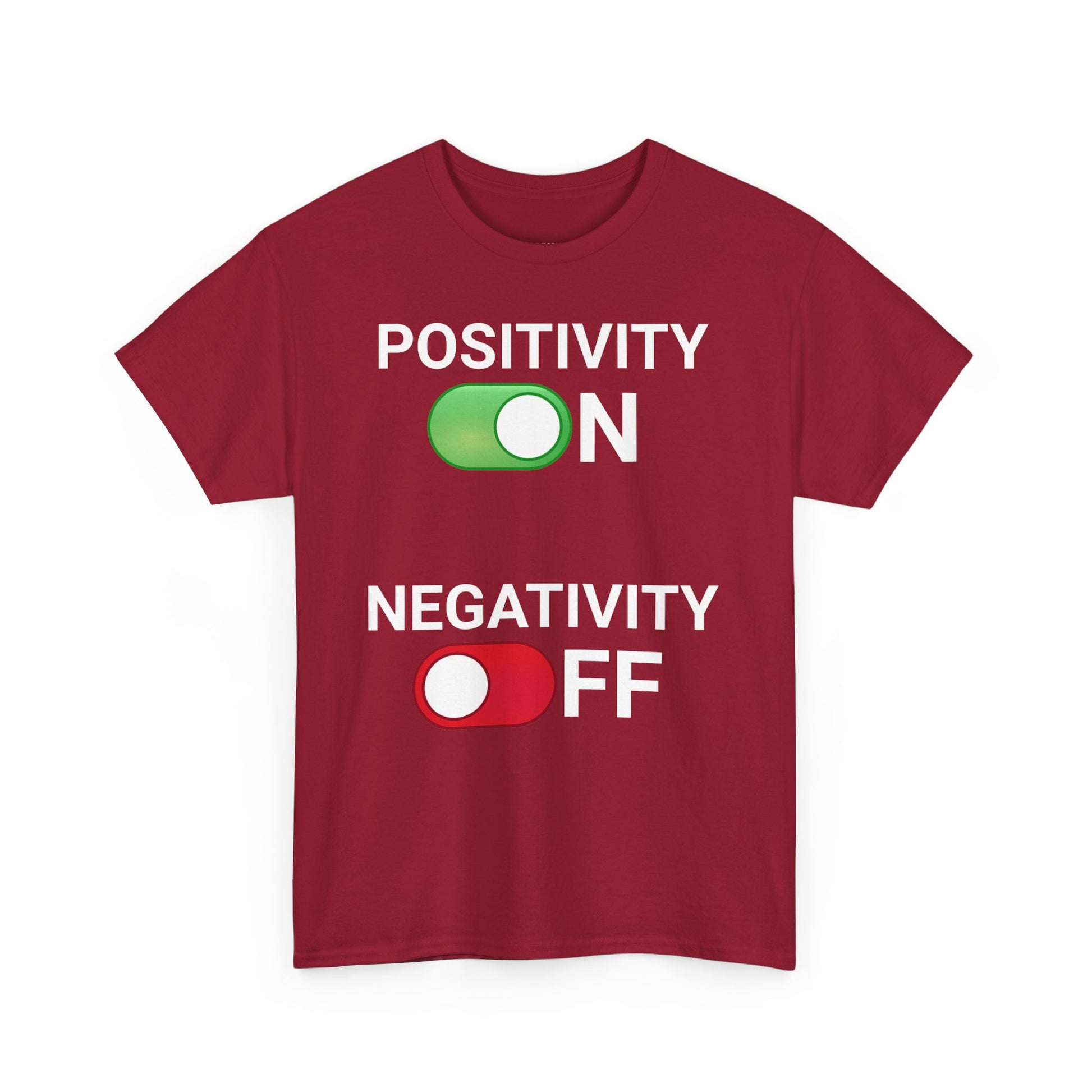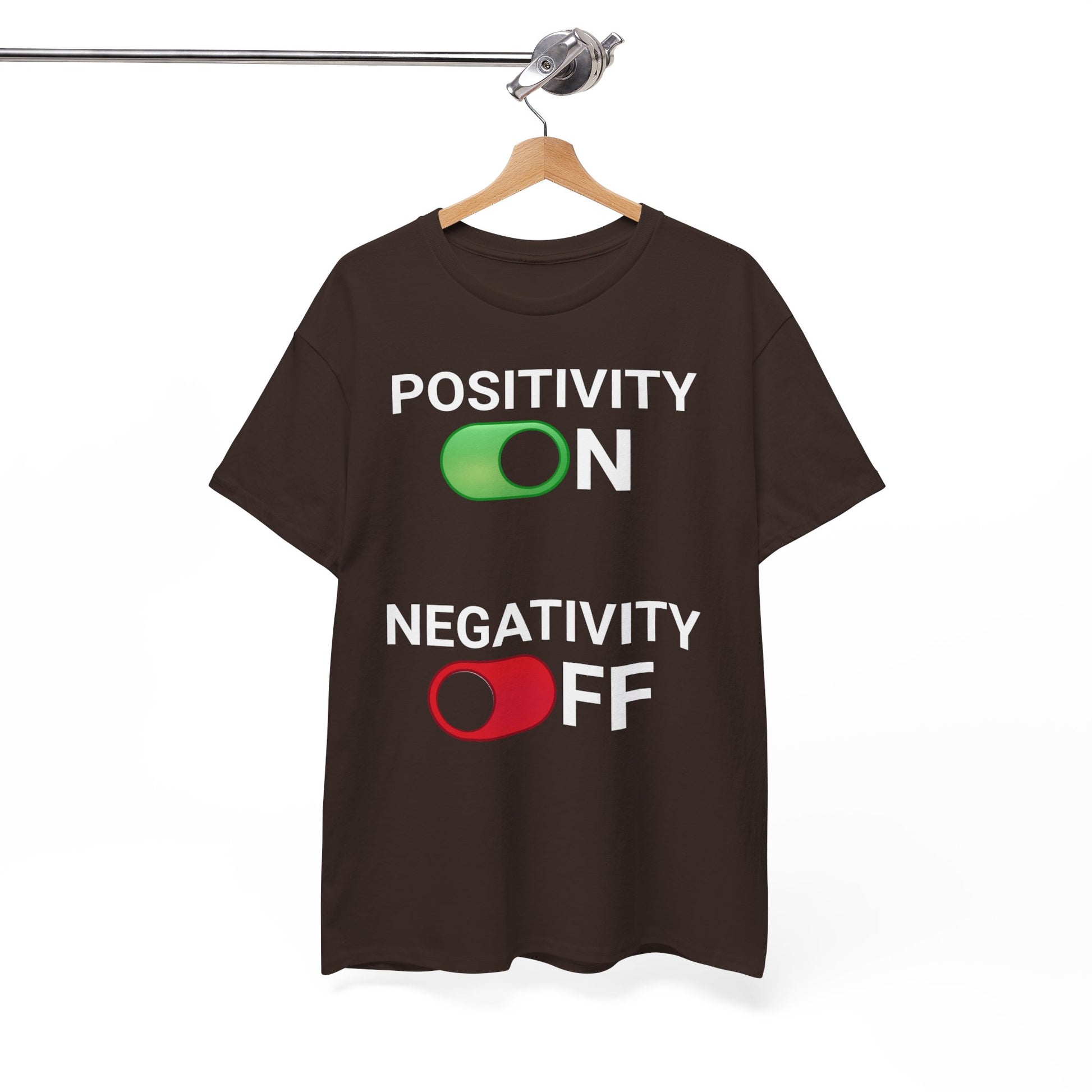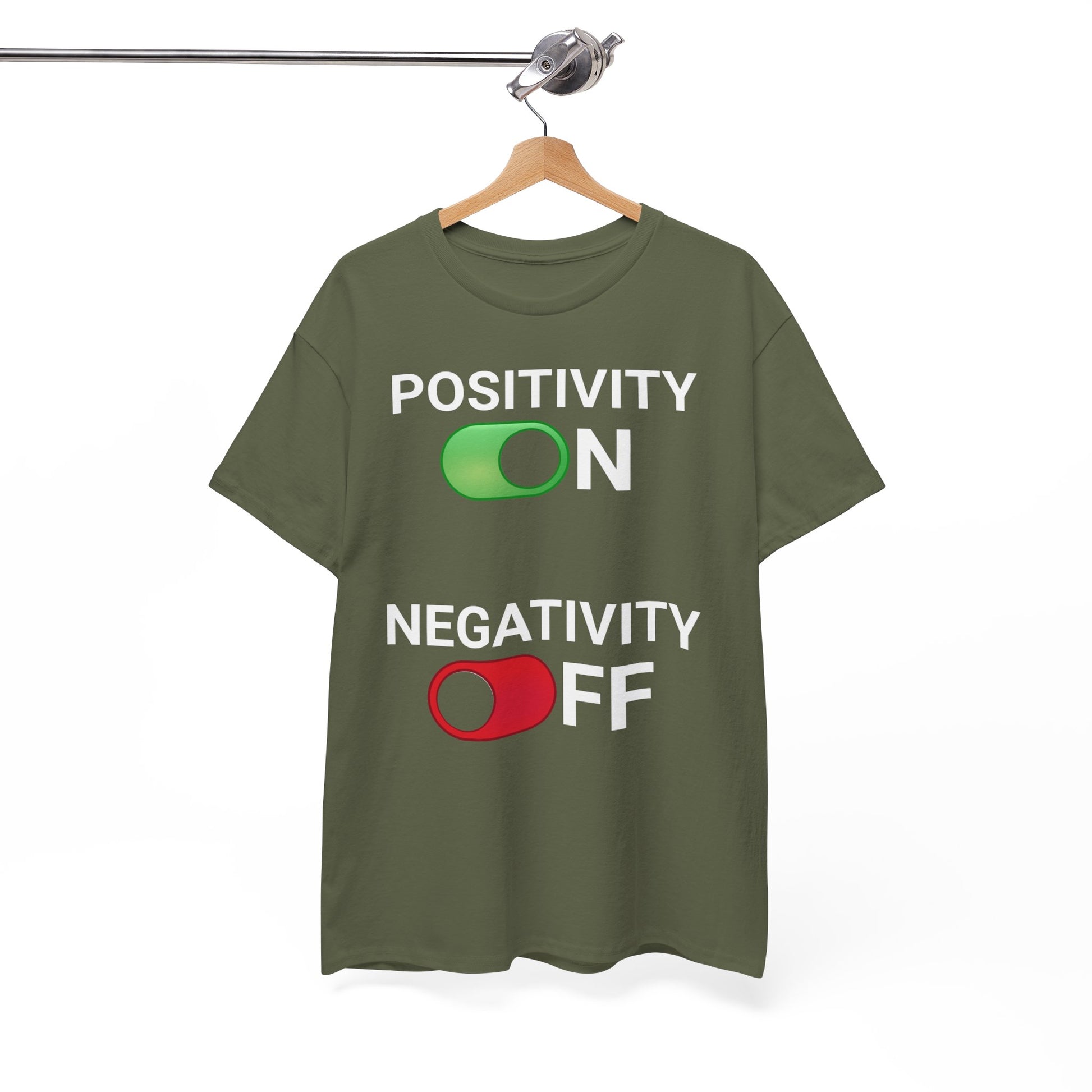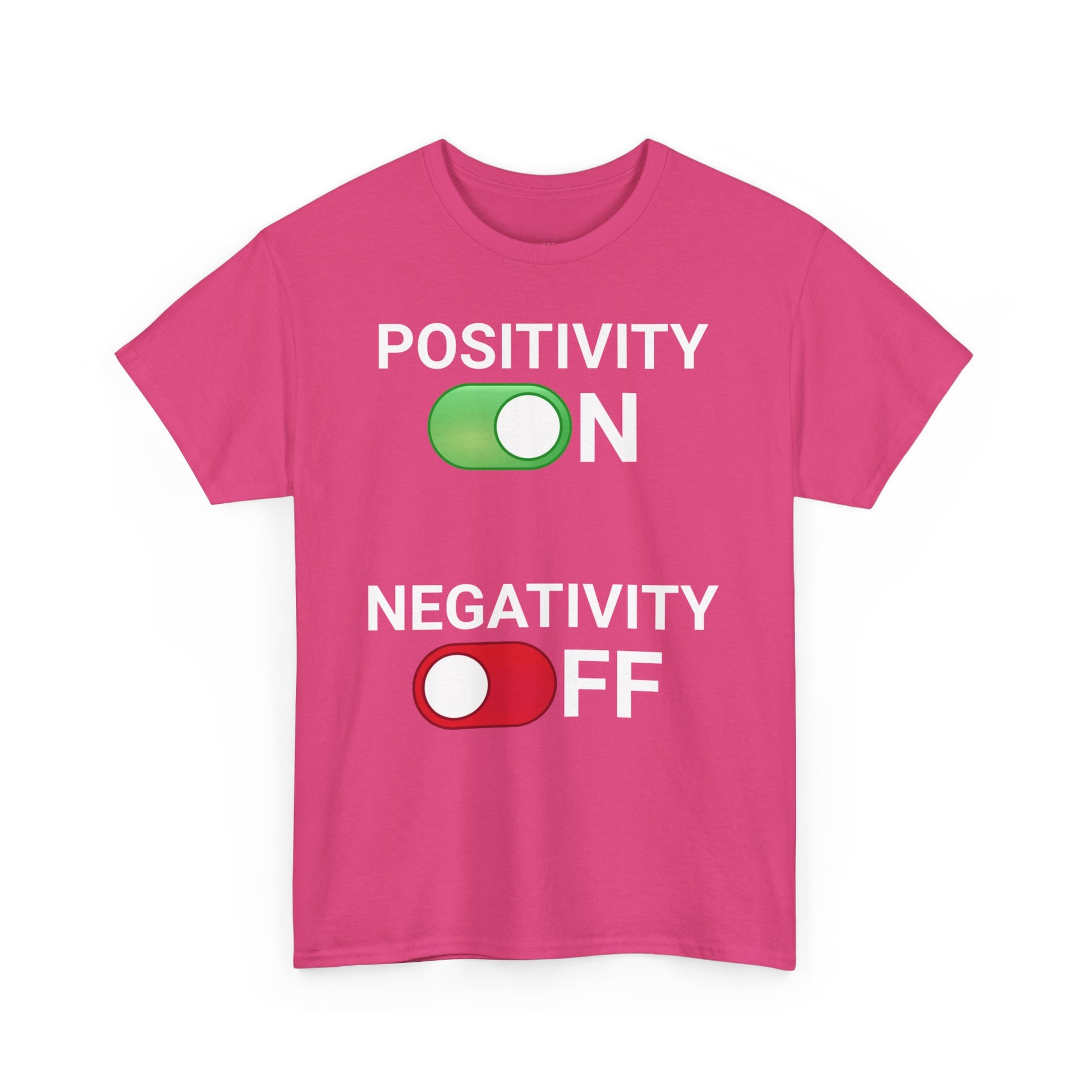 Stay positive and spread good vibes with this Unisex Heavy Cotton Tee. The design promotes positivity and turning off negativity, making it a perfect addition to anyone's wardrobe. Ideal for those who value positive energy and mindfulness, this tee is great for everyday wear, casual outings, or as a thoughtful gift for loved ones. Perfect for occasions like birthdays, holidays, or just when you need a boost of positivity.