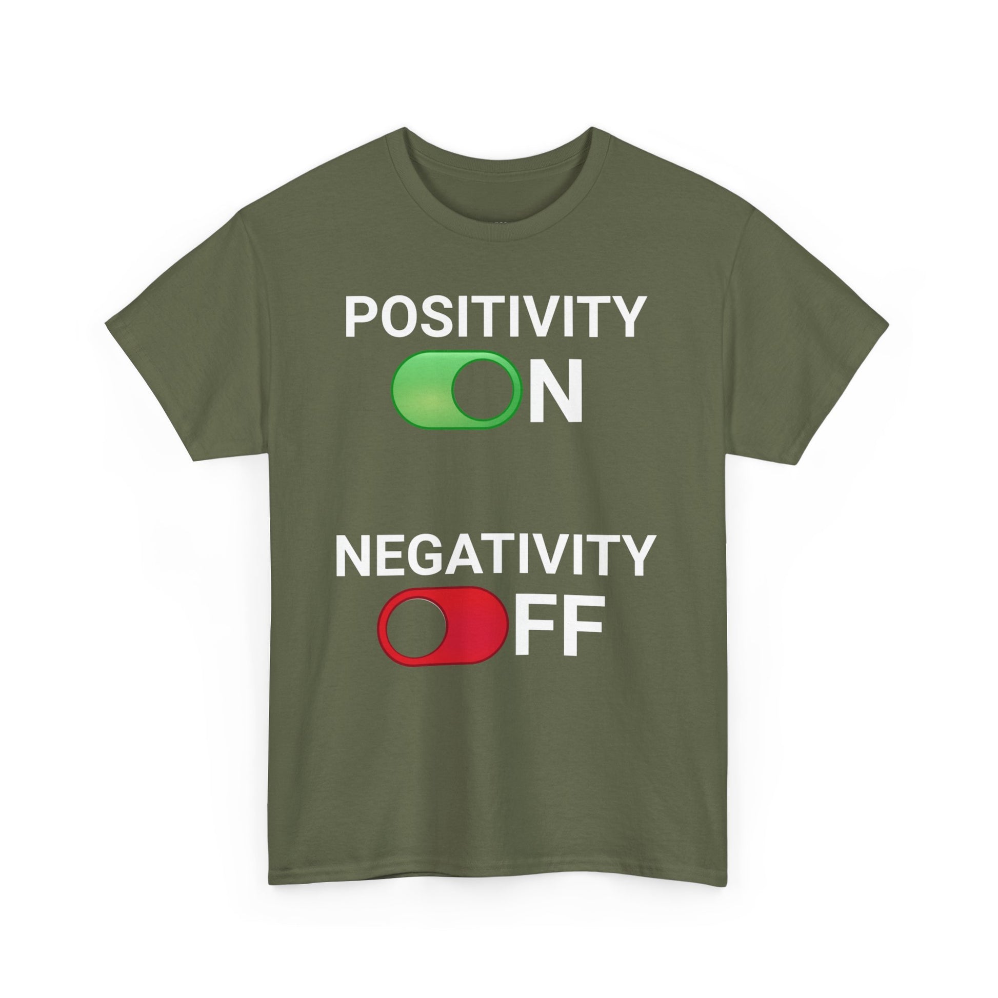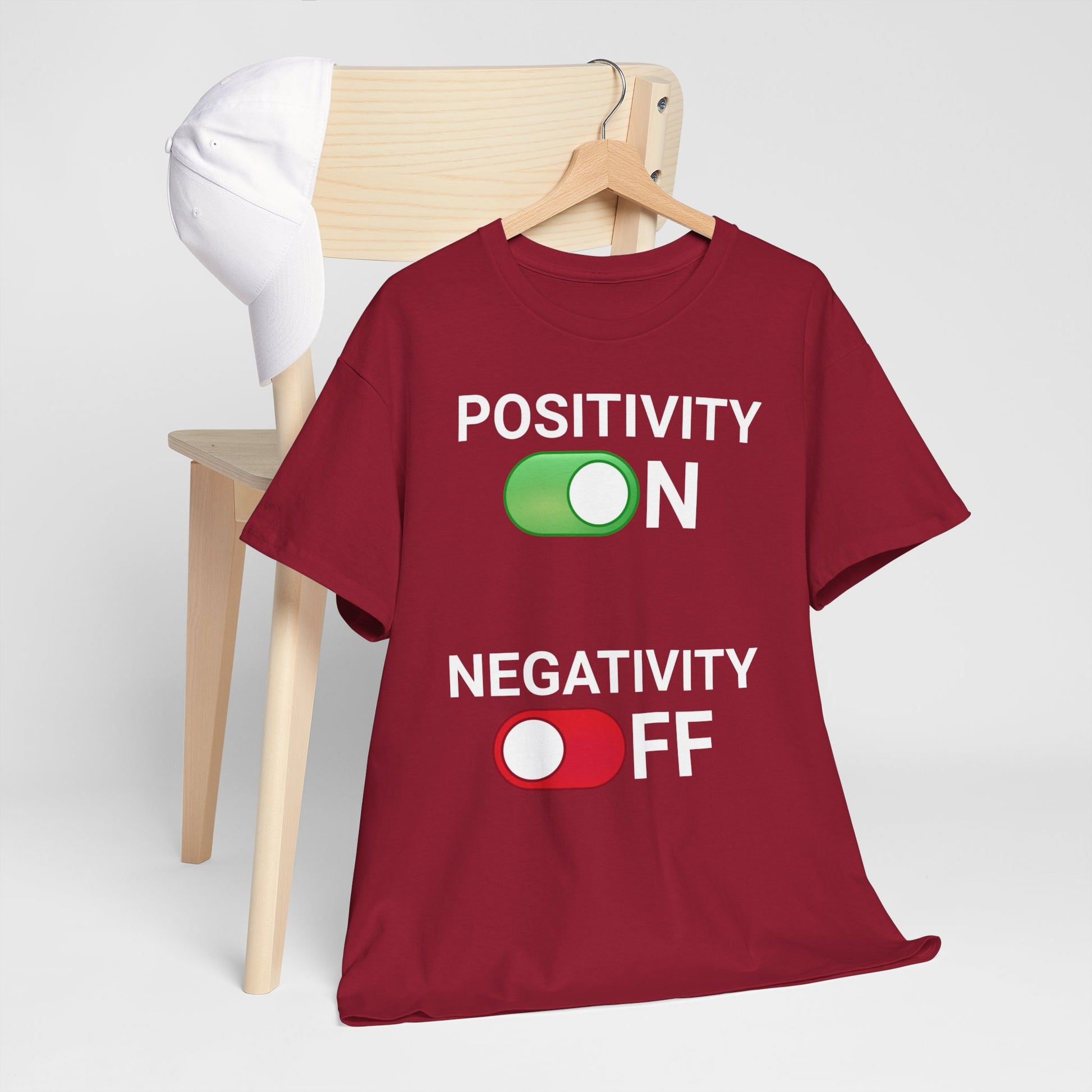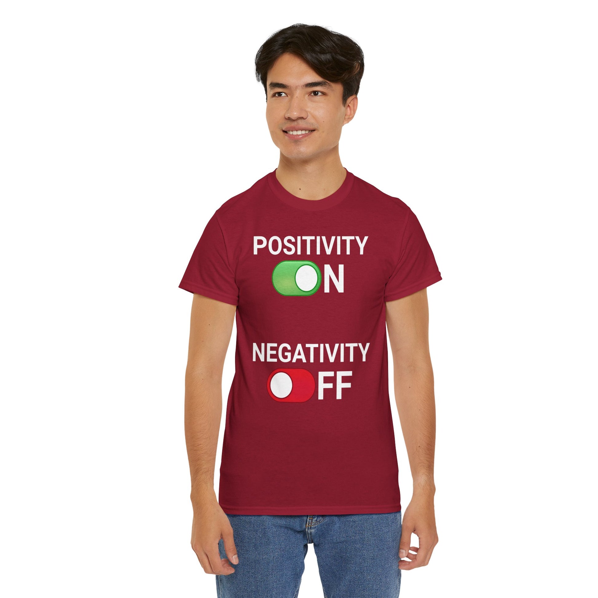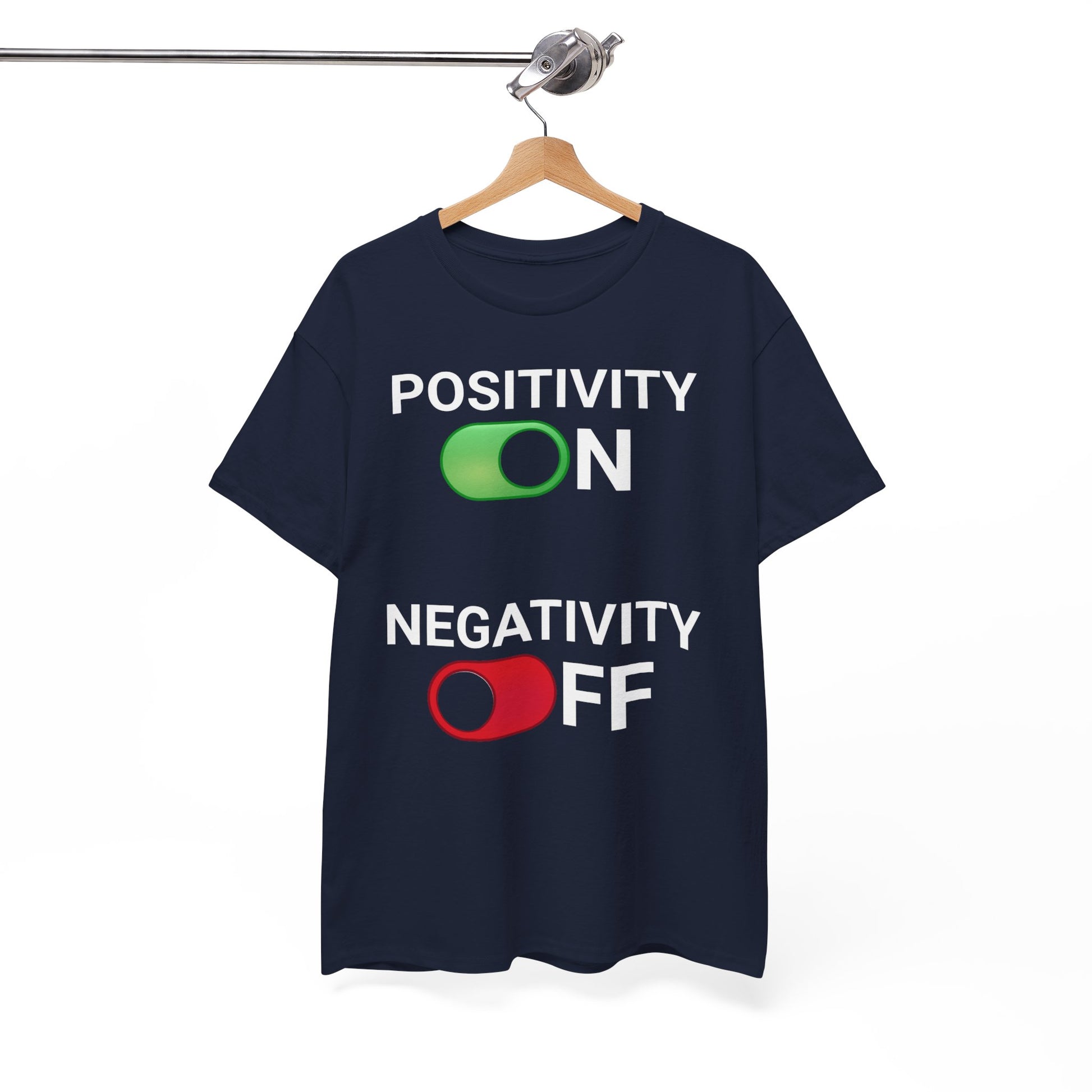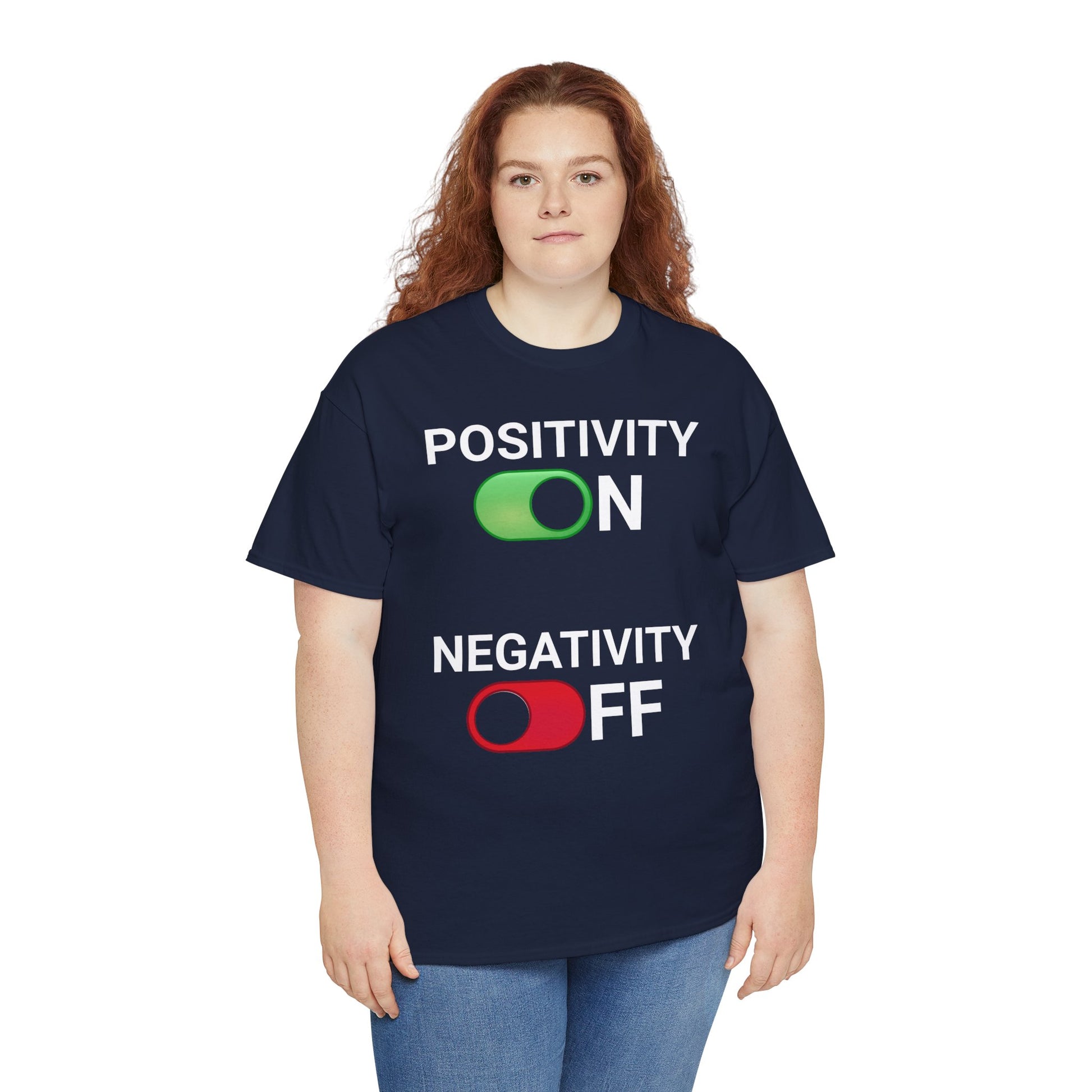 Stay positive and spread good vibes with this Unisex Heavy Cotton Tee. The design promotes positivity and turning off negativity, making it a perfect addition to anyone's wardrobe. Ideal for those who value positive energy and mindfulness, this tee is great for everyday wear, casual outings, or as a thoughtful gift for loved ones. Perfect for occasions like birthdays, holidays, or just when you need a boost of positivity.