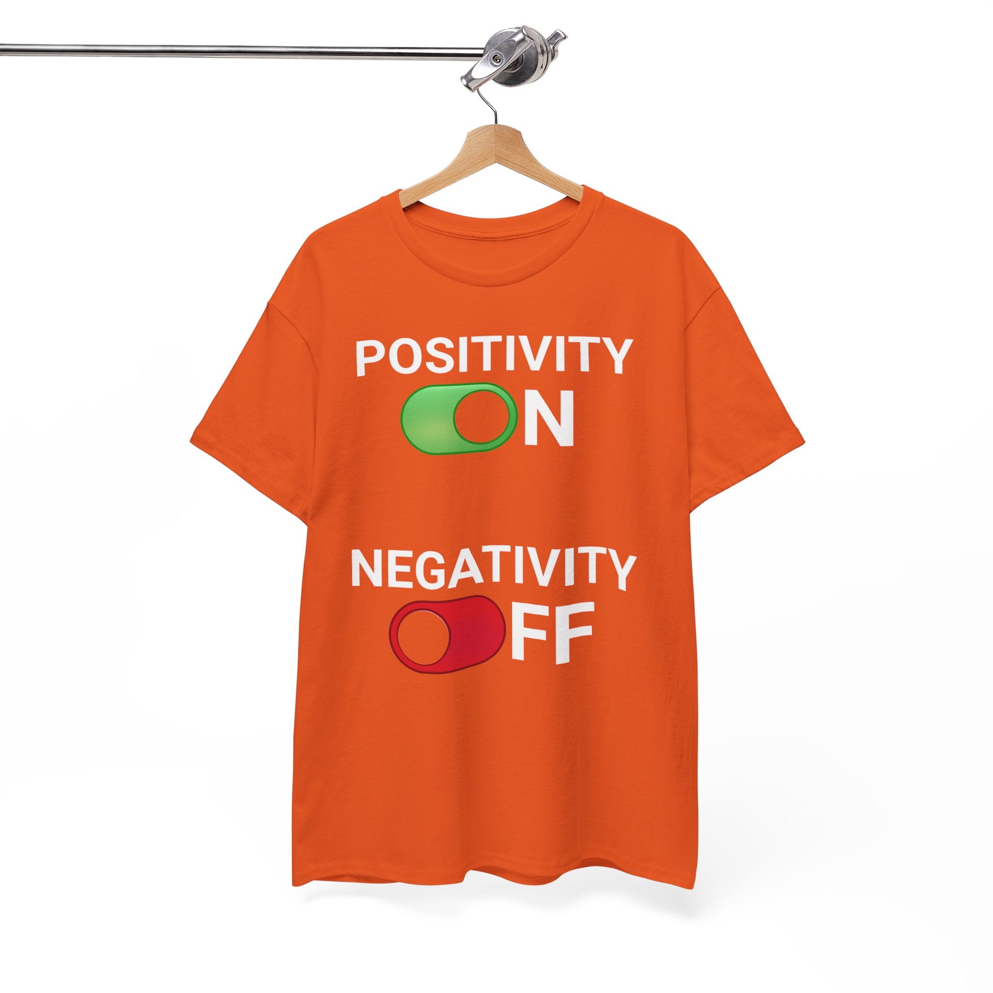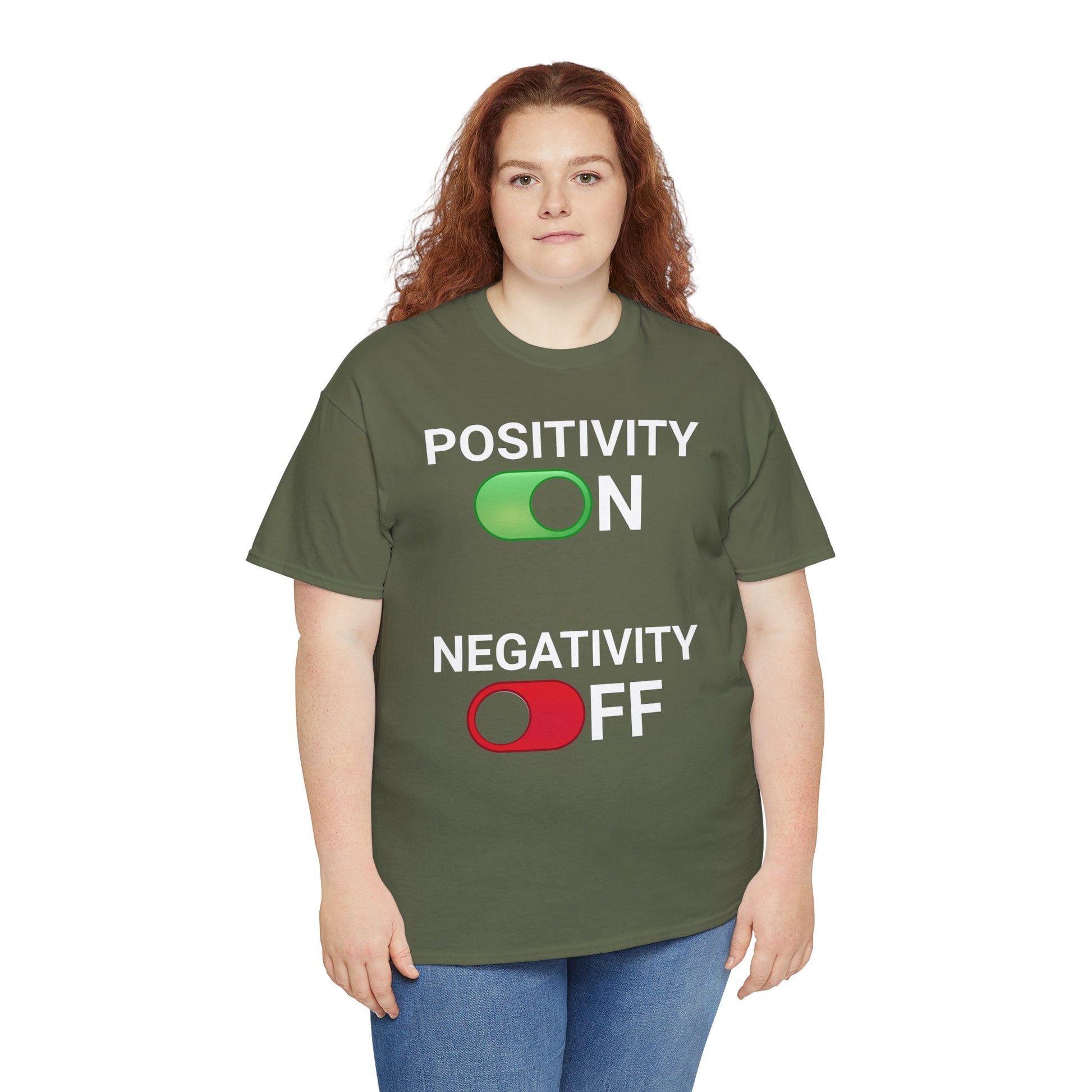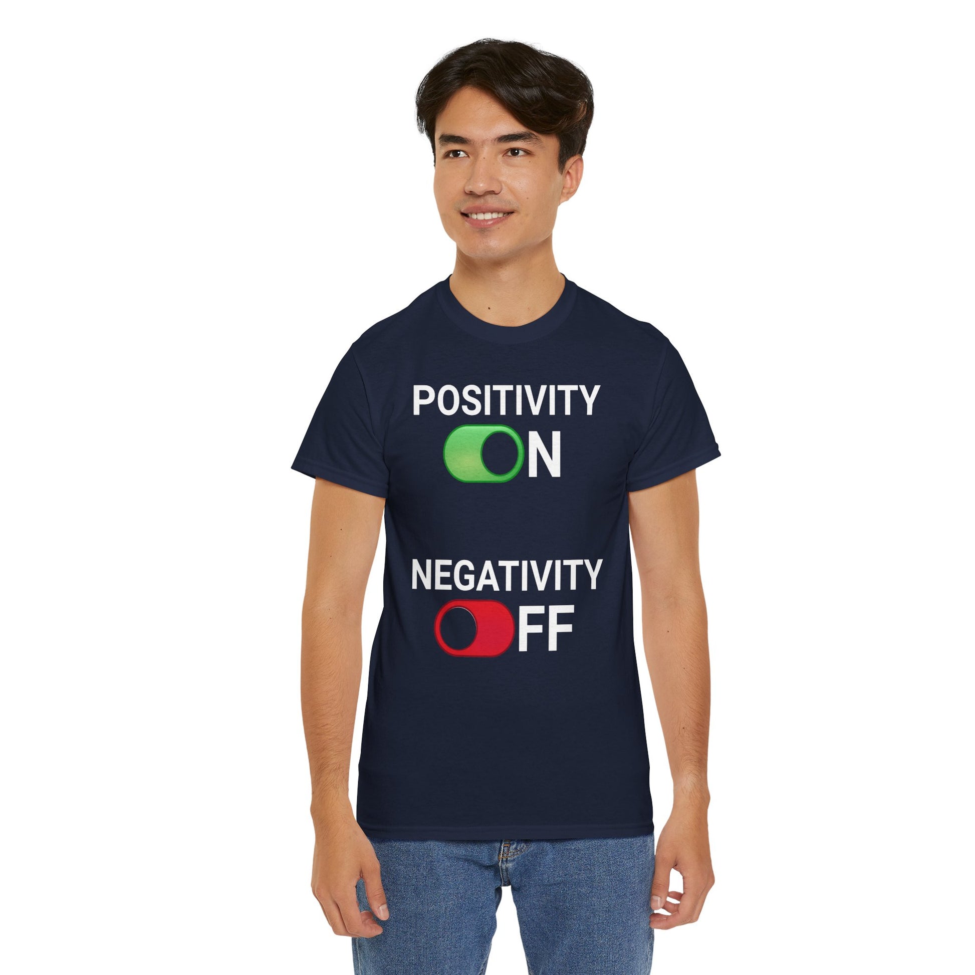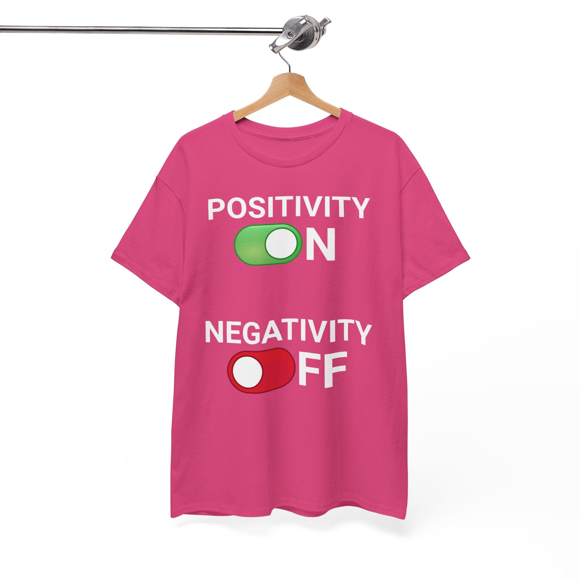 Stay positive and spread good vibes with this Unisex Heavy Cotton Tee. The design promotes positivity and turning off negativity, making it a perfect addition to anyone's wardrobe. Ideal for those who value positive energy and mindfulness, this tee is great for everyday wear, casual outings, or as a thoughtful gift for loved ones. Perfect for occasions like birthdays, holidays, or just when you need a boost of positivity.