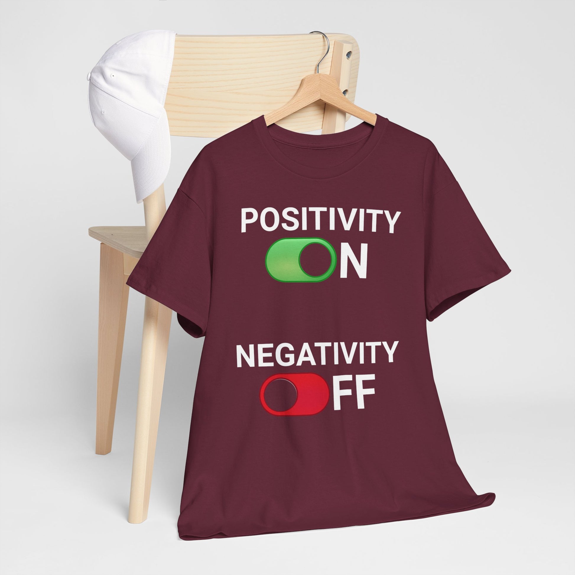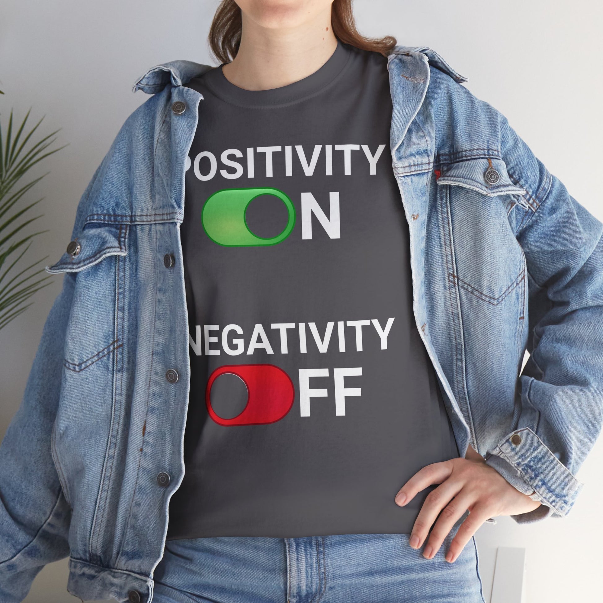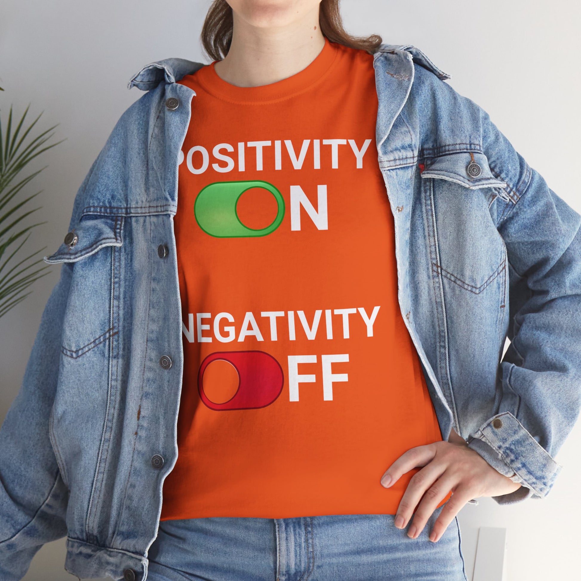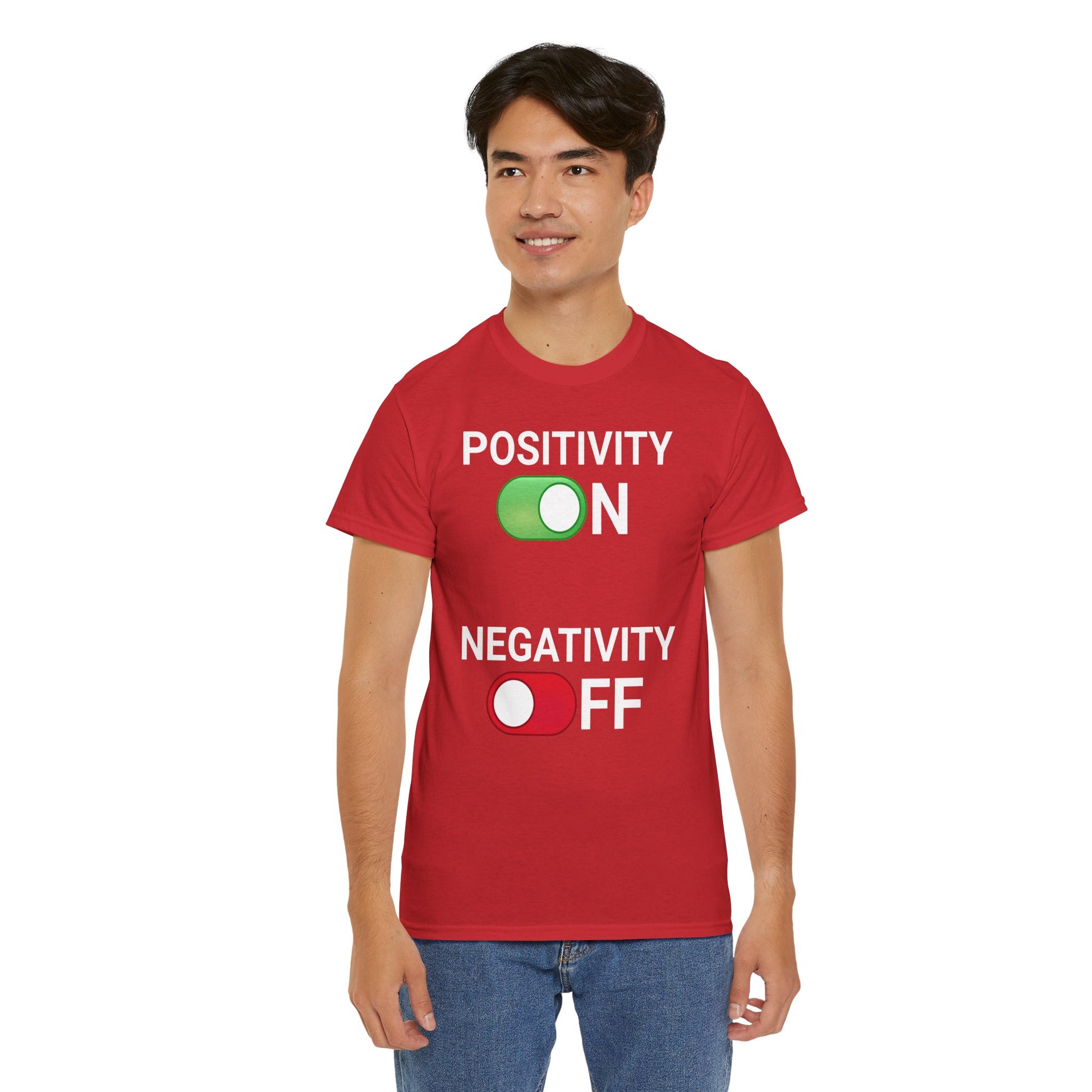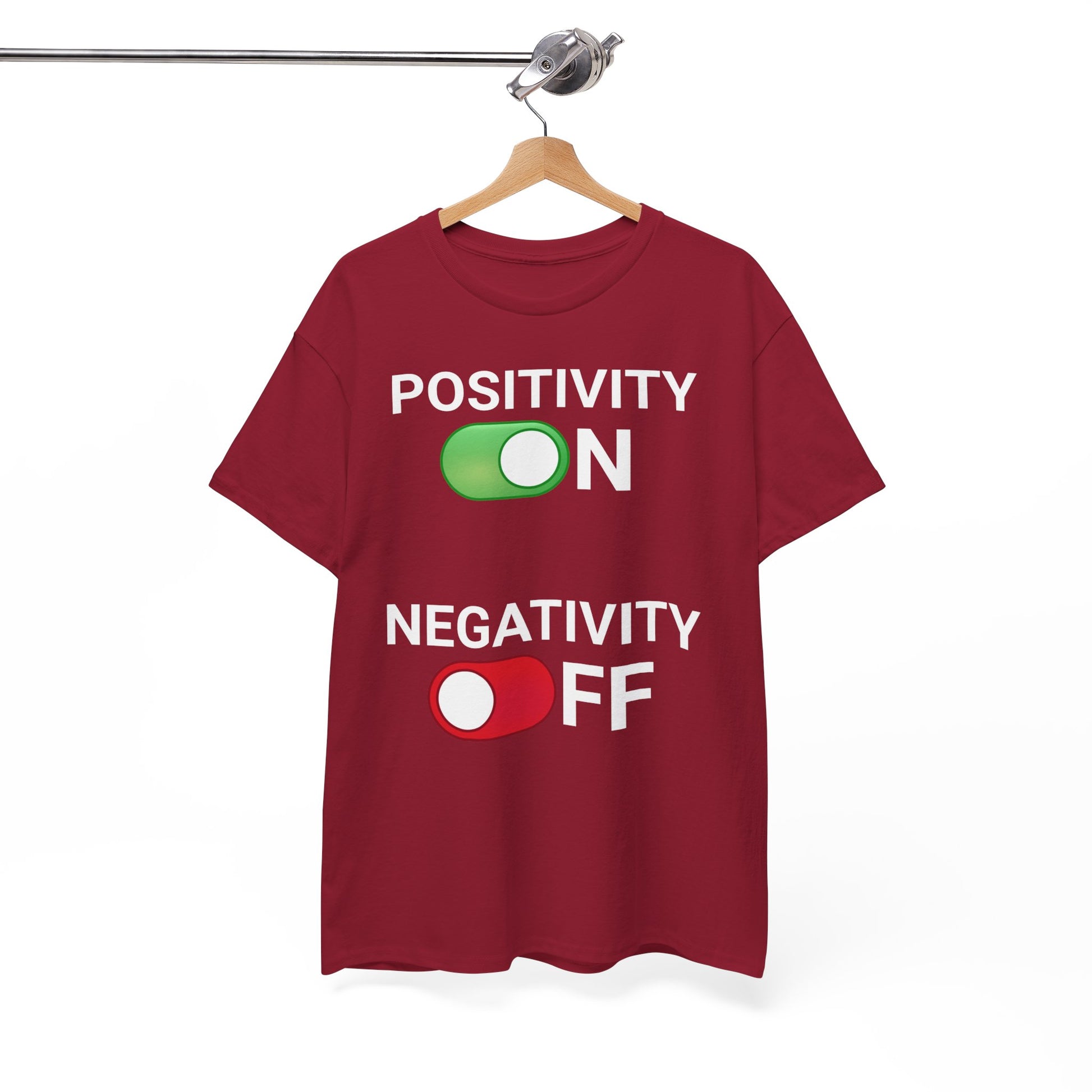 Stay positive and spread good vibes with this Unisex Heavy Cotton Tee. The design promotes positivity and turning off negativity, making it a perfect addition to anyone's wardrobe. Ideal for those who value positive energy and mindfulness, this tee is great for everyday wear, casual outings, or as a thoughtful gift for loved ones. Perfect for occasions like birthdays, holidays, or just when you need a boost of positivity.