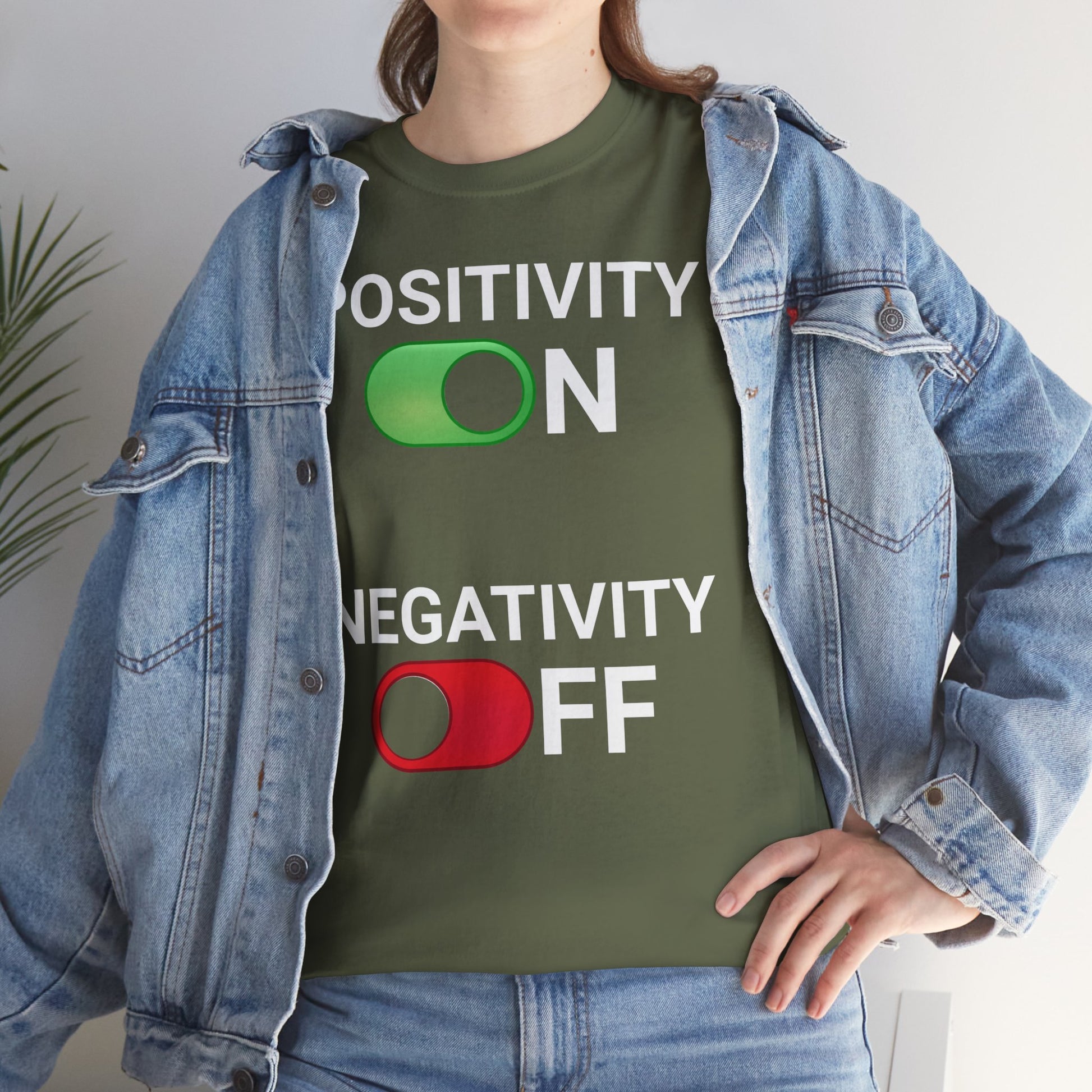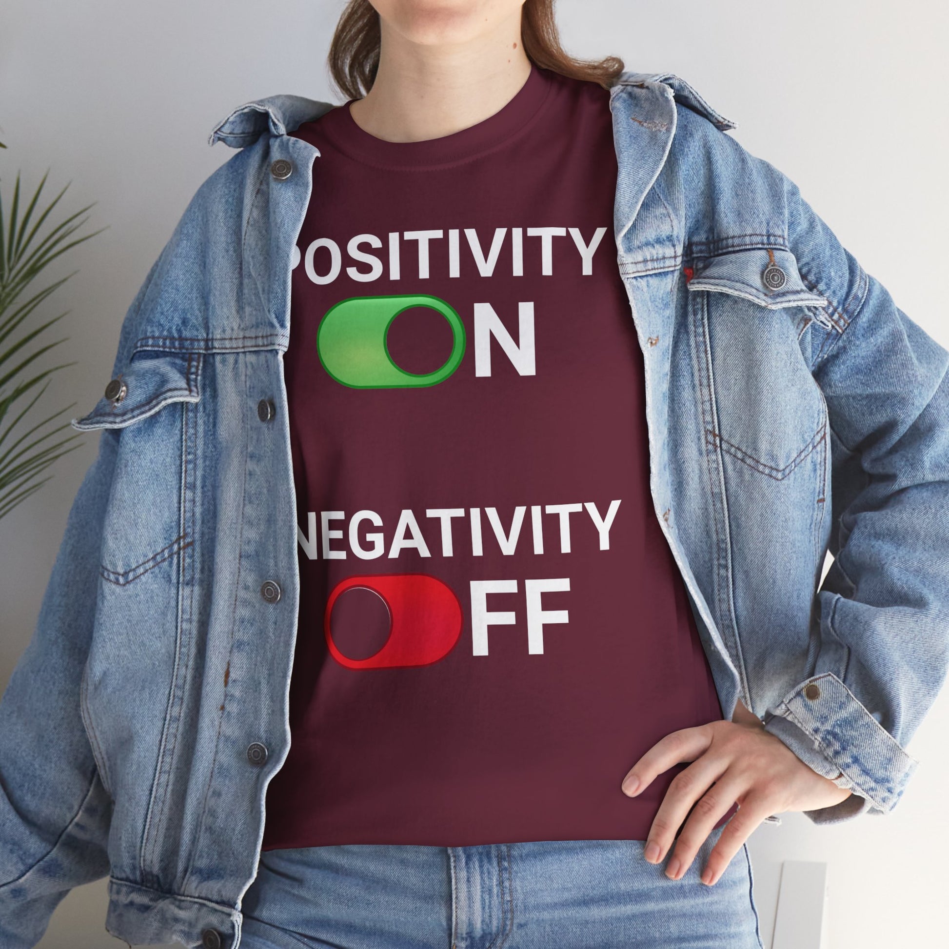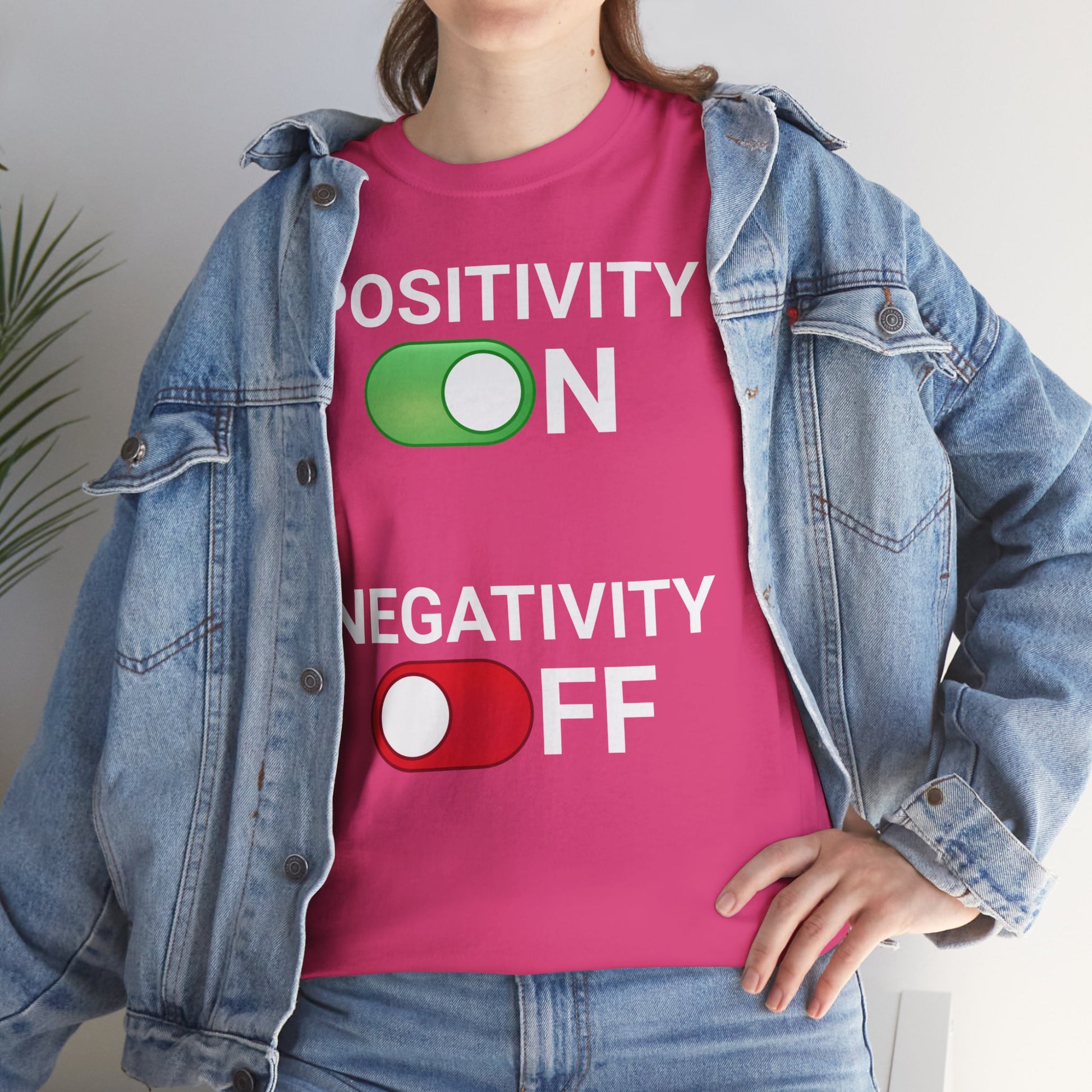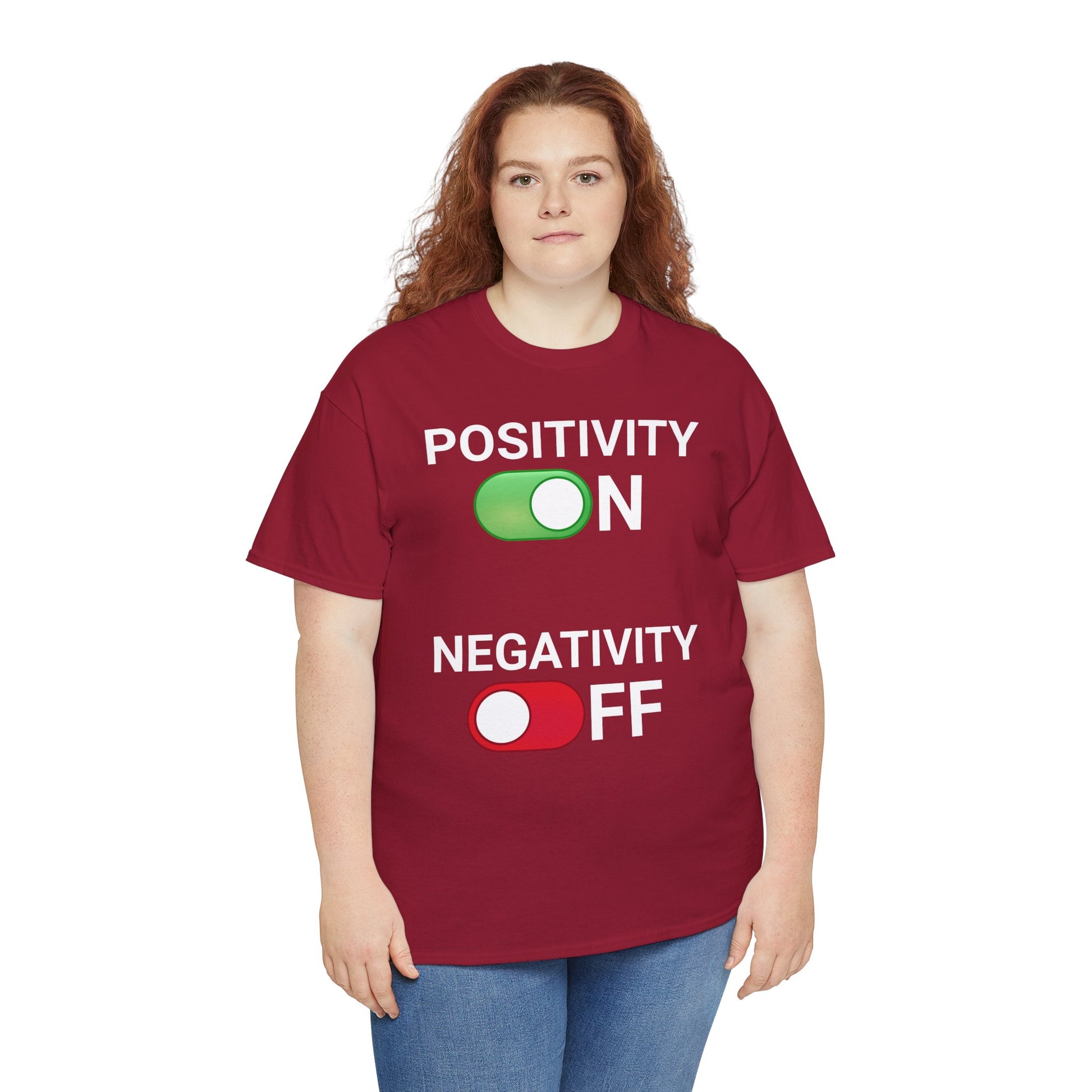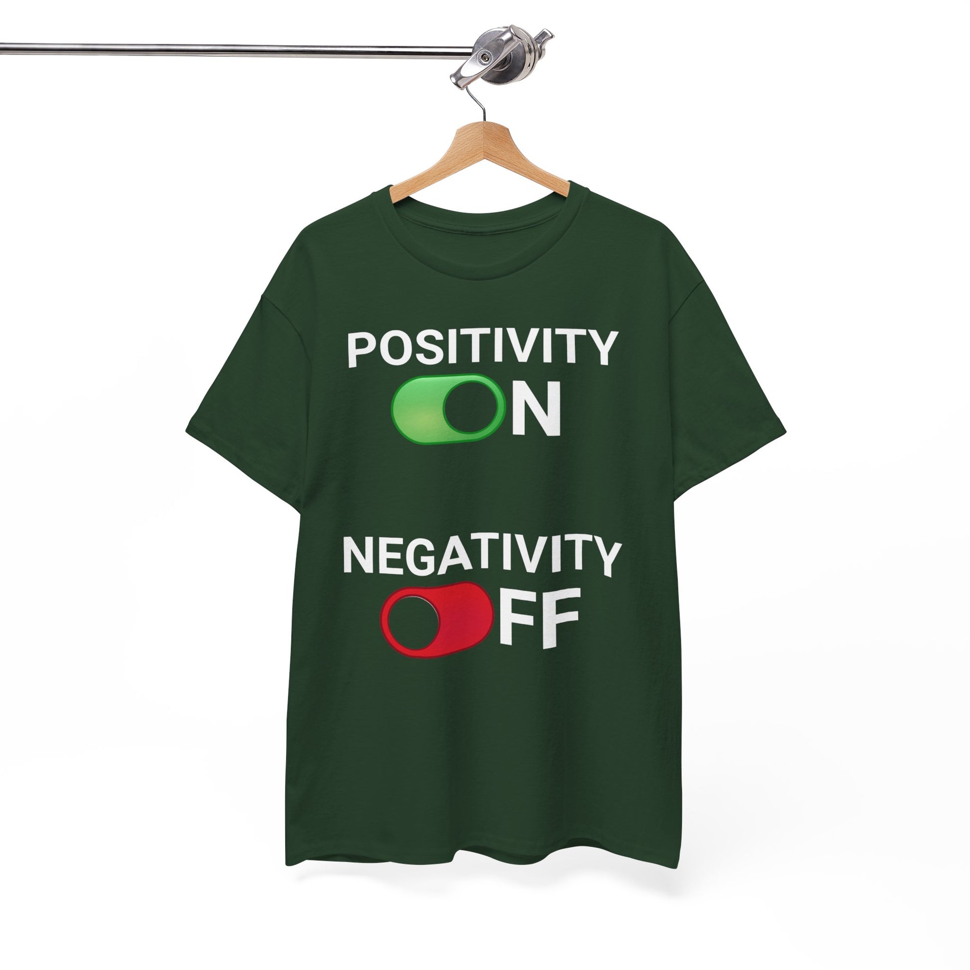 Stay positive and spread good vibes with this Unisex Heavy Cotton Tee. The design promotes positivity and turning off negativity, making it a perfect addition to anyone's wardrobe. Ideal for those who value positive energy and mindfulness, this tee is great for everyday wear, casual outings, or as a thoughtful gift for loved ones. Perfect for occasions like birthdays, holidays, or just when you need a boost of positivity.