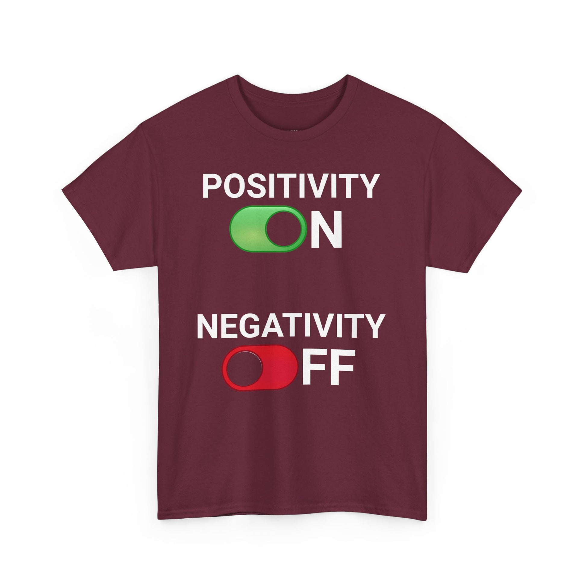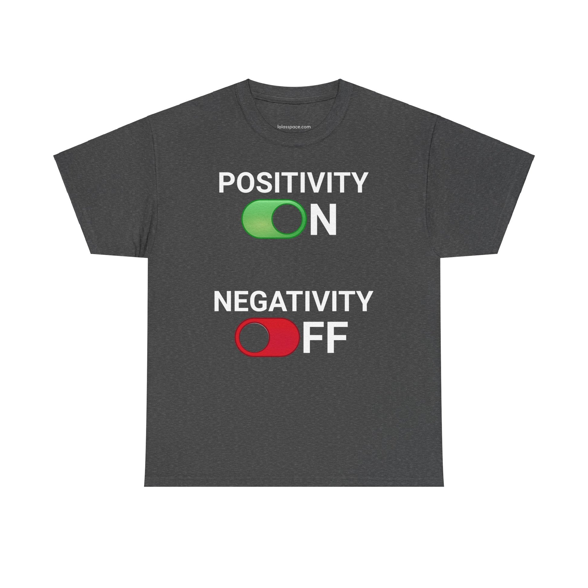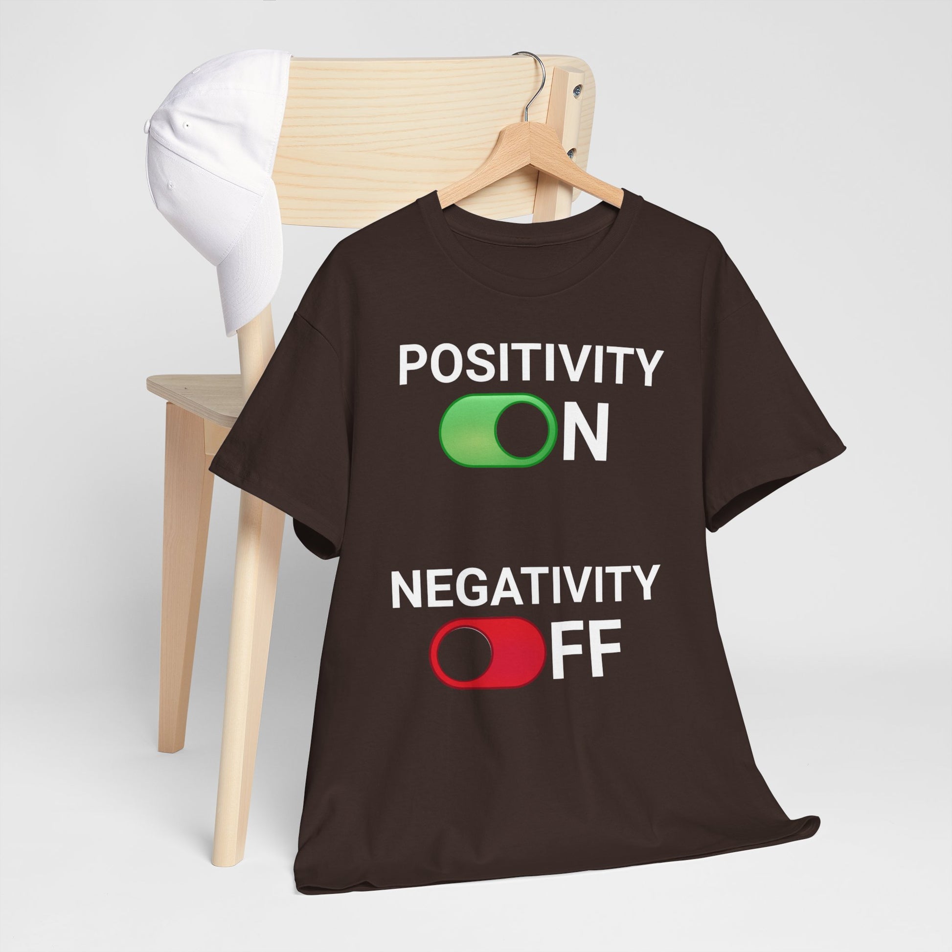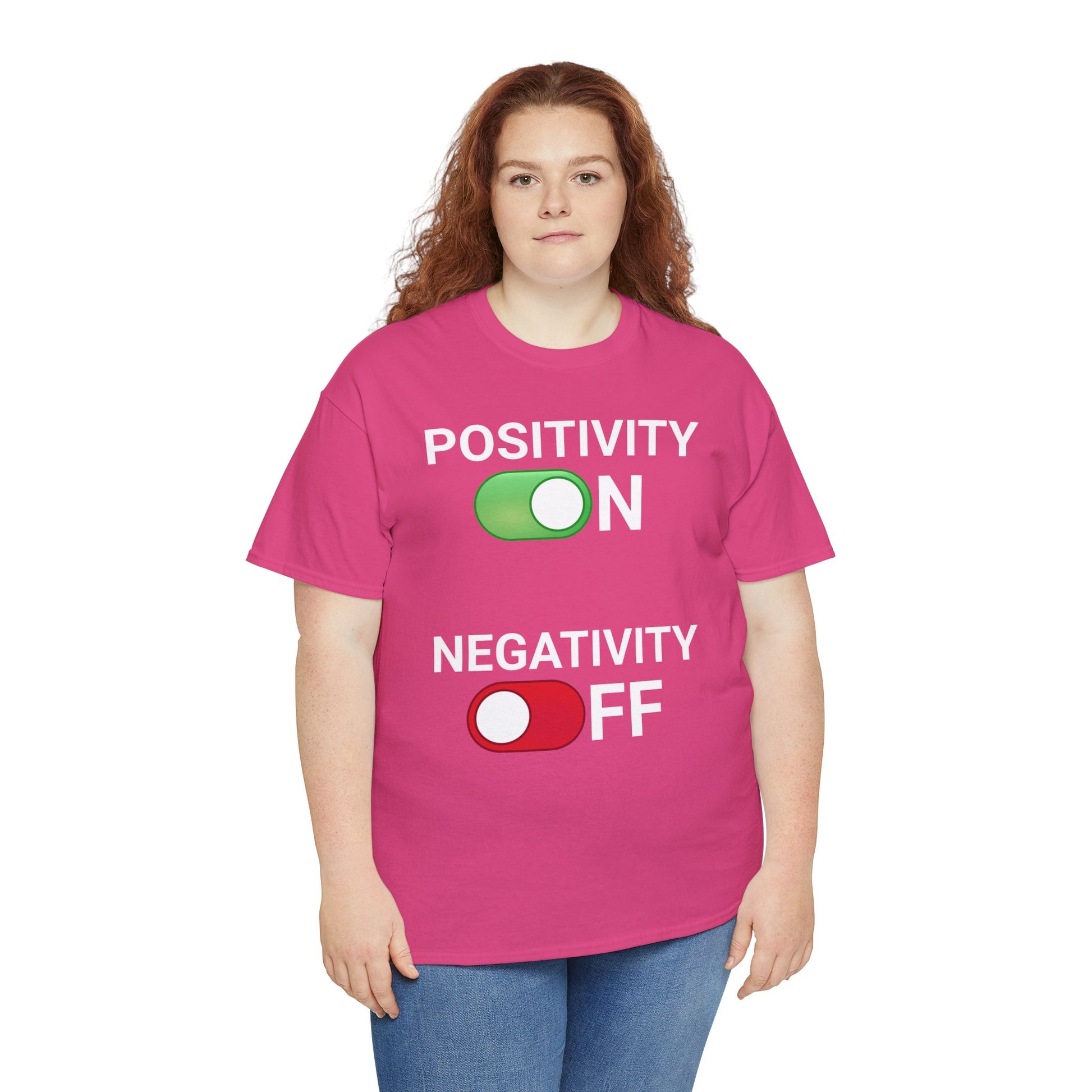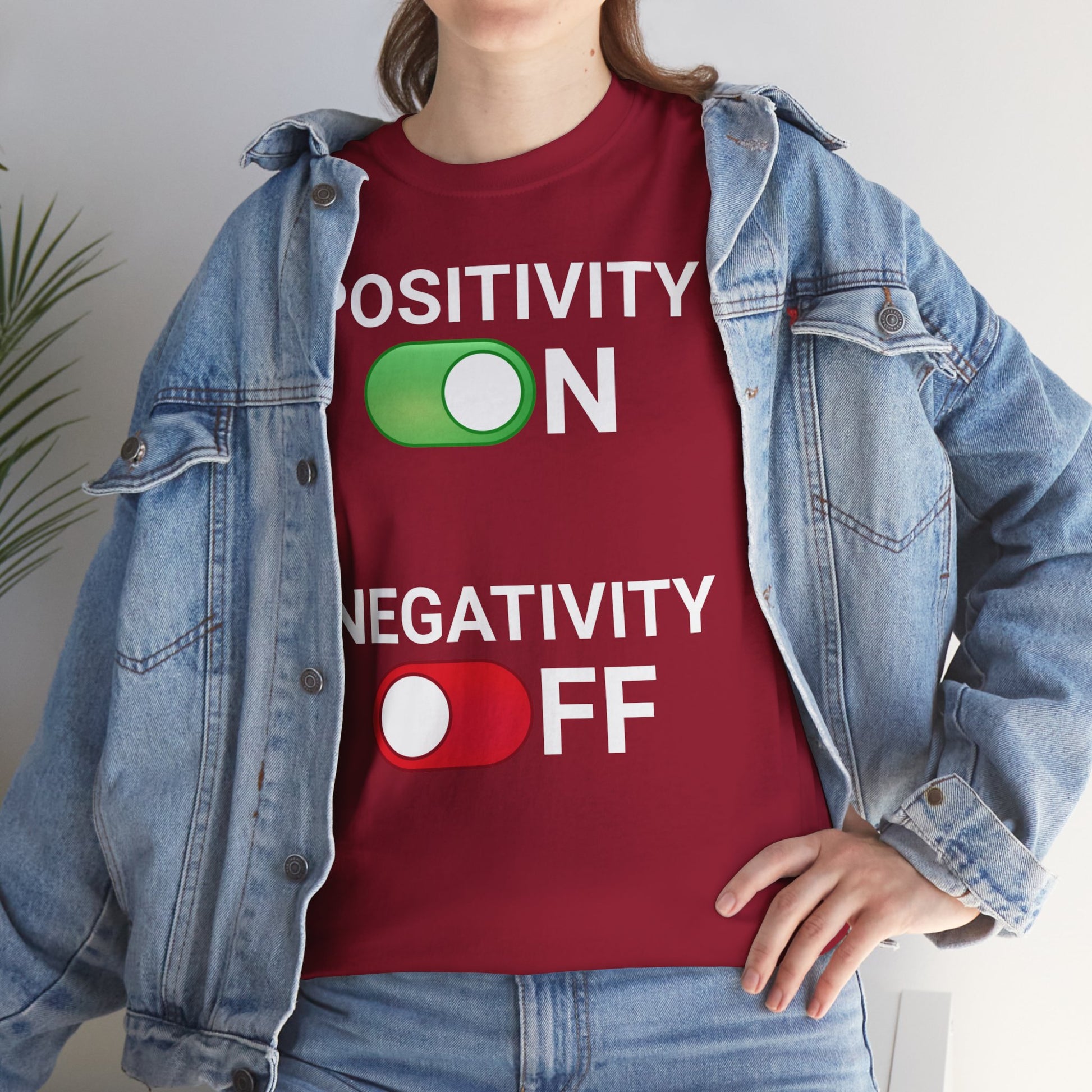 Stay positive and spread good vibes with this Unisex Heavy Cotton Tee. The design promotes positivity and turning off negativity, making it a perfect addition to anyone's wardrobe. Ideal for those who value positive energy and mindfulness, this tee is great for everyday wear, casual outings, or as a thoughtful gift for loved ones. Perfect for occasions like birthdays, holidays, or just when you need a boost of positivity.