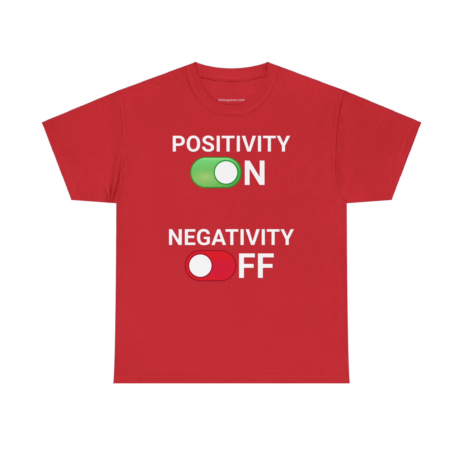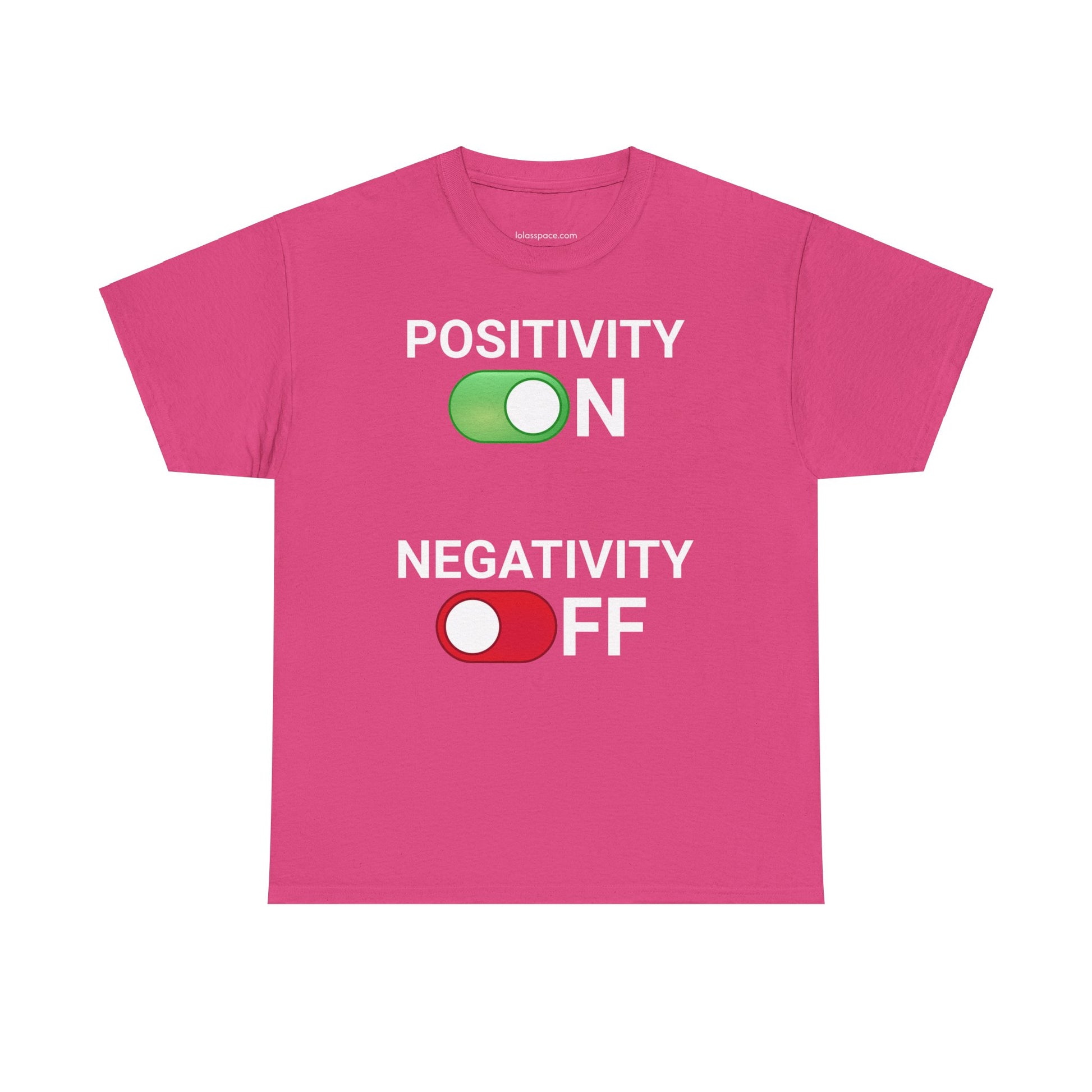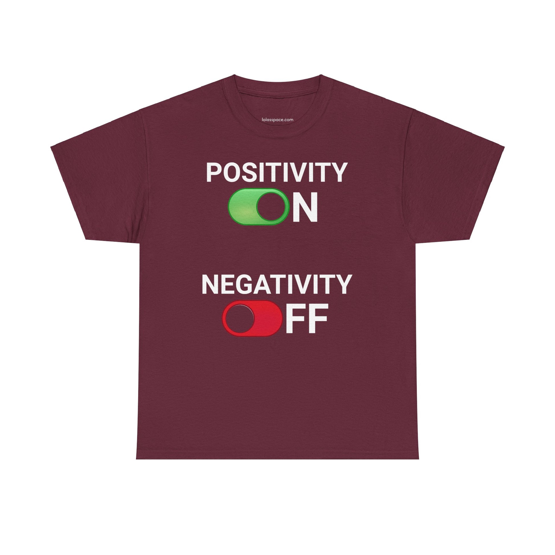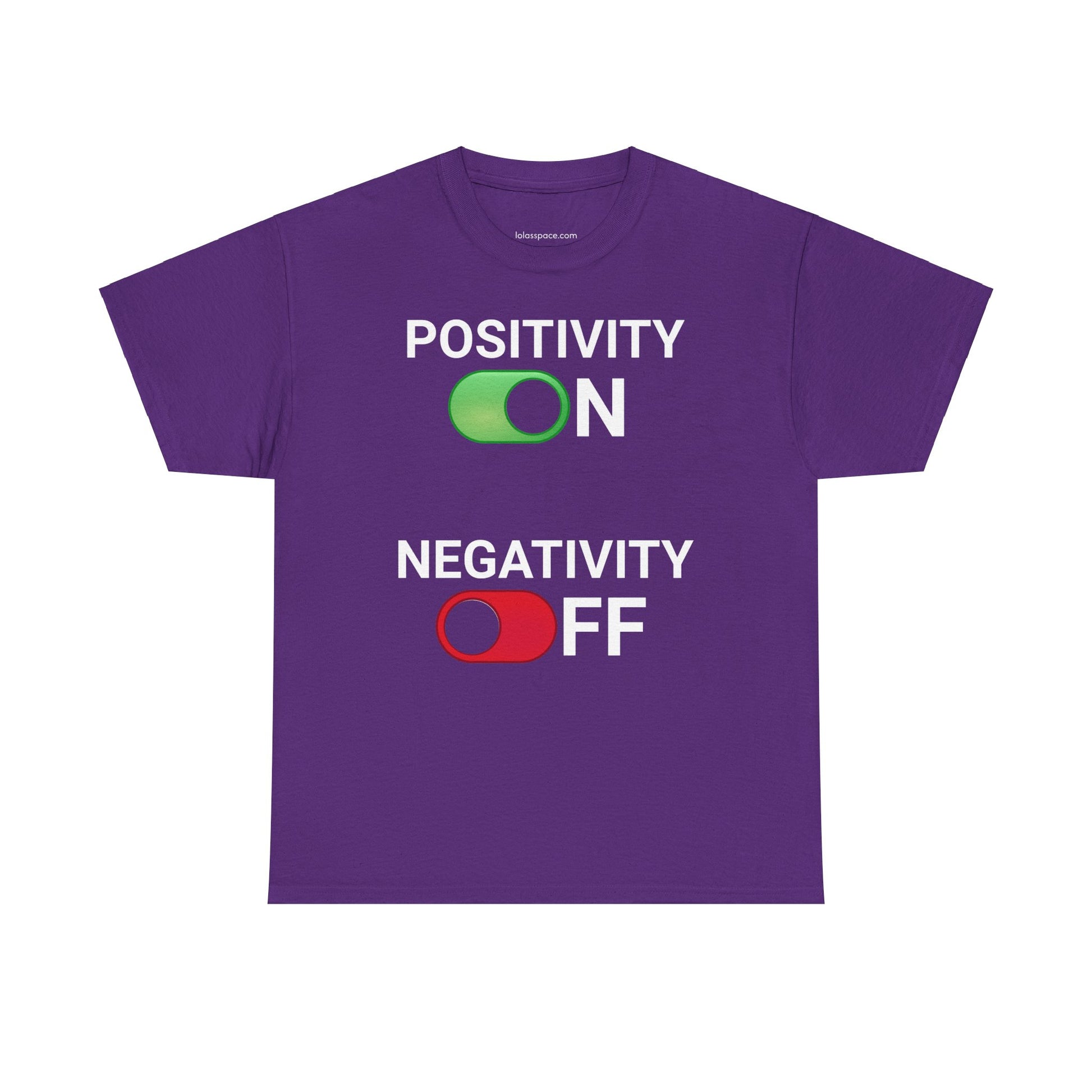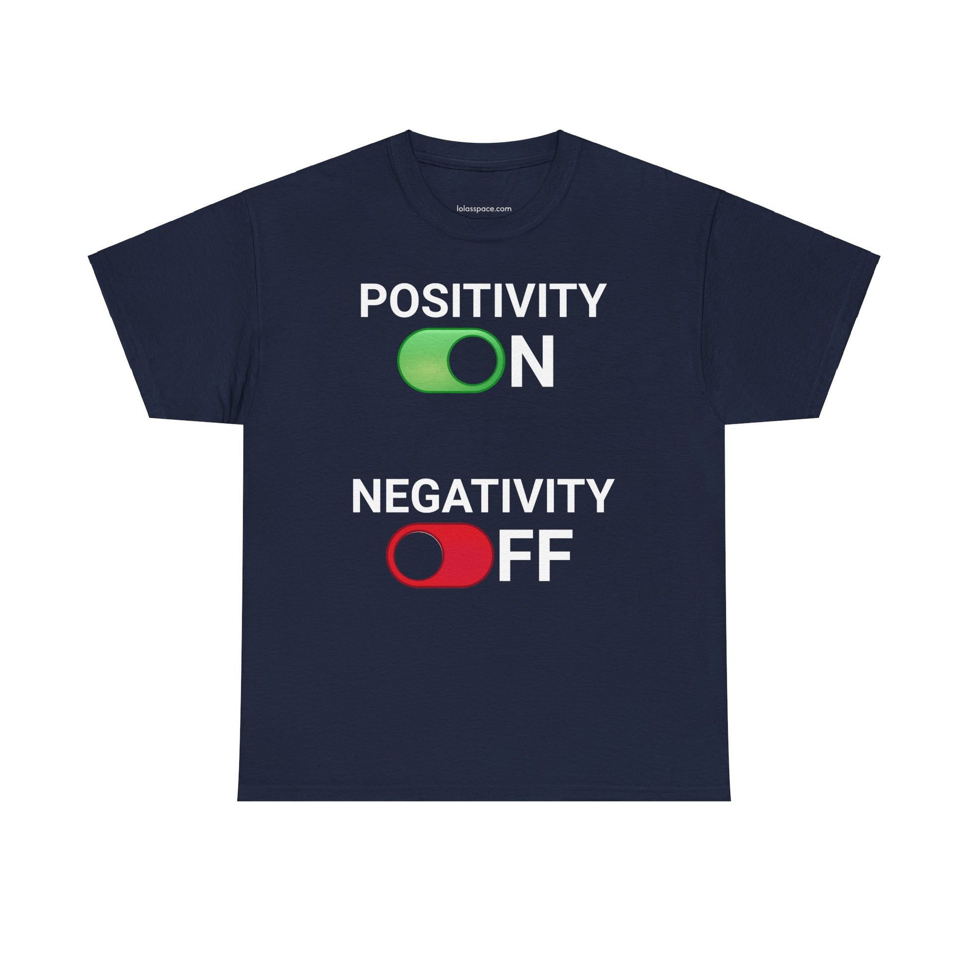 Stay positive and spread good vibes with this Unisex Heavy Cotton Tee. The design promotes positivity and turning off negativity, making it a perfect addition to anyone's wardrobe. Ideal for those who value positive energy and mindfulness, this tee is great for everyday wear, casual outings, or as a thoughtful gift for loved ones. Perfect for occasions like birthdays, holidays, or just when you need a boost of positivity.