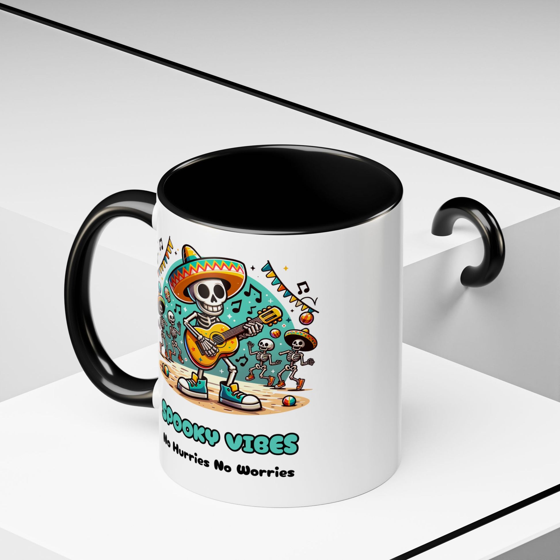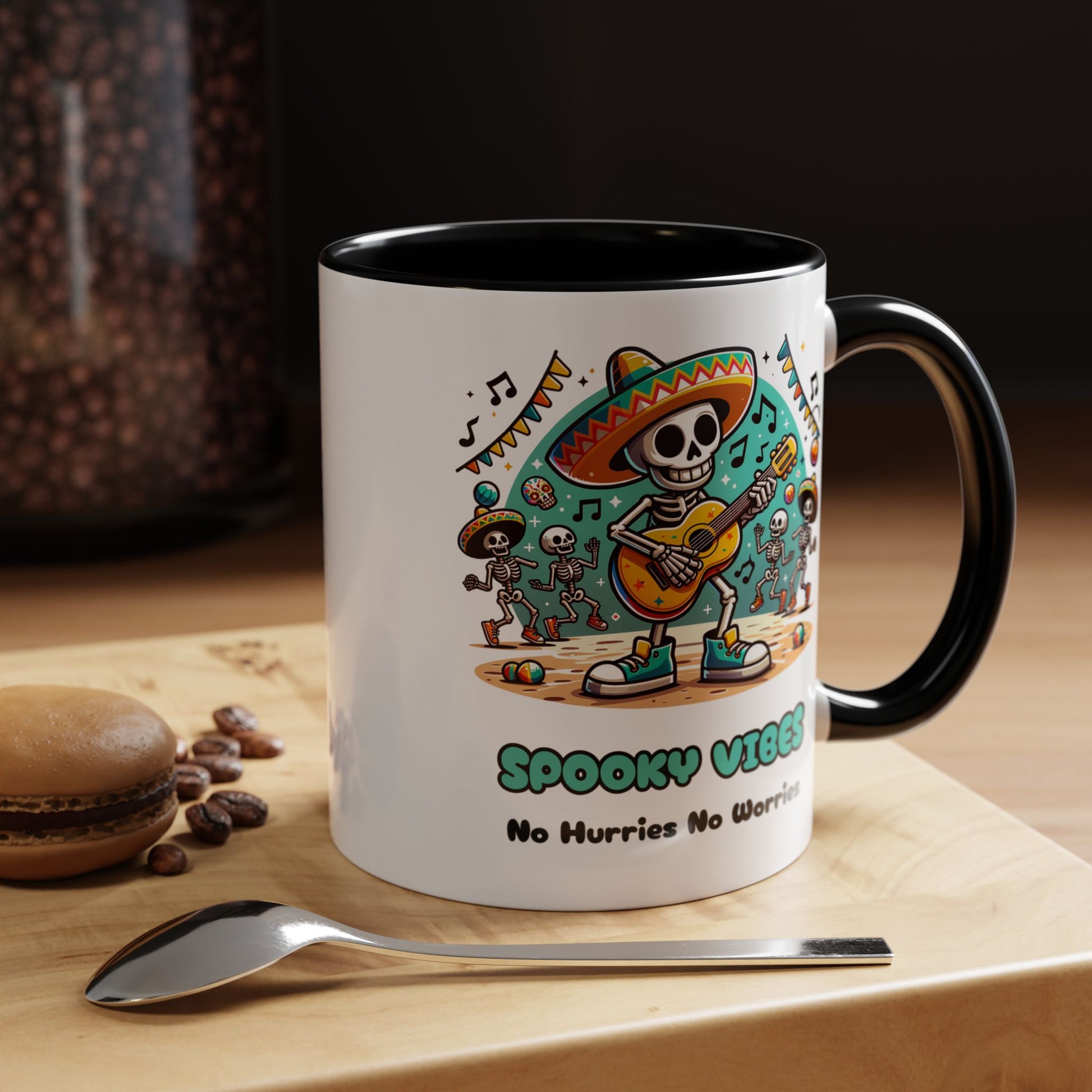 Spooky Vibes Mug with a vibrant design and color contrast. Perfect for Halloween enthusiasts and those who love all things spooky. This mug adds a touch of spookiness to your morning coffee or tea ritual, making it ideal for Halloween celebrations and everyday use.