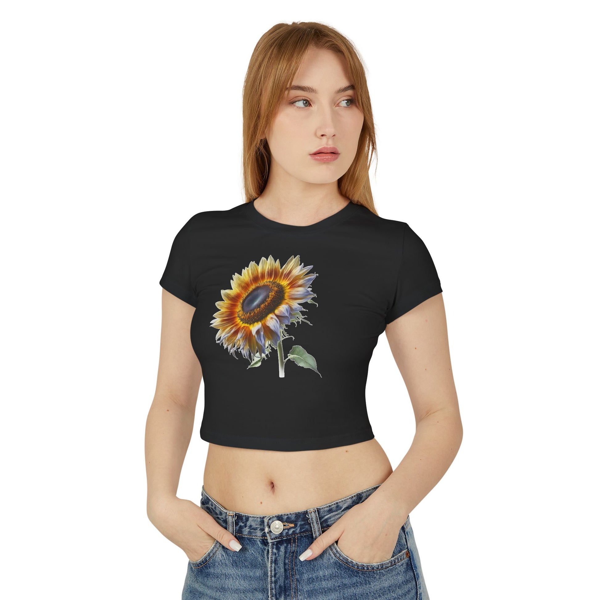 This Sunflower Women's Tee exudes a cheerful, summery vibe perfect for casual days and outdoor gatherings. It is ideal for women who love nature-inspired designs and want a slim-fitting tee that flatters their figure. It's great for wearing during spring and summer, to picnics, garden parties, or simply for a stroll in the park.