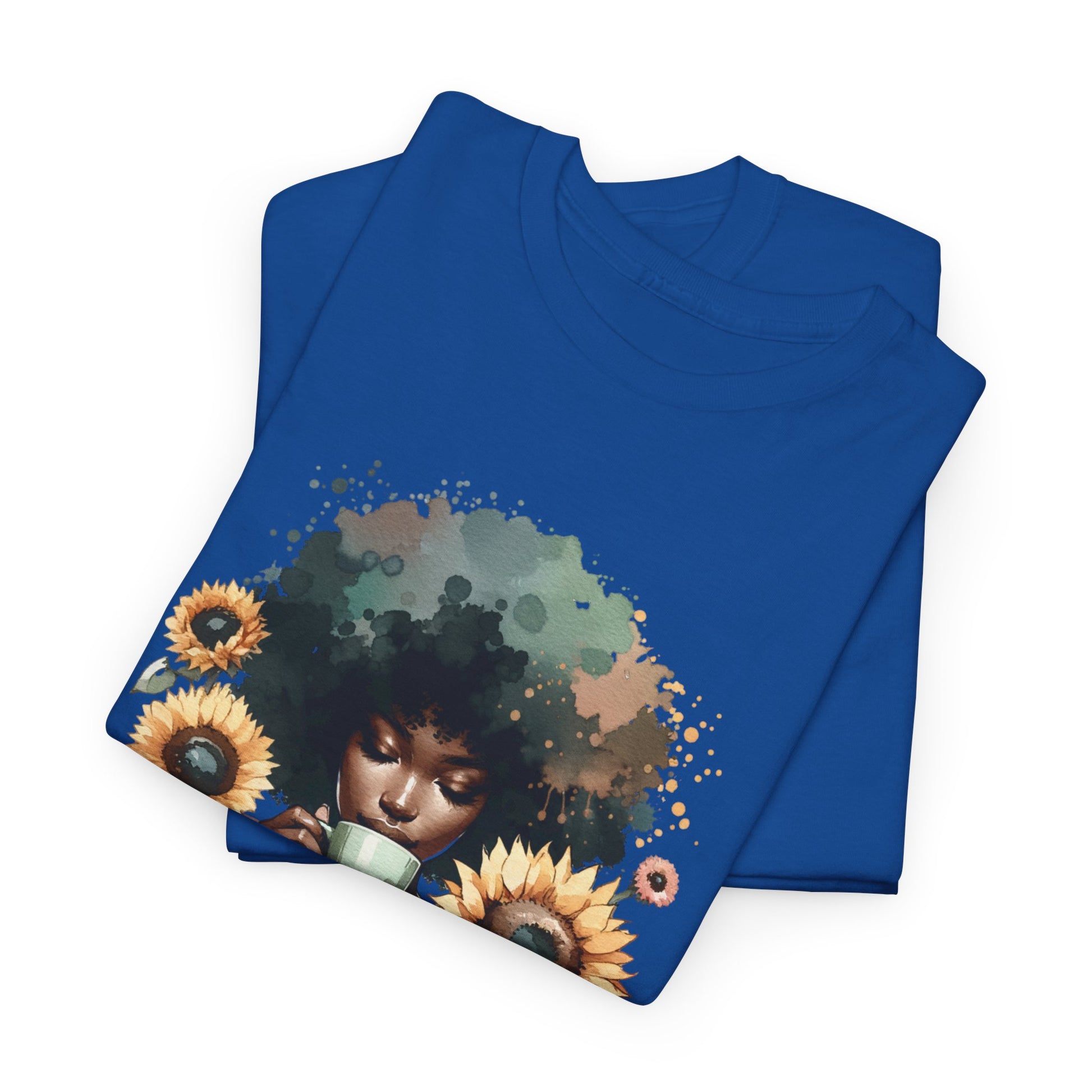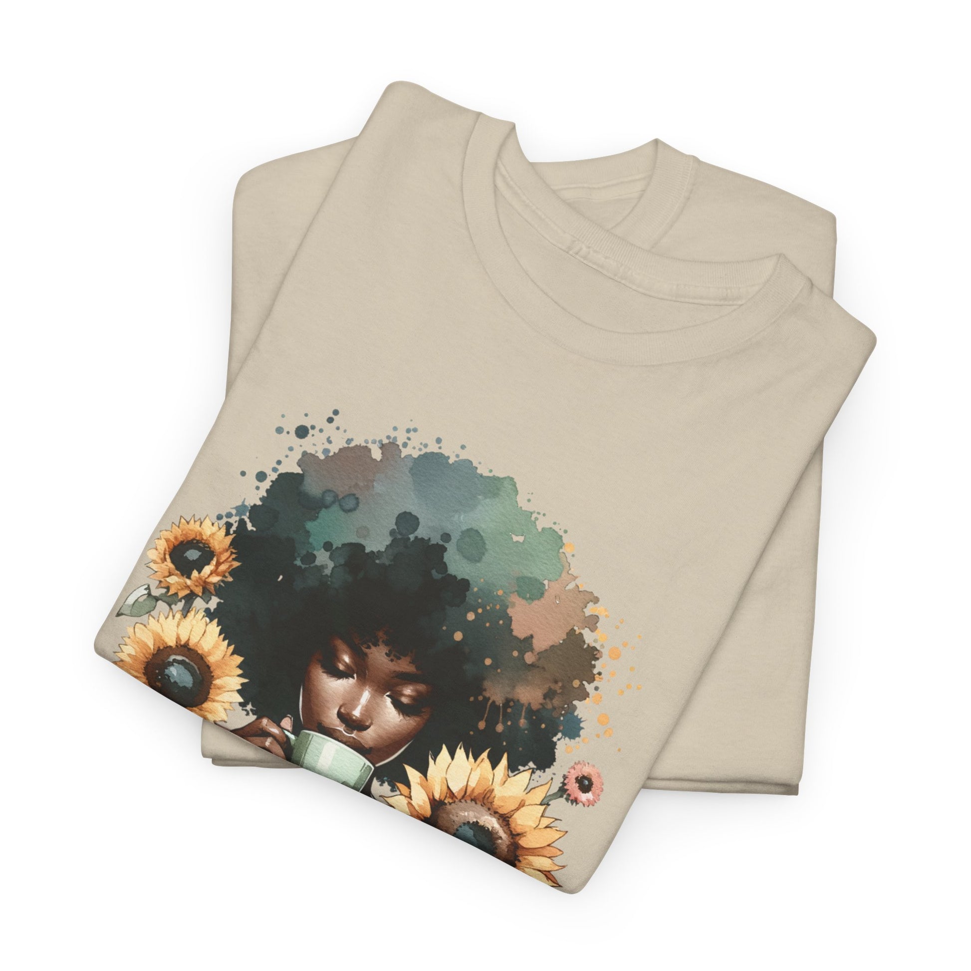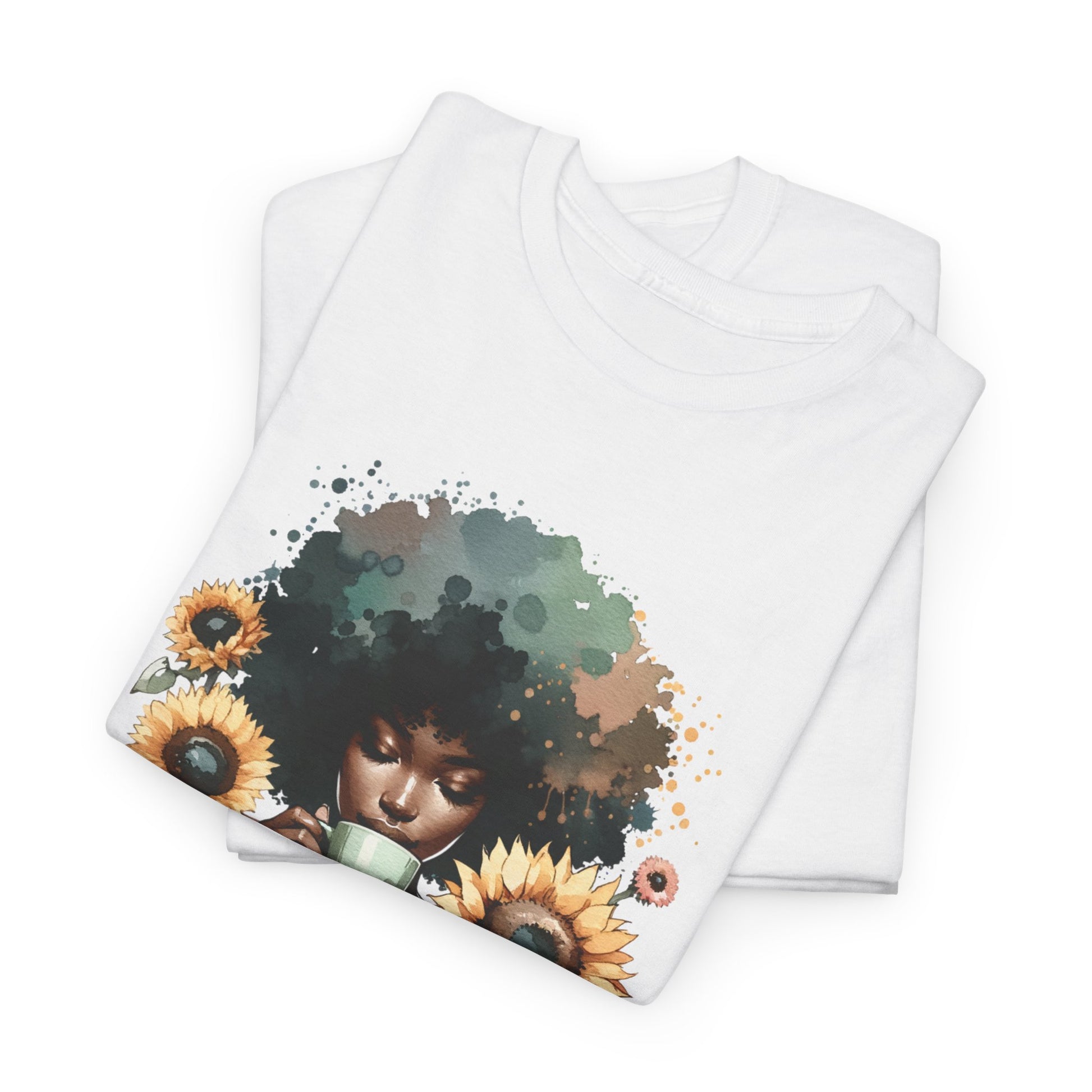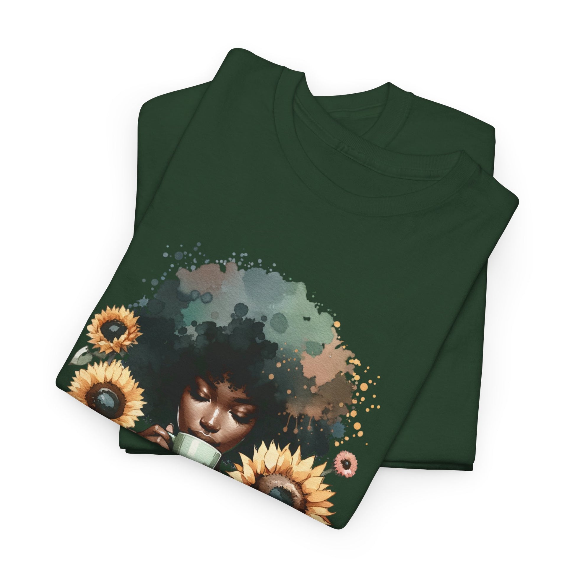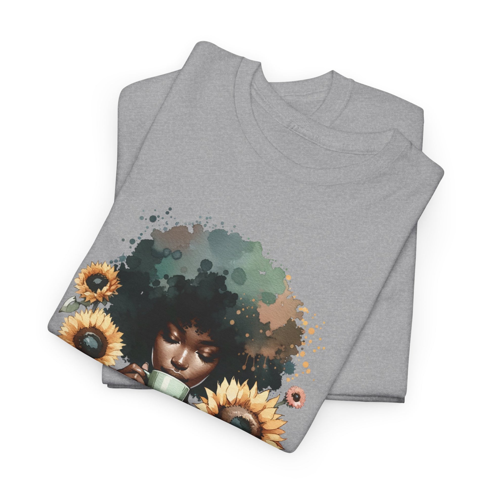 This Sunflowers And Coffee T-Shirt captures the essence of a sunny morning with a warm cup of coffee and beautiful sunflowers. The design exudes a cozy and cheerful vibe, making it perfect for everyday wear or as a thoughtful gift for coffee lovers and nature enthusiasts. Ideal for casual outings, coffee dates, or just lounging at home.