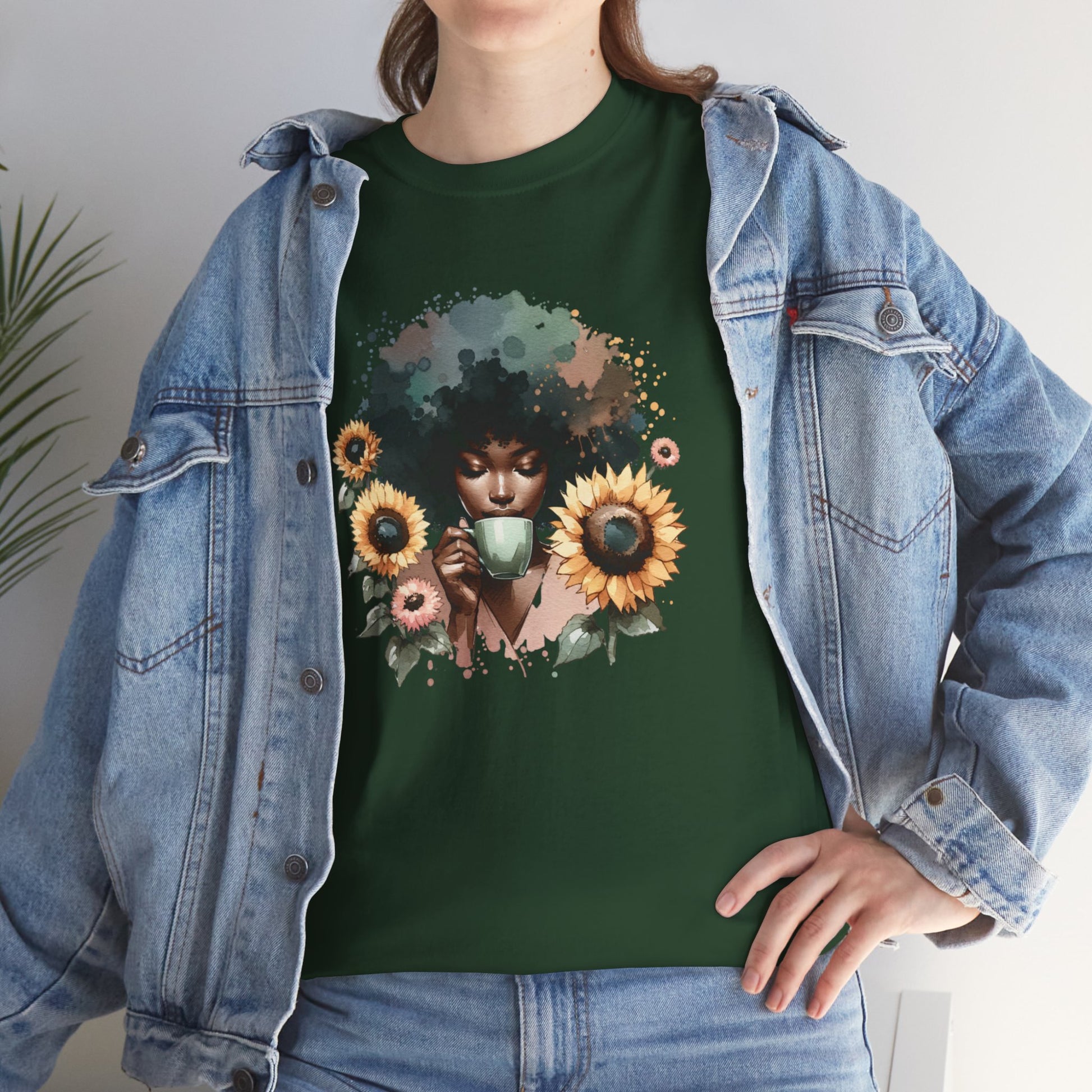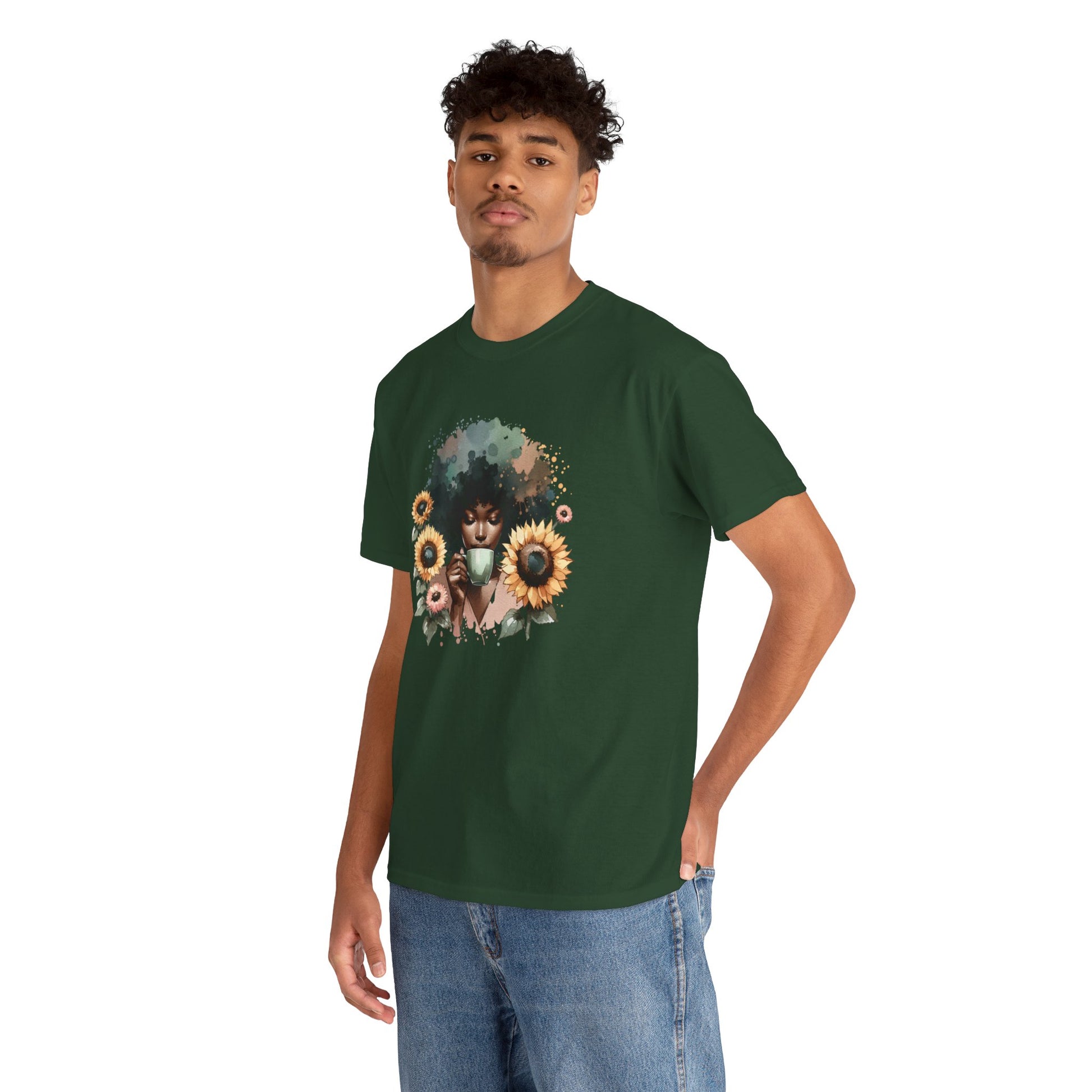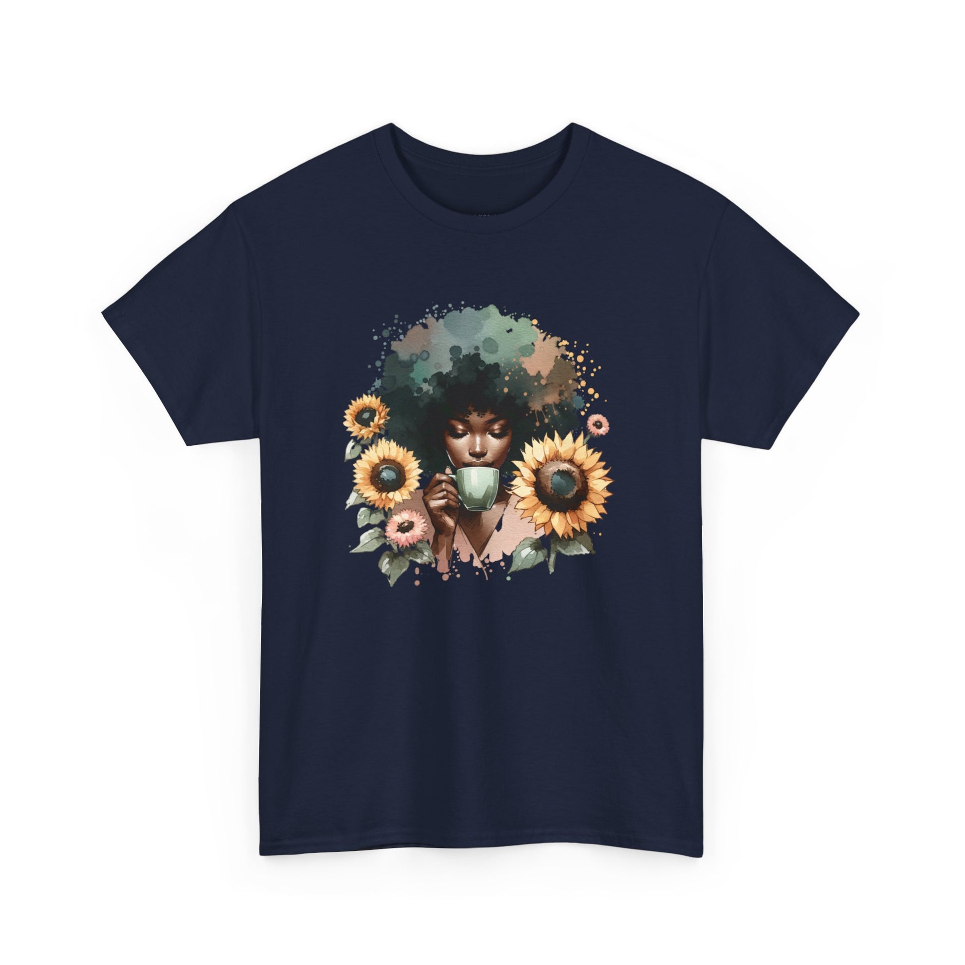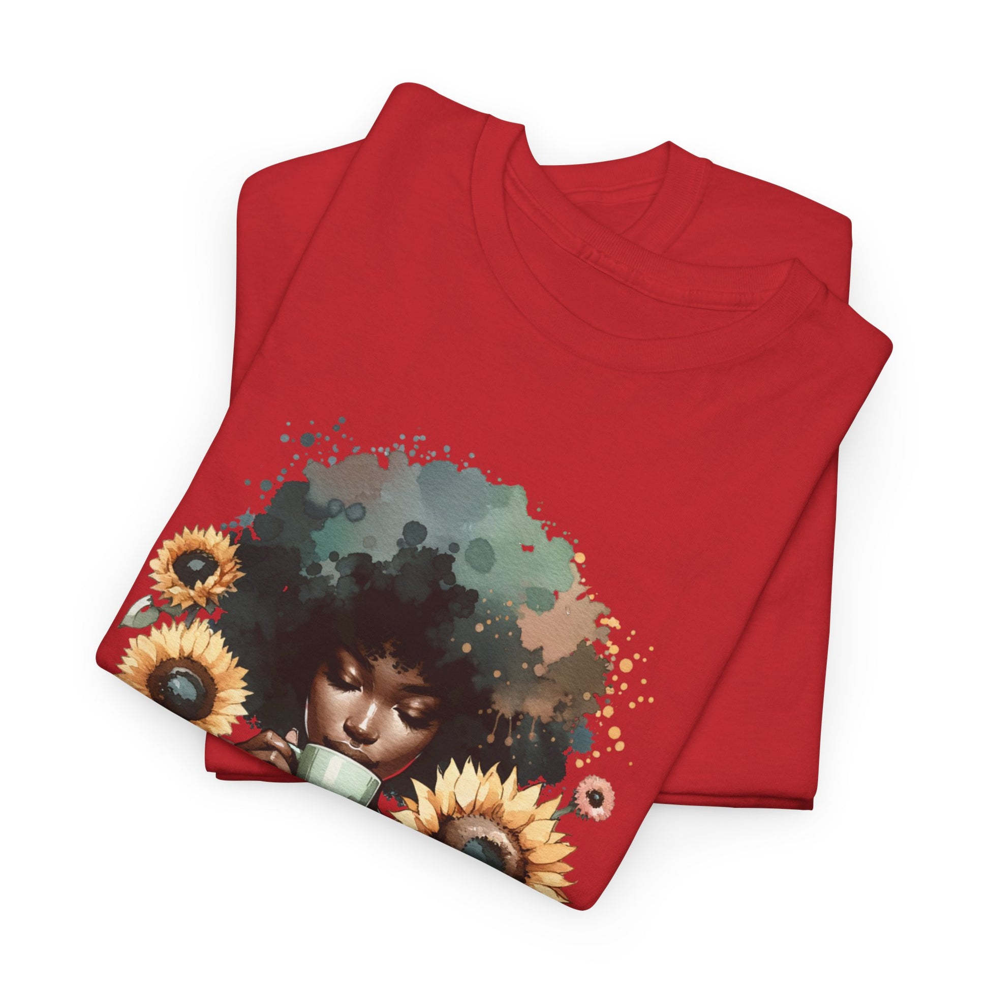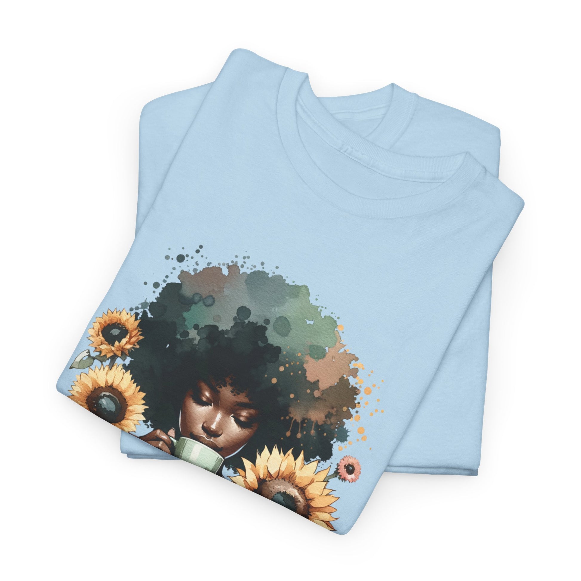 This Sunflowers And Coffee T-Shirt captures the essence of a sunny morning with a warm cup of coffee and beautiful sunflowers. The design exudes a cozy and cheerful vibe, making it perfect for everyday wear or as a thoughtful gift for coffee lovers and nature enthusiasts. Ideal for casual outings, coffee dates, or just lounging at home.