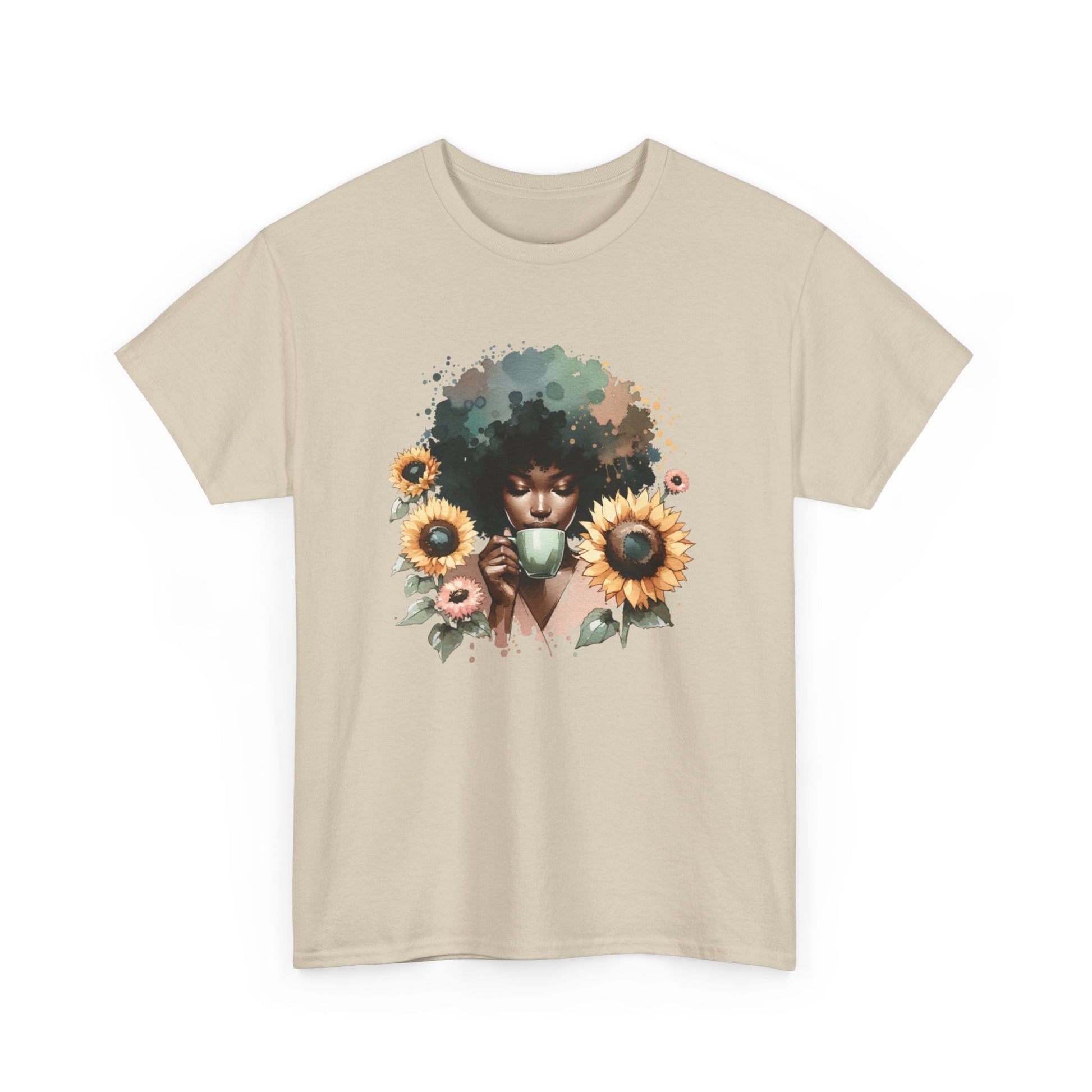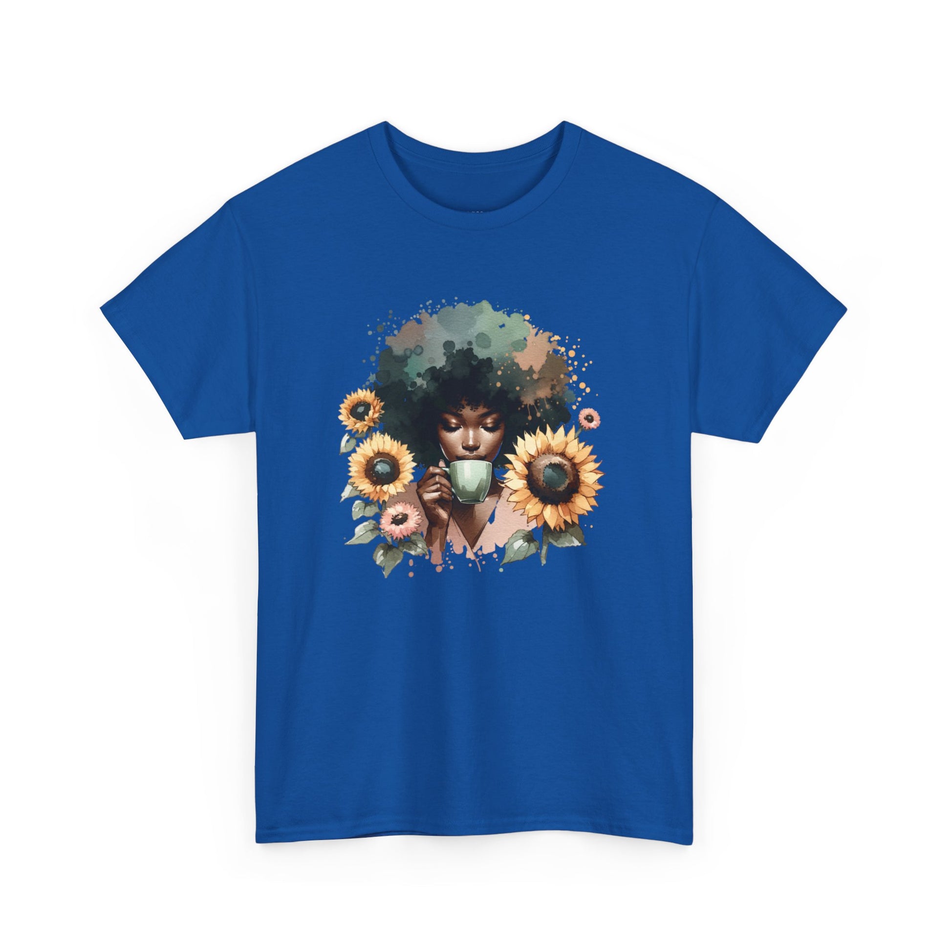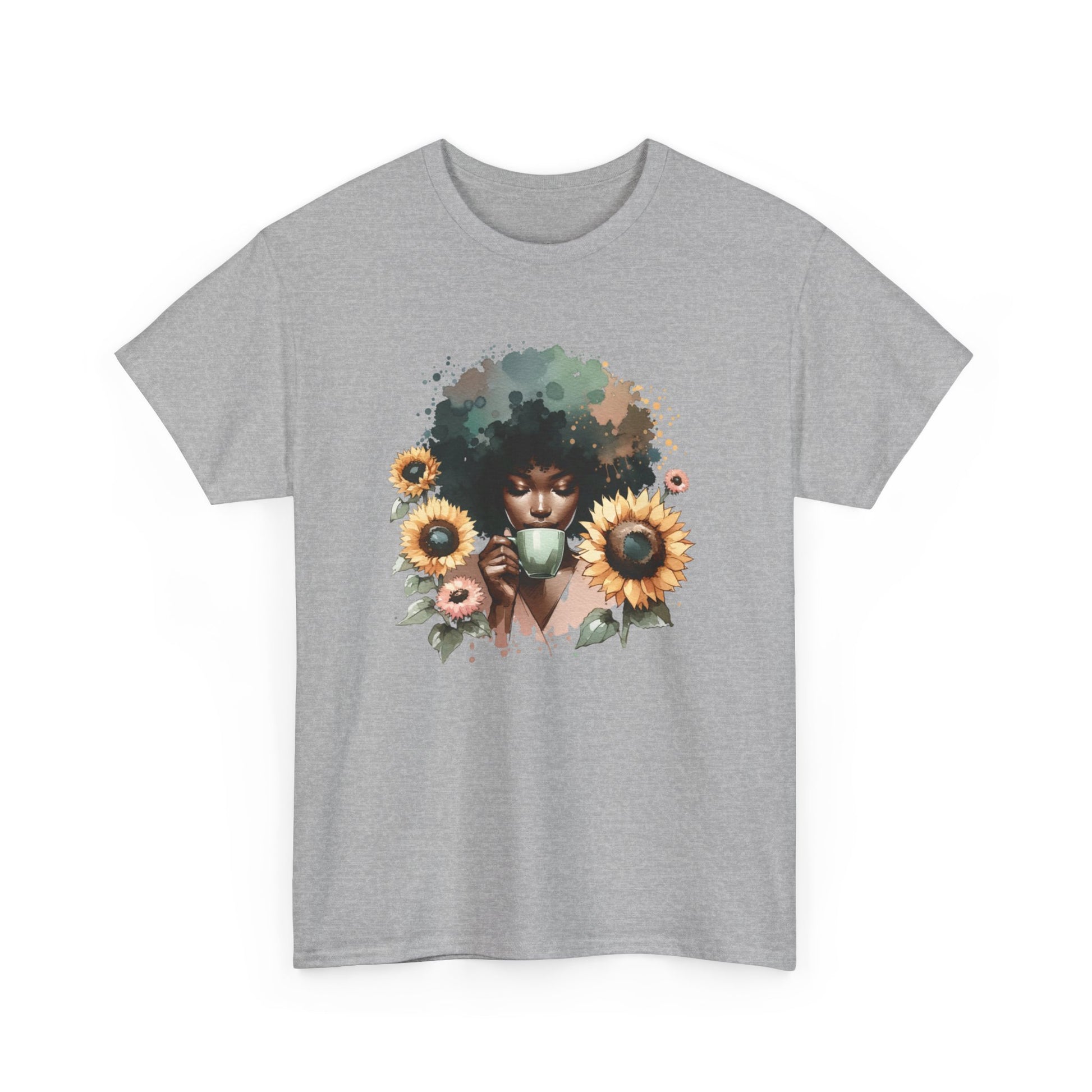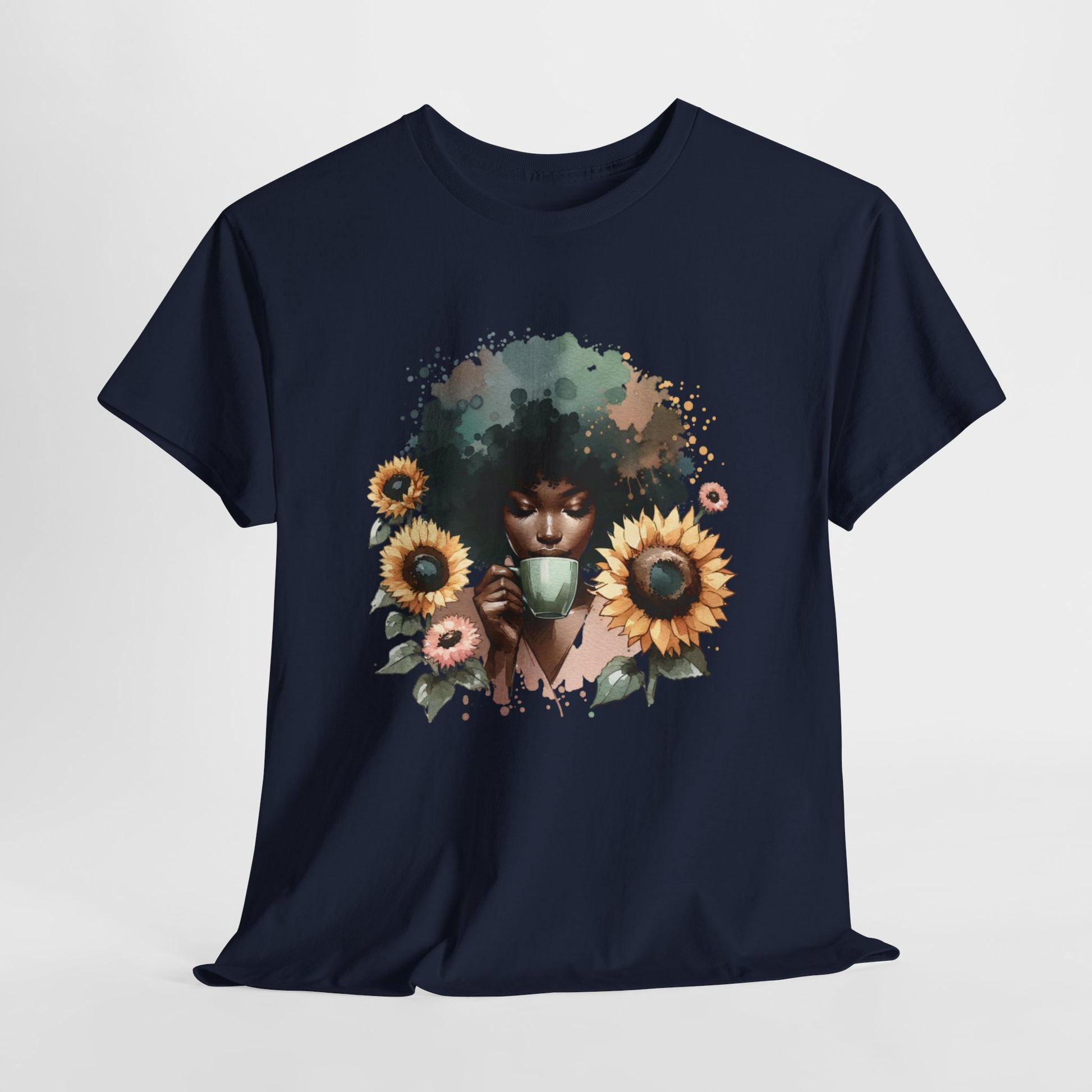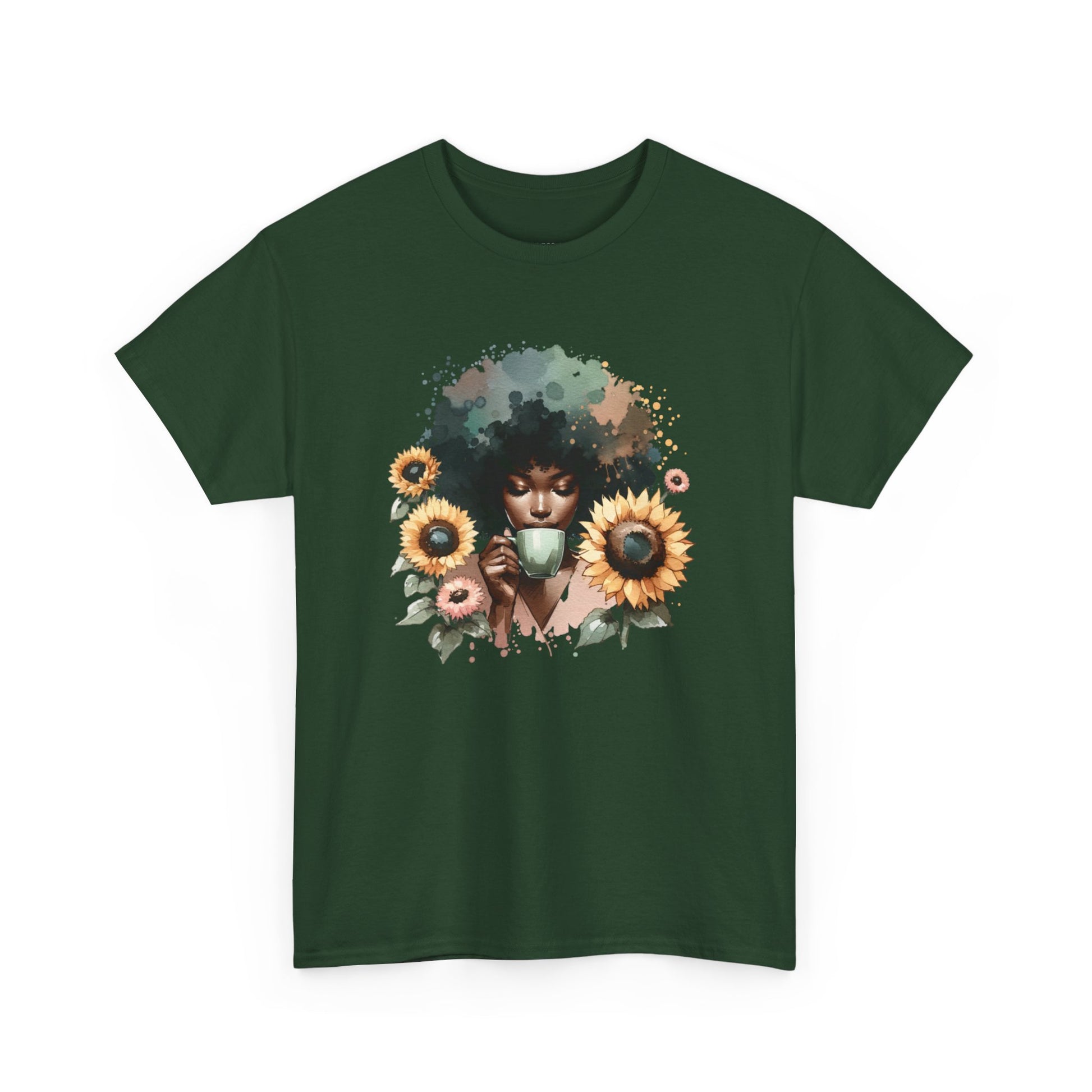 This Sunflowers And Coffee T-Shirt captures the essence of a sunny morning with a warm cup of coffee and beautiful sunflowers. The design exudes a cozy and cheerful vibe, making it perfect for everyday wear or as a thoughtful gift for coffee lovers and nature enthusiasts. Ideal for casual outings, coffee dates, or just lounging at home.