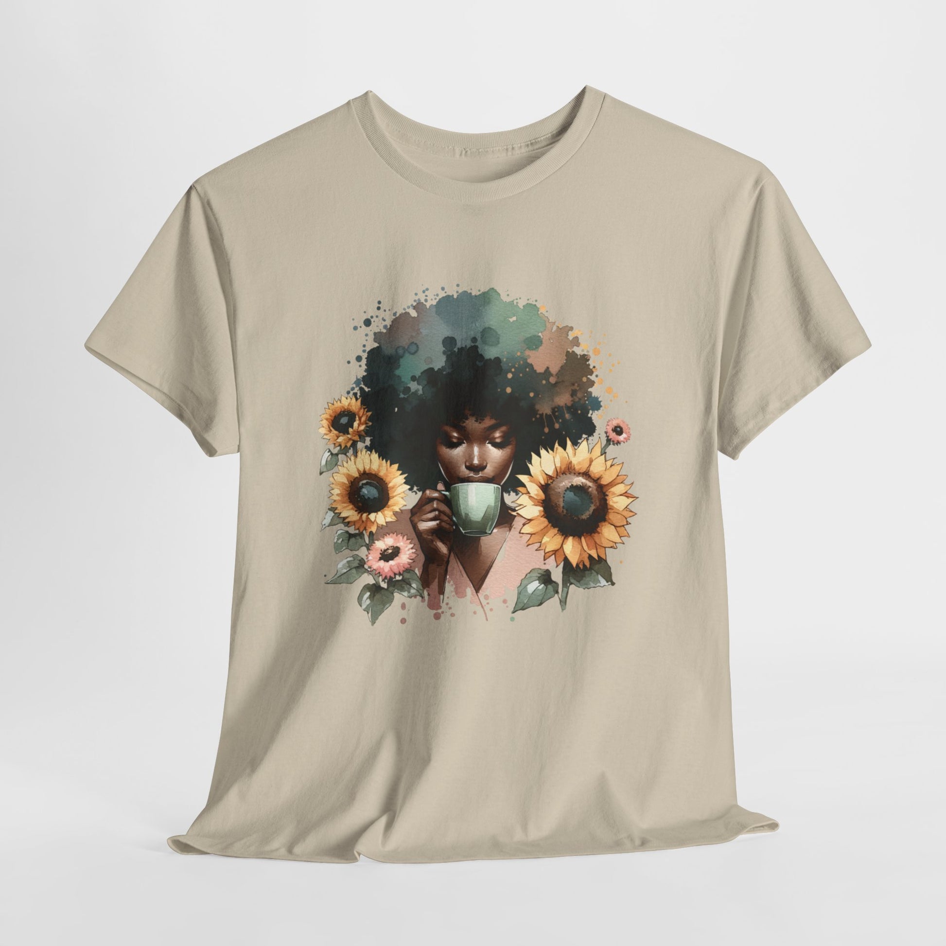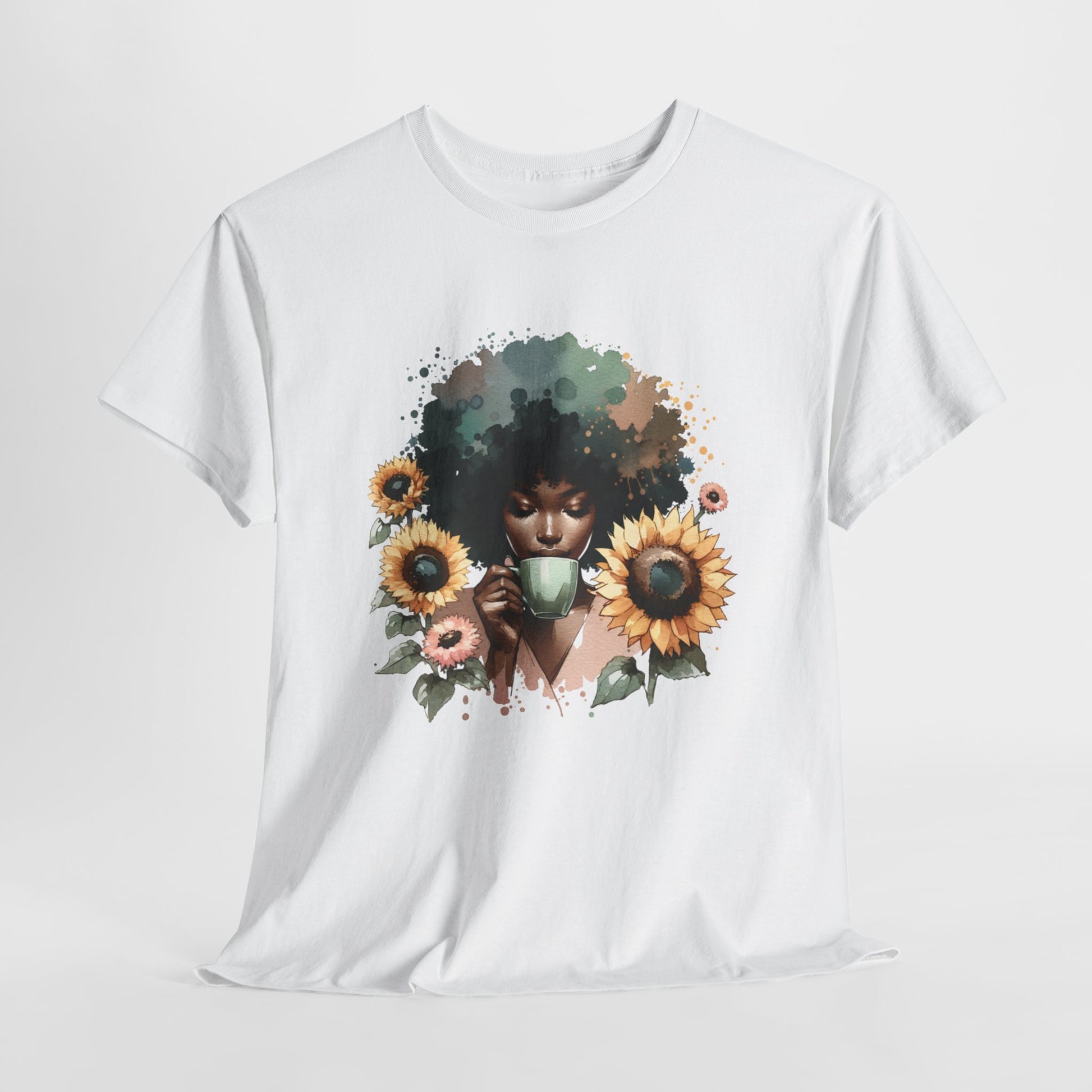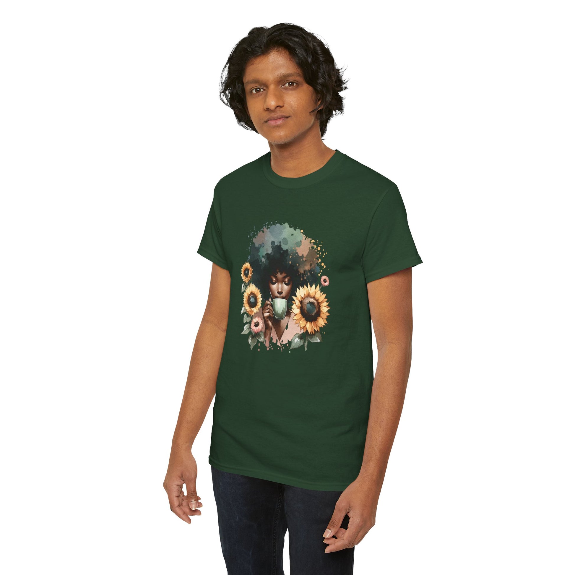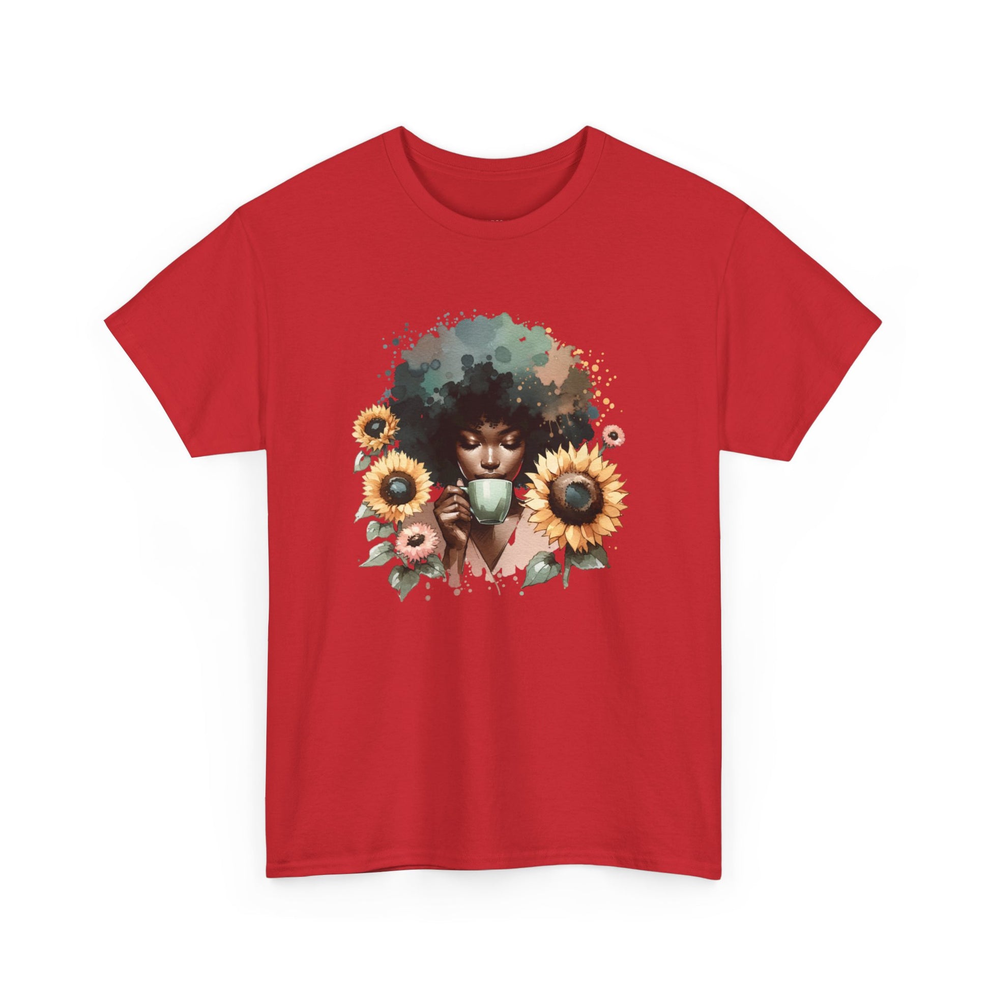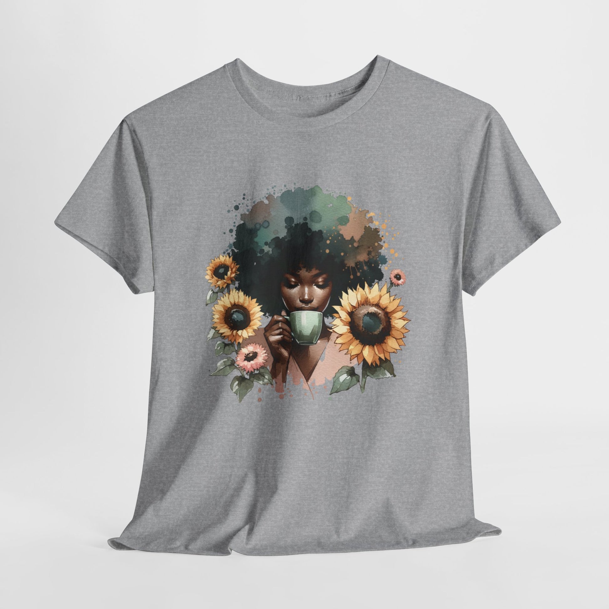 This Sunflowers And Coffee T-Shirt captures the essence of a sunny morning with a warm cup of coffee and beautiful sunflowers. The design exudes a cozy and cheerful vibe, making it perfect for everyday wear or as a thoughtful gift for coffee lovers and nature enthusiasts. Ideal for casual outings, coffee dates, or just lounging at home.