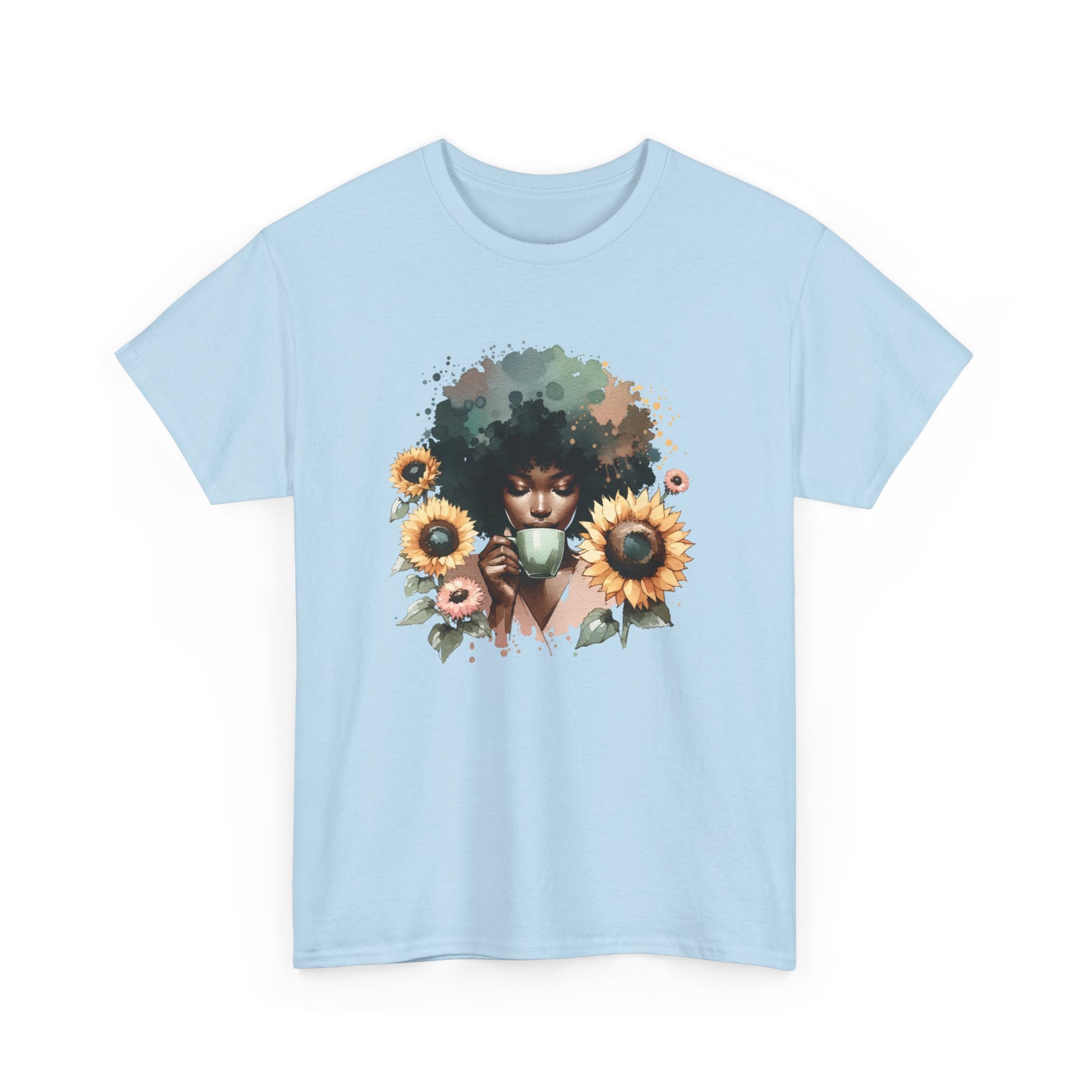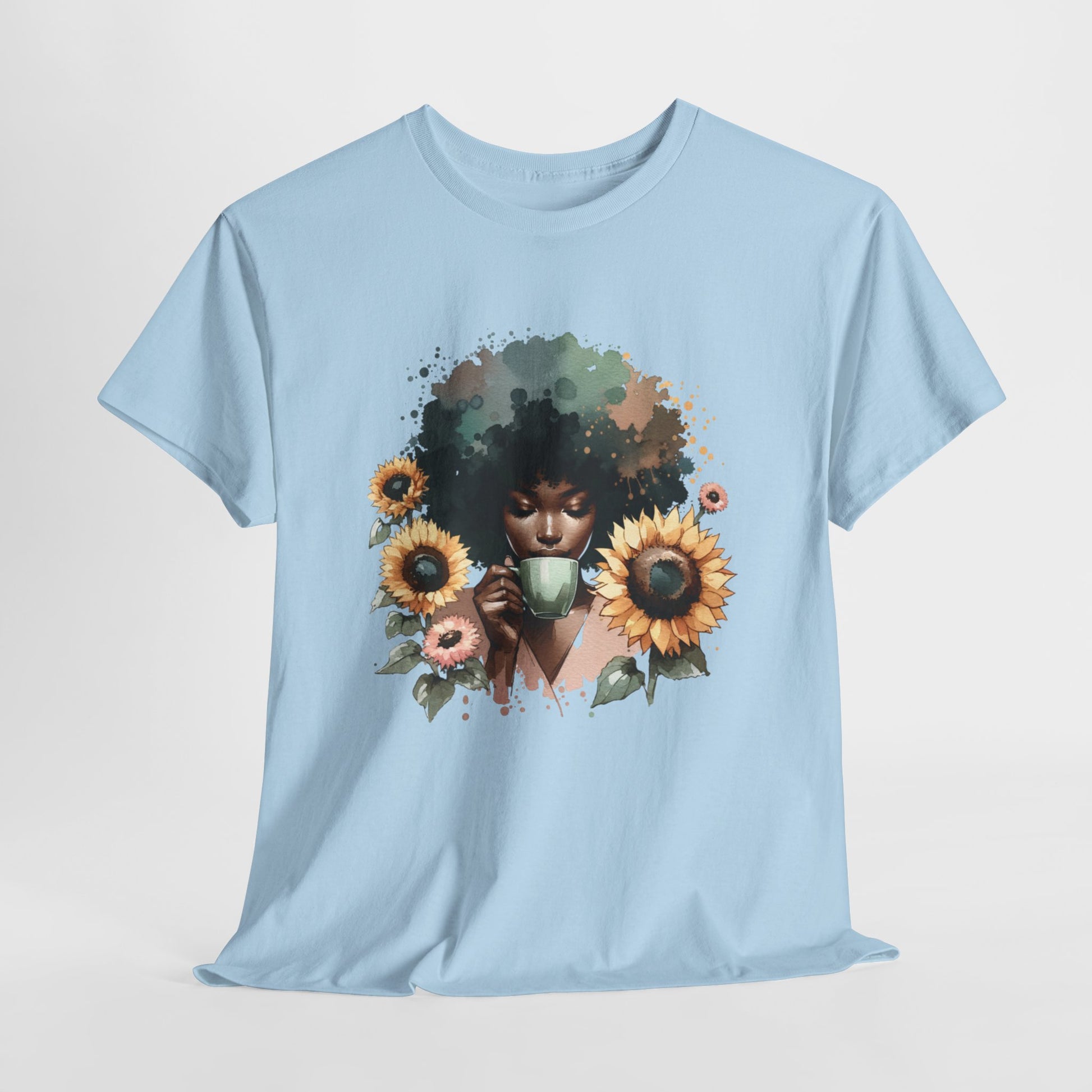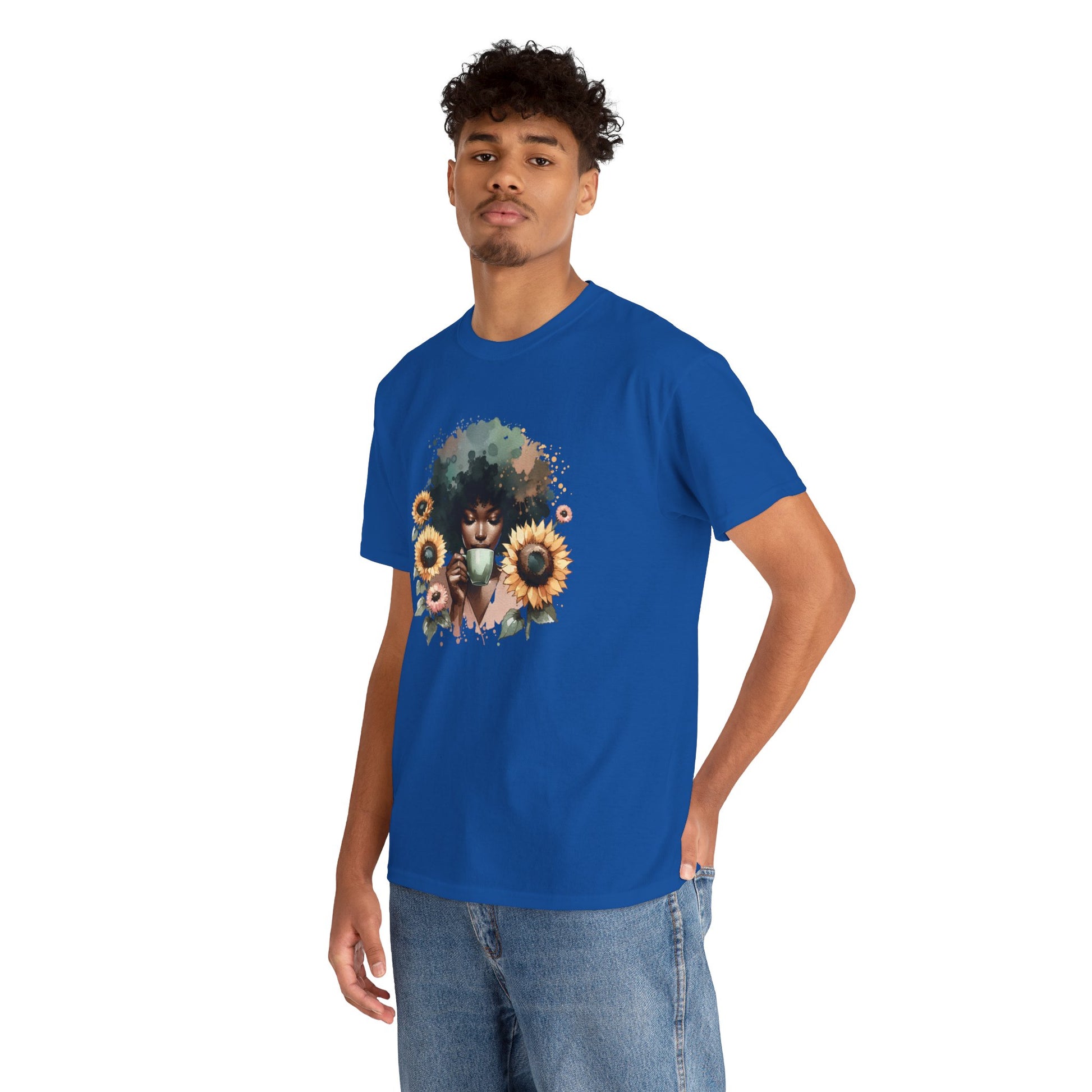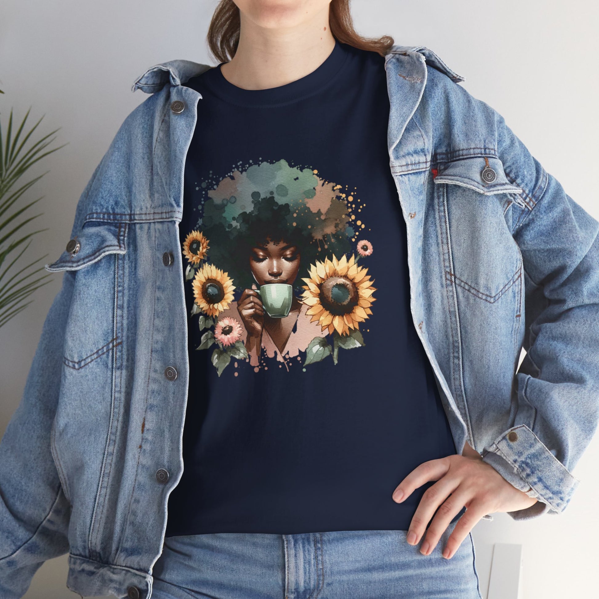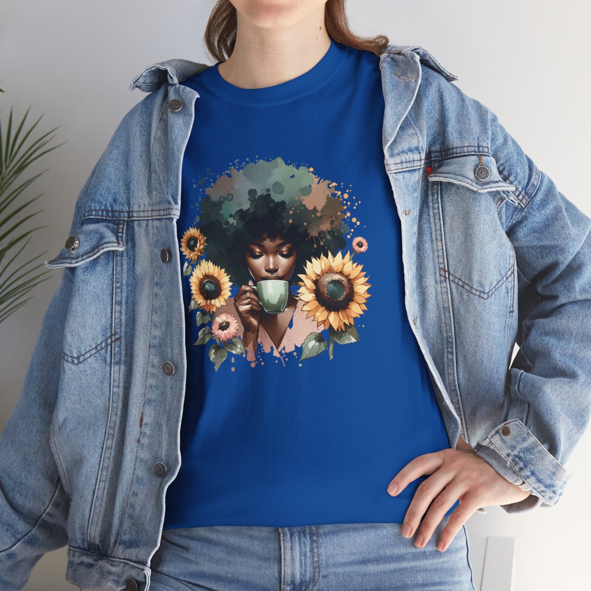 This Sunflowers And Coffee T-Shirt captures the essence of a sunny morning with a warm cup of coffee and beautiful sunflowers. The design exudes a cozy and cheerful vibe, making it perfect for everyday wear or as a thoughtful gift for coffee lovers and nature enthusiasts. Ideal for casual outings, coffee dates, or just lounging at home.