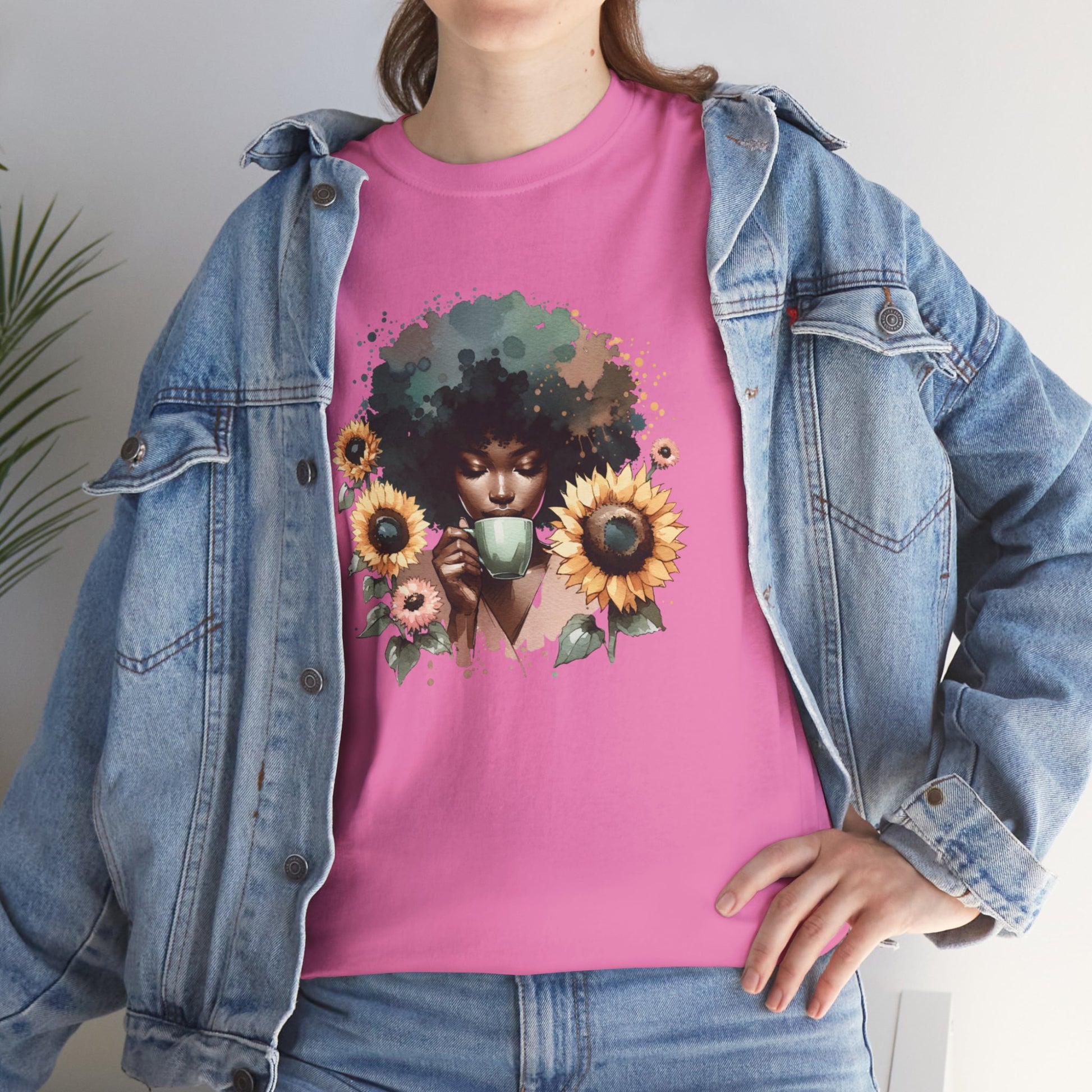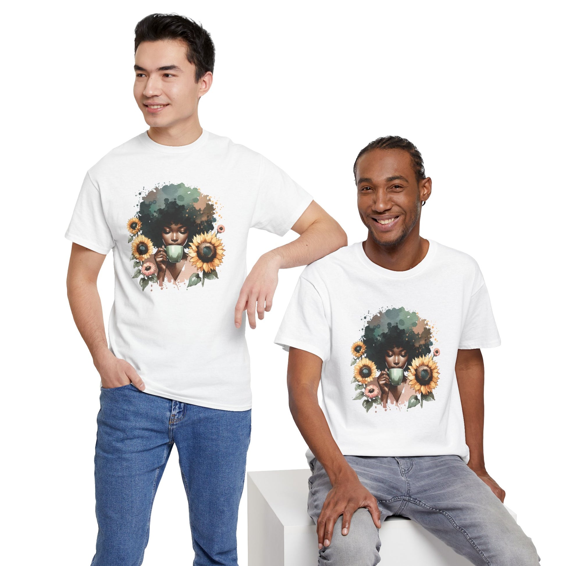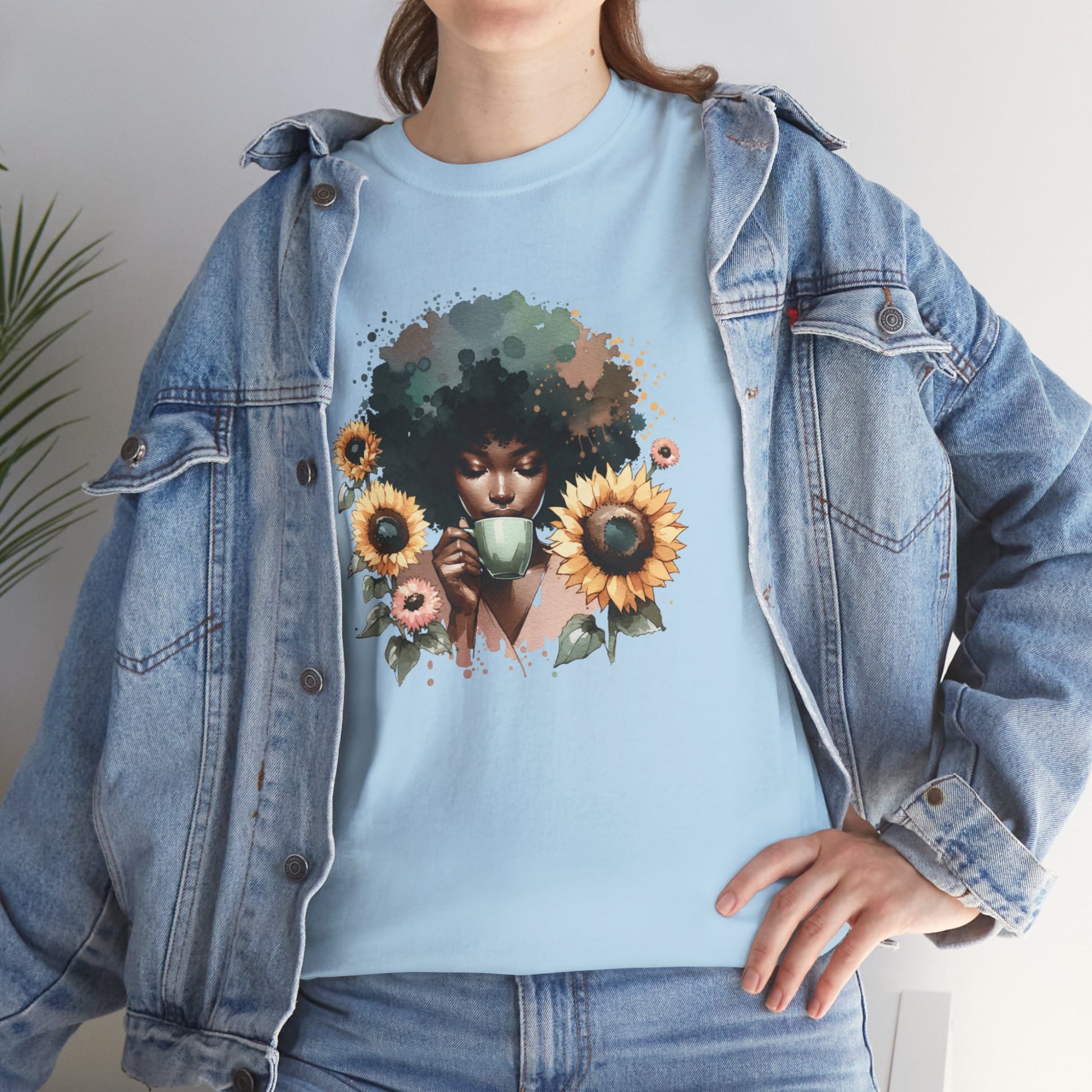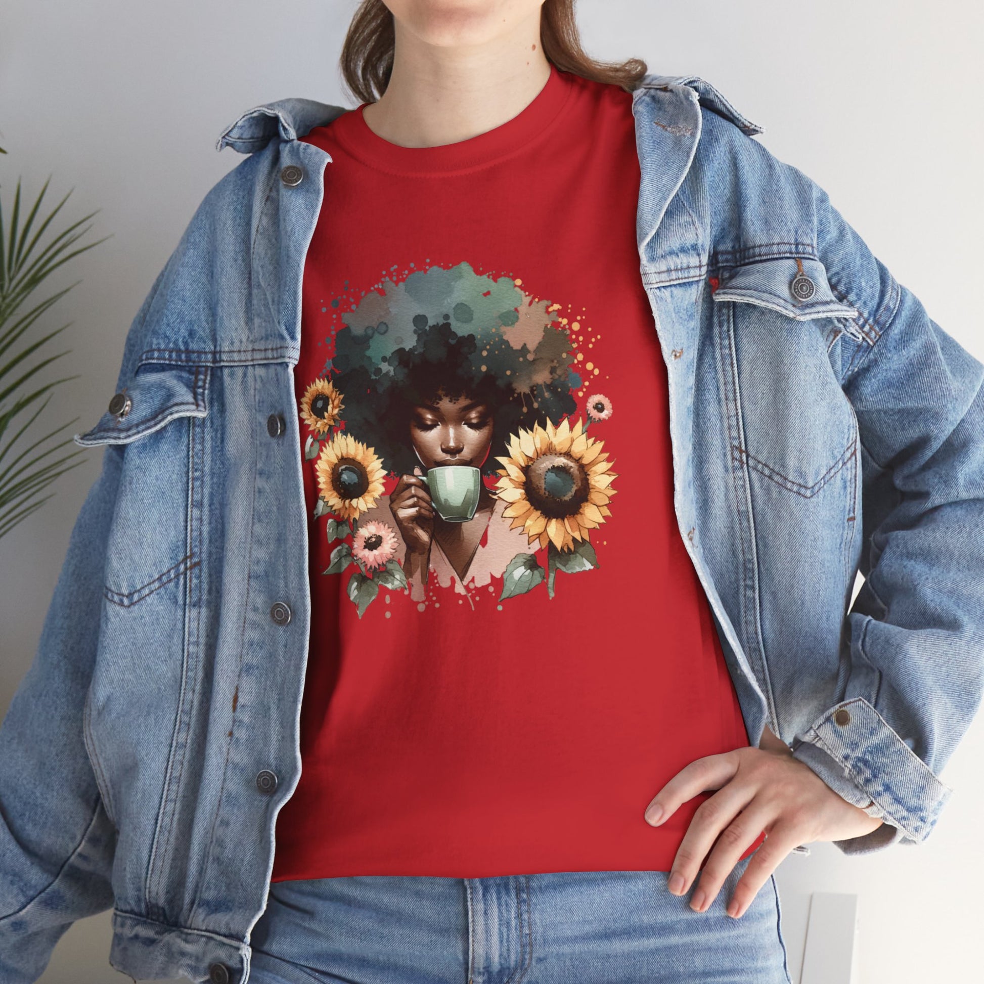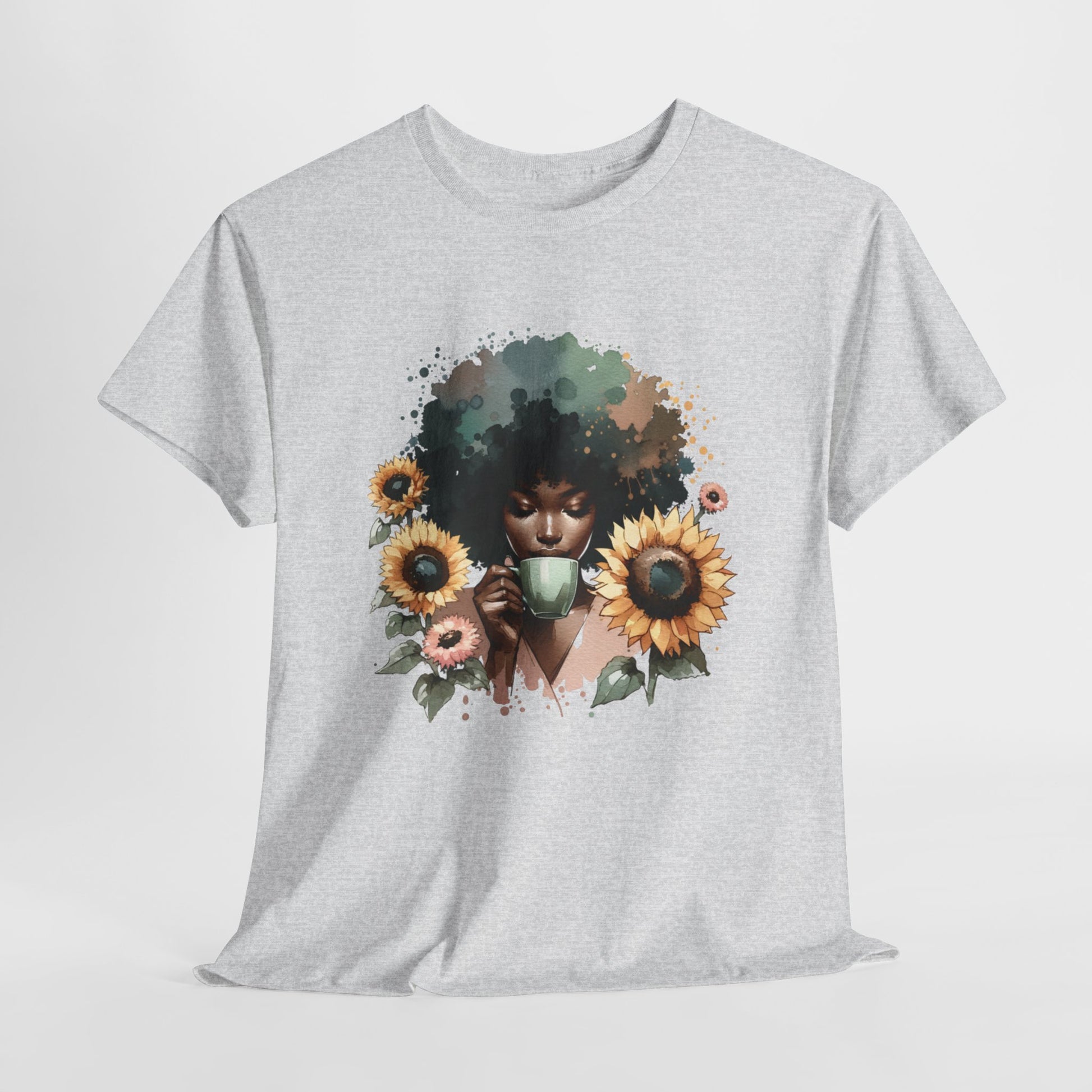 This Sunflowers And Coffee T-Shirt captures the essence of a sunny morning with a warm cup of coffee and beautiful sunflowers. The design exudes a cozy and cheerful vibe, making it perfect for everyday wear or as a thoughtful gift for coffee lovers and nature enthusiasts. Ideal for casual outings, coffee dates, or just lounging at home.